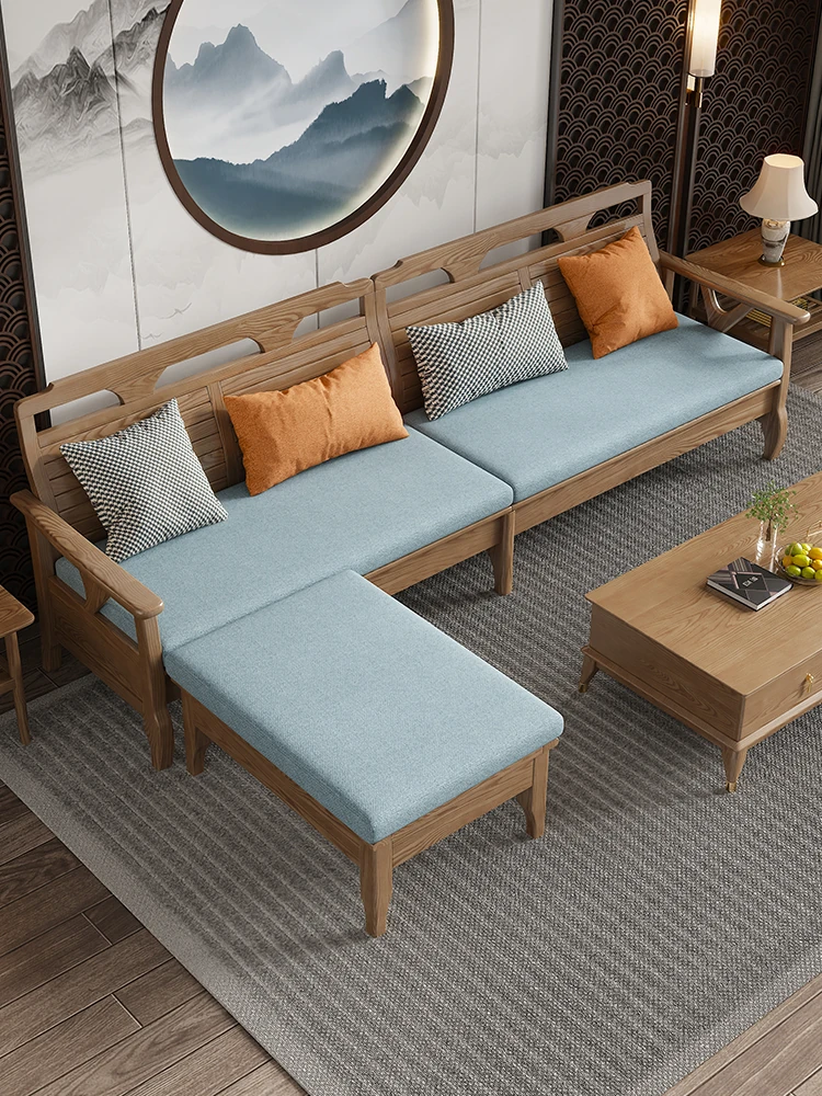 新中式デザインの小型ユニット!冬夏兼用のコーナーソファ - シンプルでスタイリッシュなリビングに最適。高い収納力を誇る実木製ソファで、快適な空間を演出します!