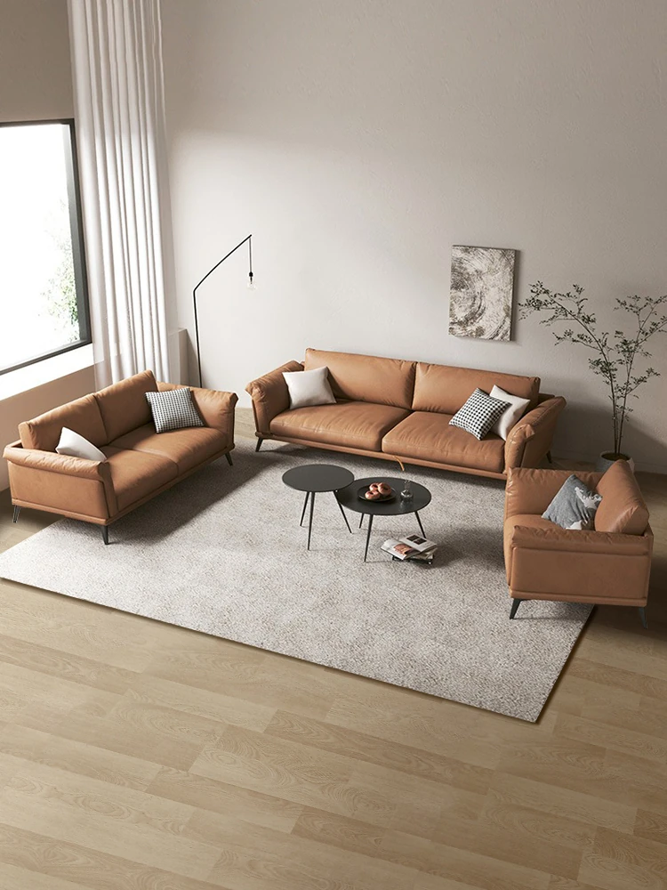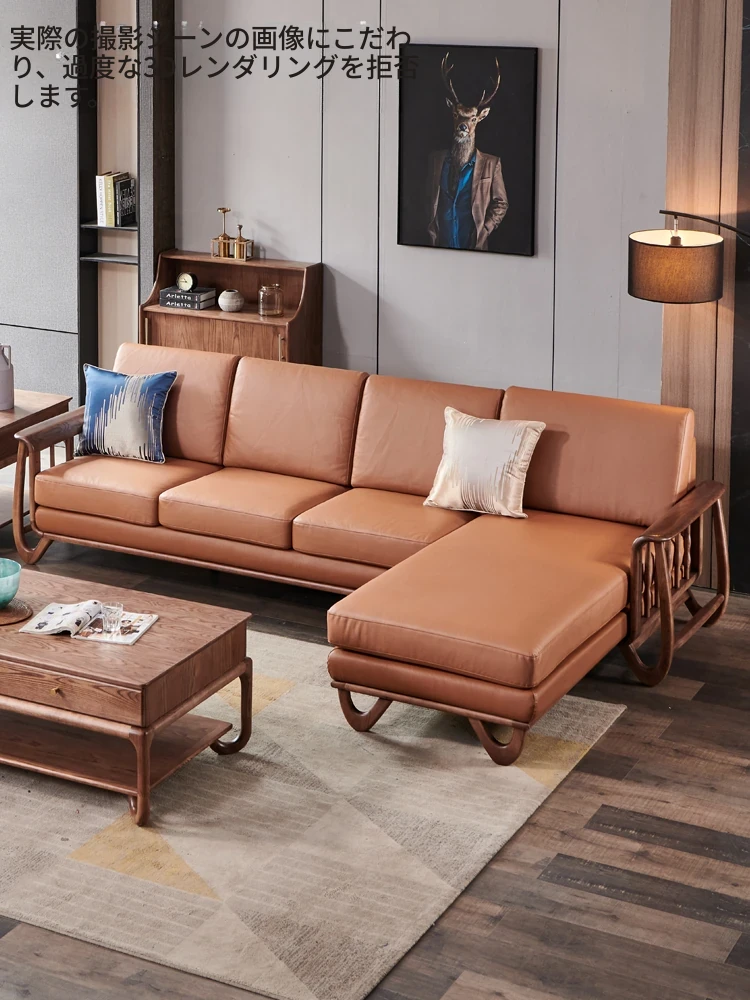 新中式北欧スタイルのウォールナット色の本革リビング用カウチソファ、広々とした大邸宅にぴったりな123家具セット!上質な素材で贅沢なひとときをお楽しみください。