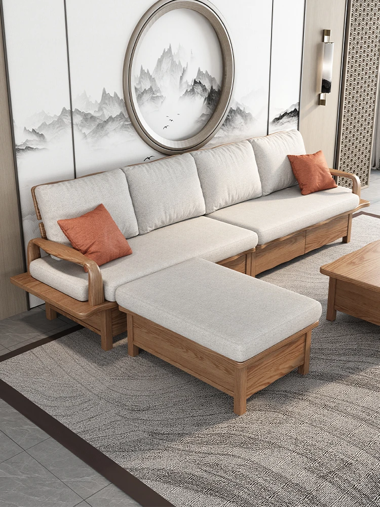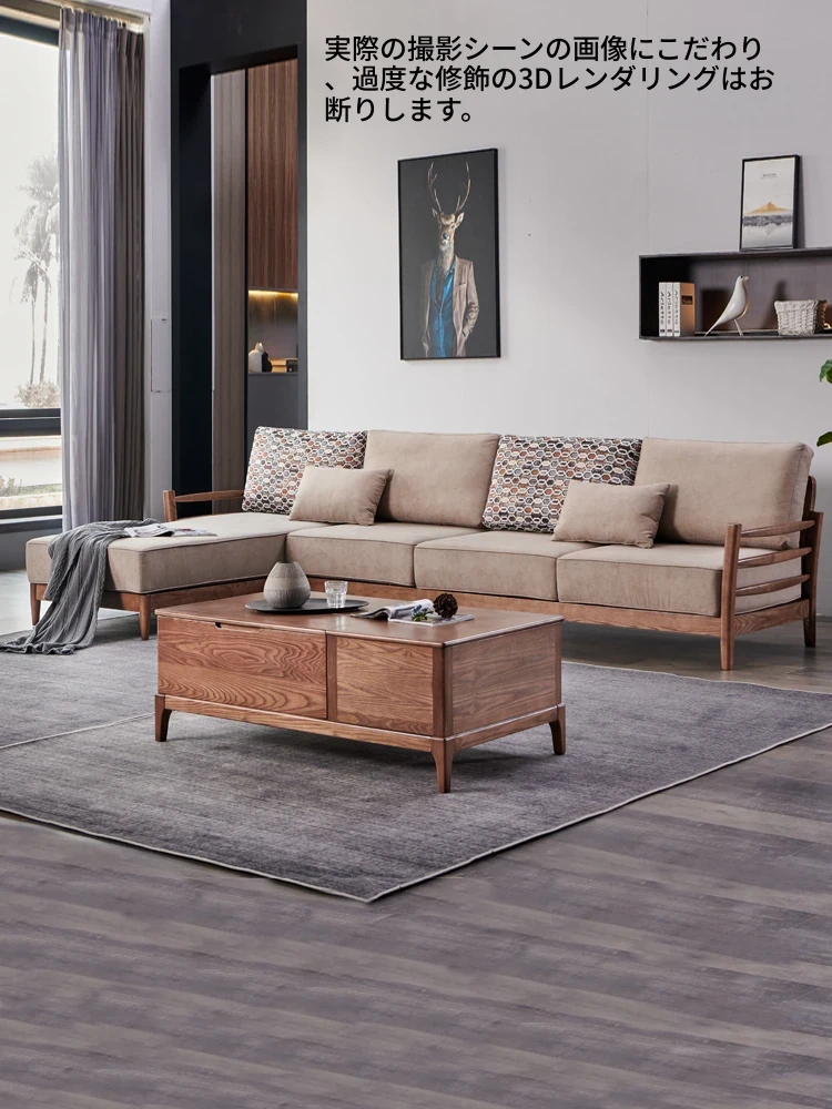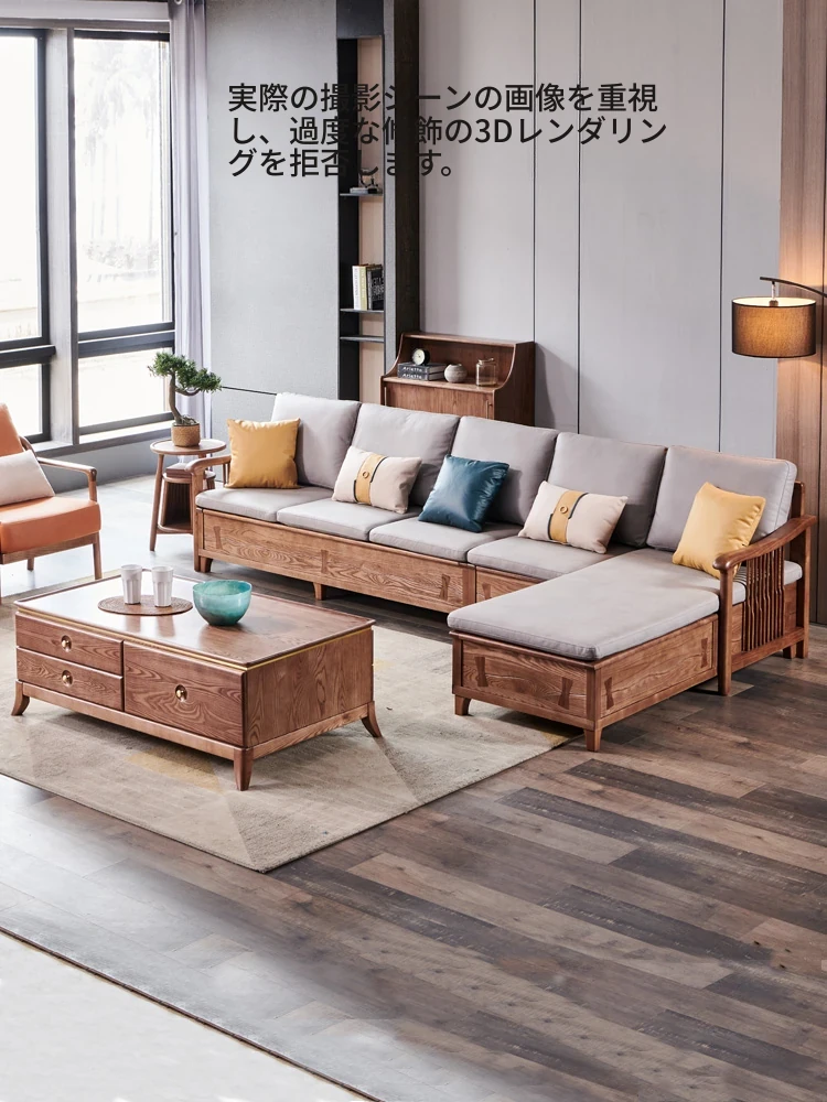 収納力抜群!冬夏両用の無垢材ソファ 新中式&北欧デザイン モダンシンプルなホワイトアッシュのリビングコーナー布張りソファ。快適な空間を演出します!