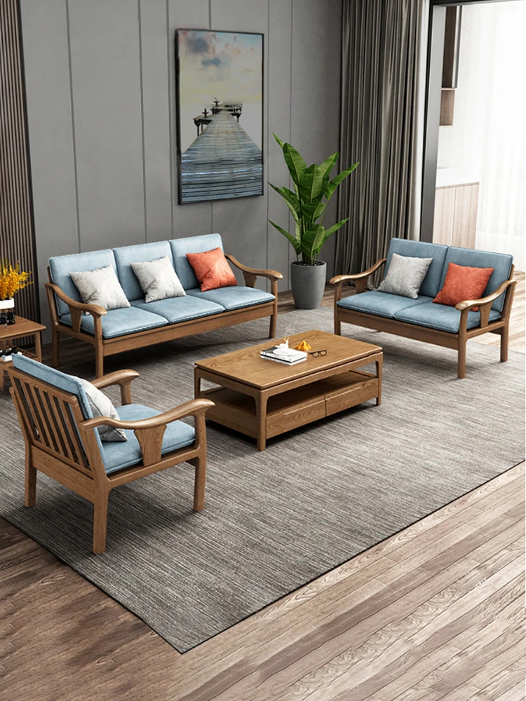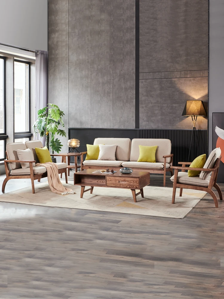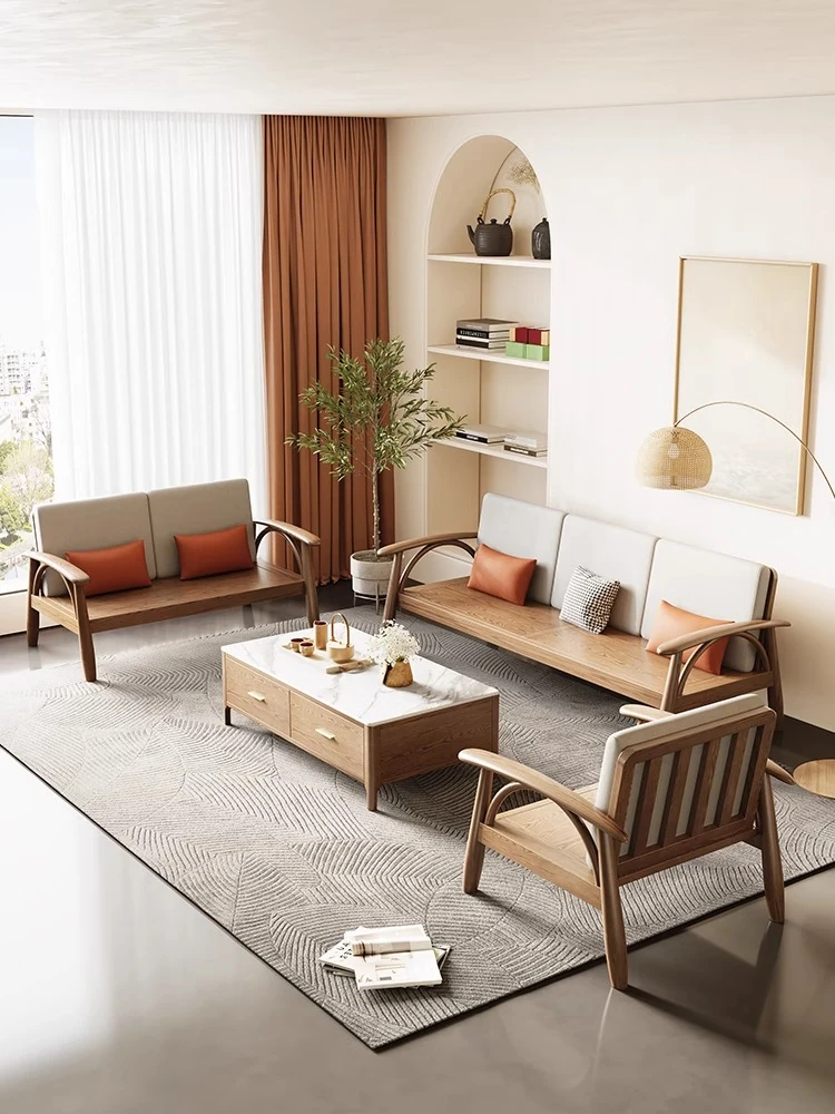 新中式デザインの無垢材ソファセット|シンプルでコンパクトな小型リビングに最適|ホワイトアッシュ材使用|取り外し可能なカバーでお手入れ簡単!快適な空間を演出します。