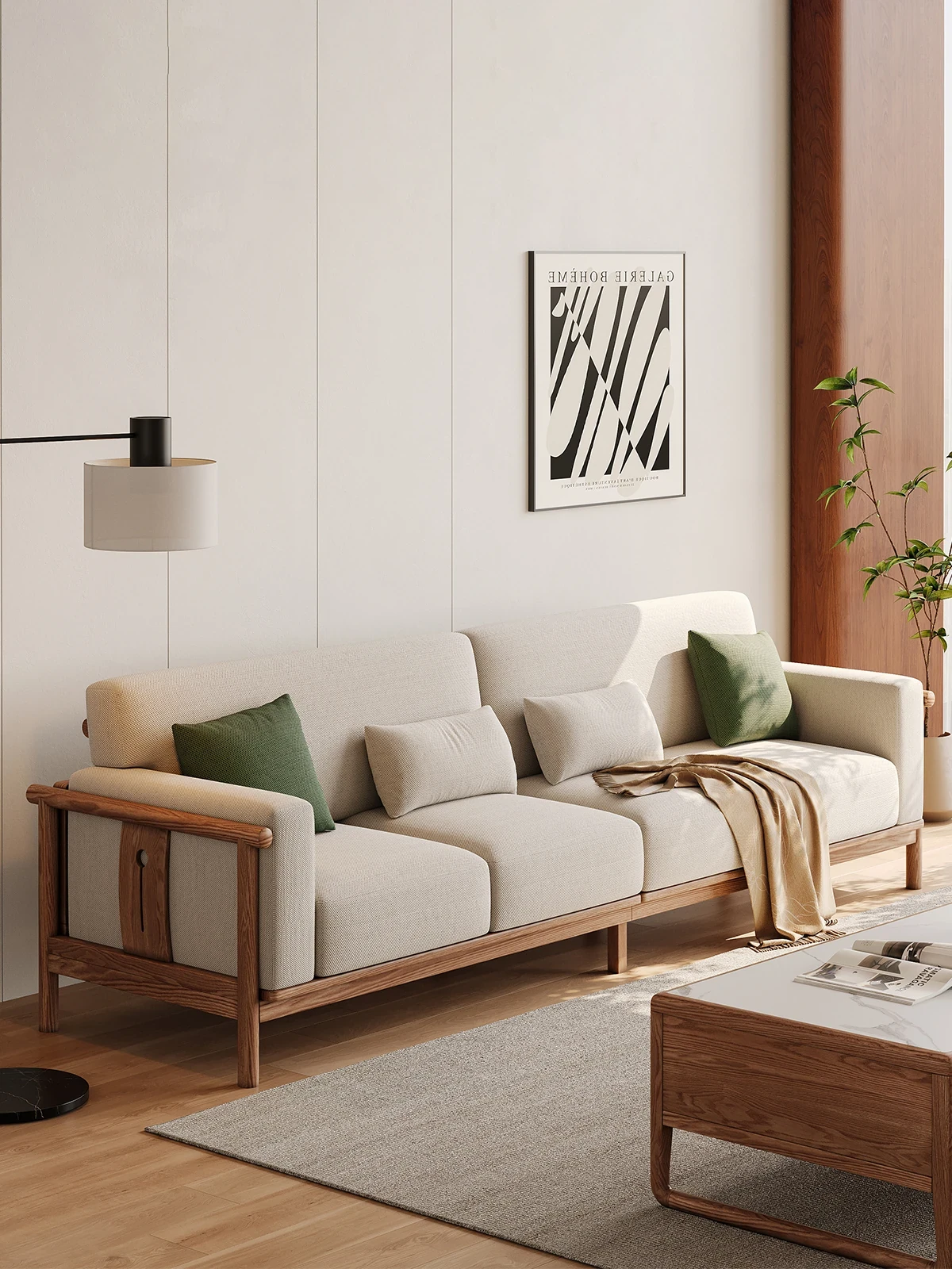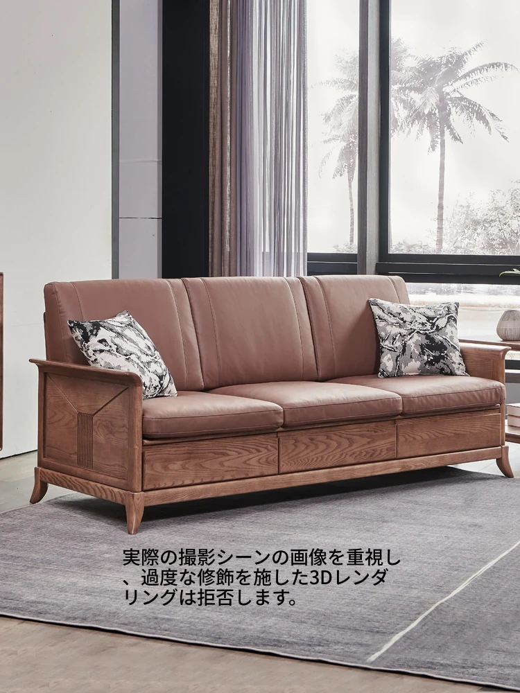 冬夏兼用の新中式ホワイトアッシュ無垢材3人掛けソファ|現代的でシンプルな高級リビング家具セットで、快適さとスタイルを両立!