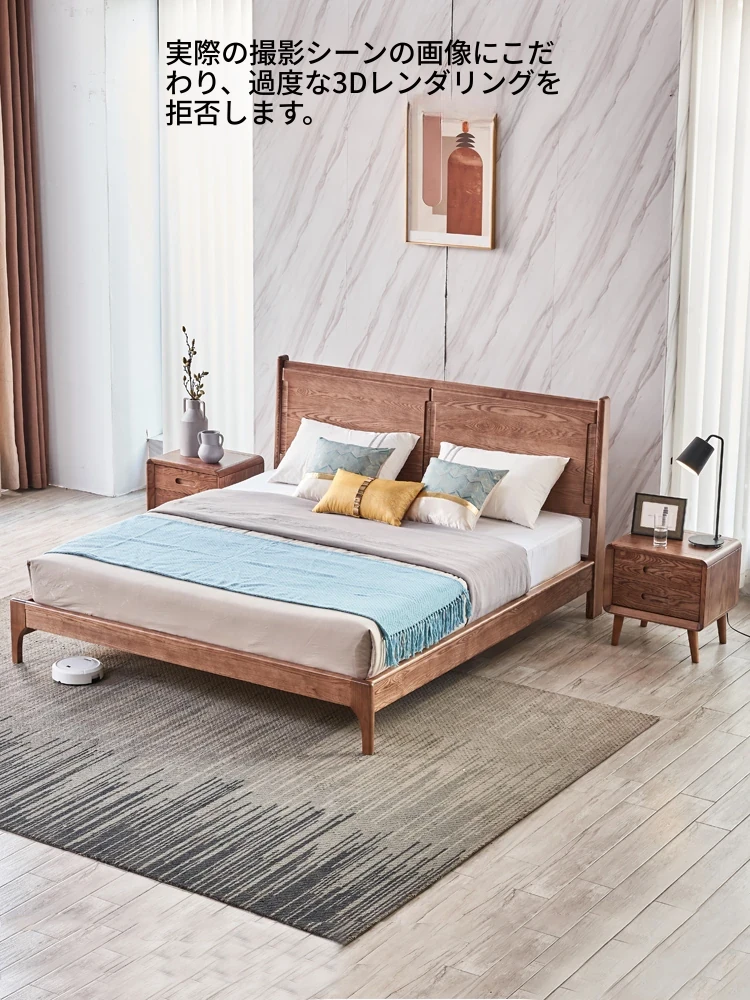 北欧スタイルのホワイトアッシュ材を使用したモダンでシンプルなフルウッドベッド 1.8m / 1.5m 主寝室に最適なコンパクトなデザイン 高脚ダブルマリッジベッド
