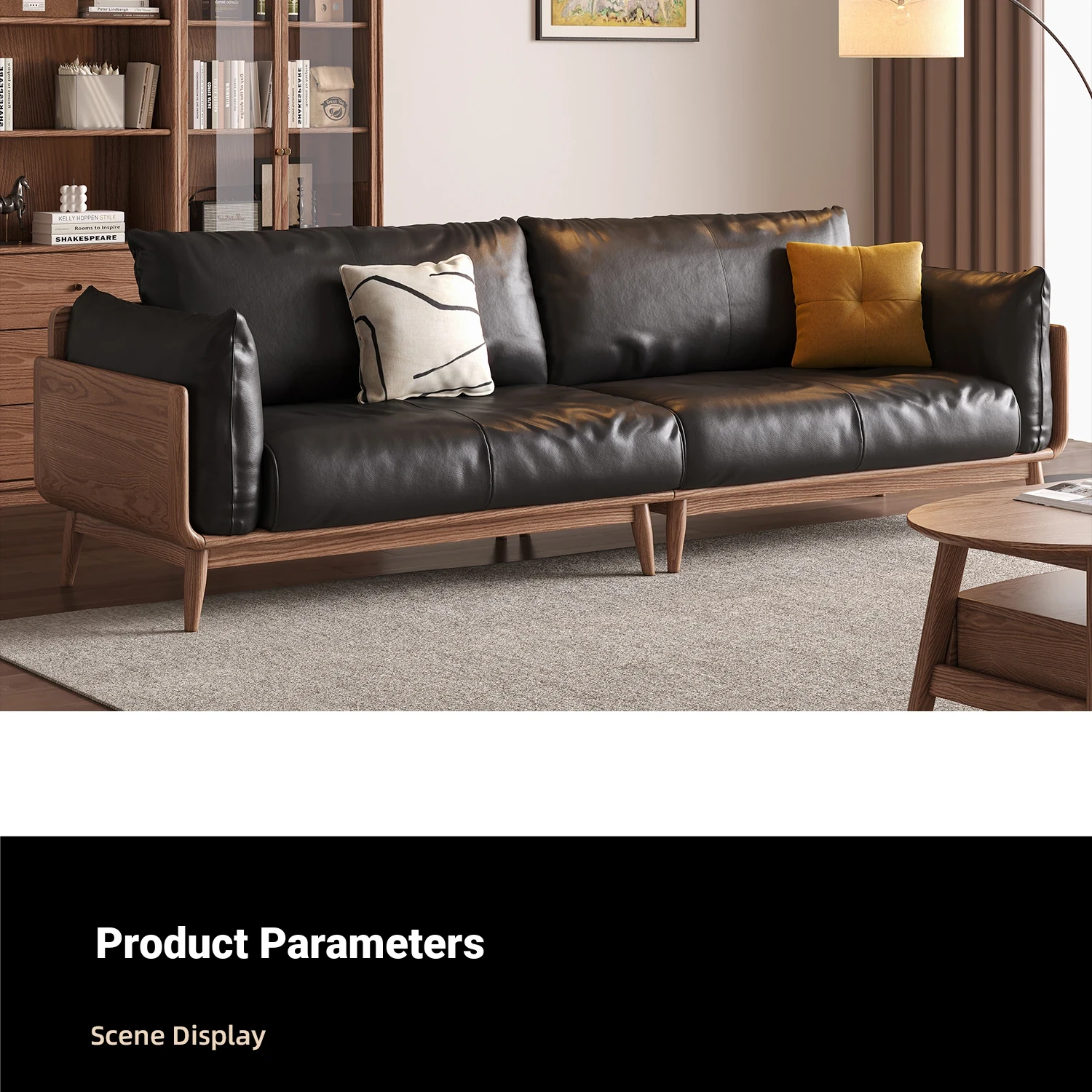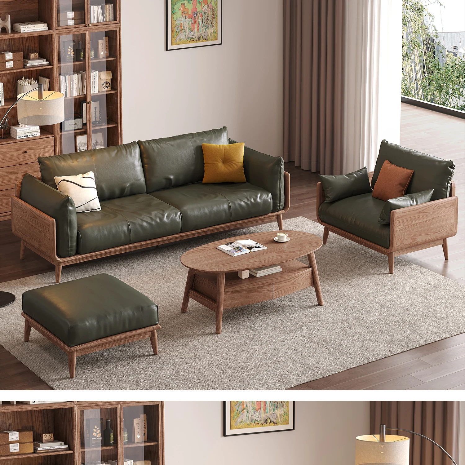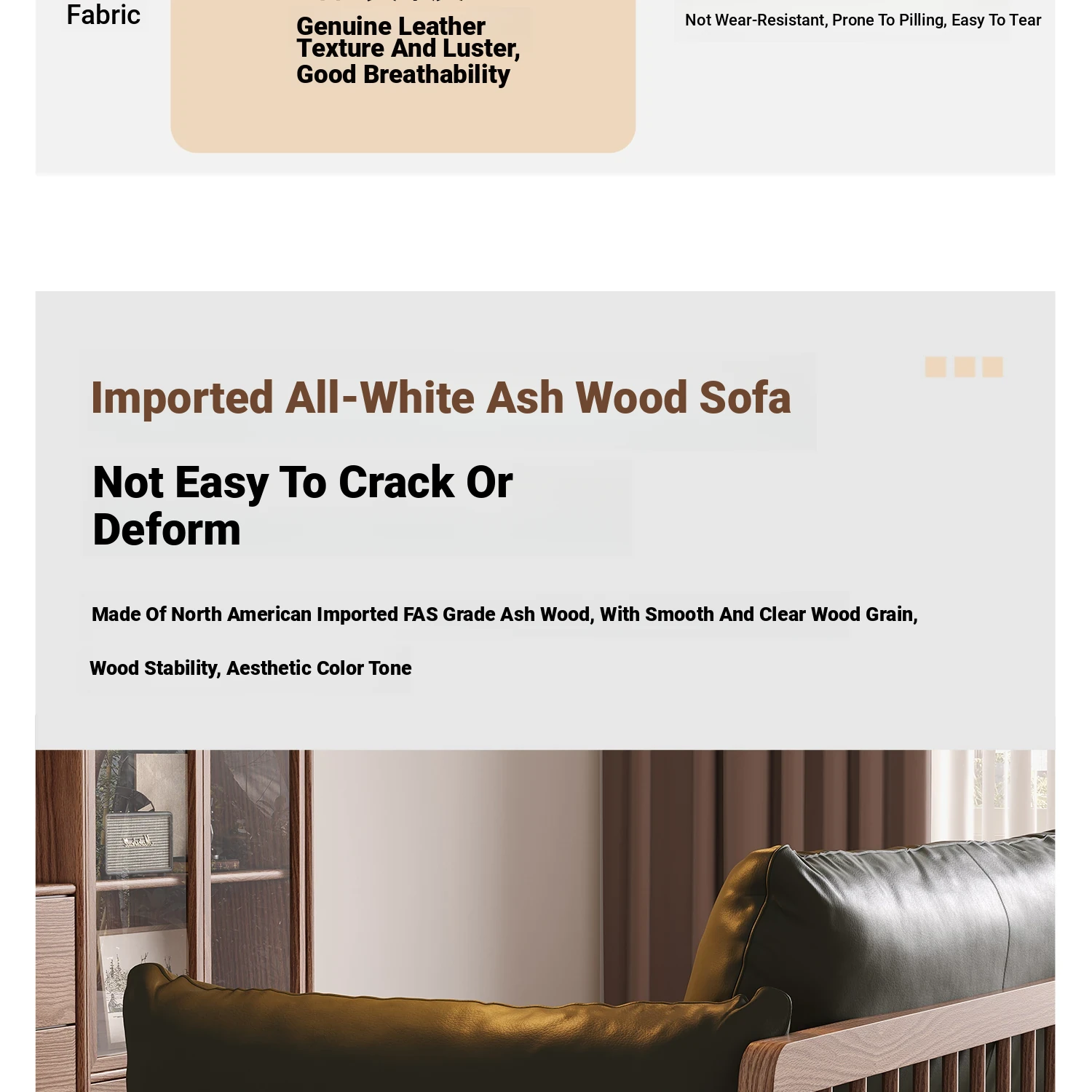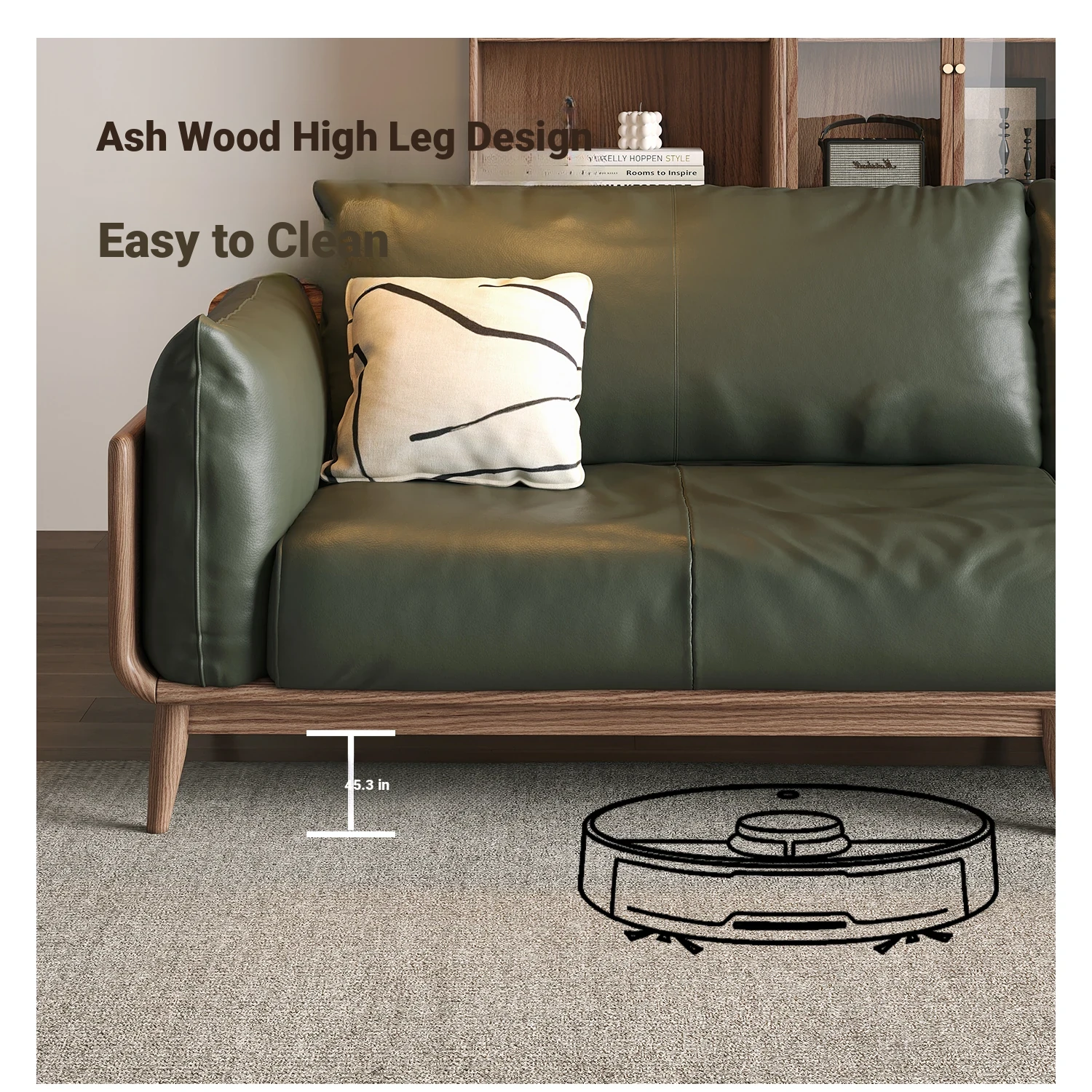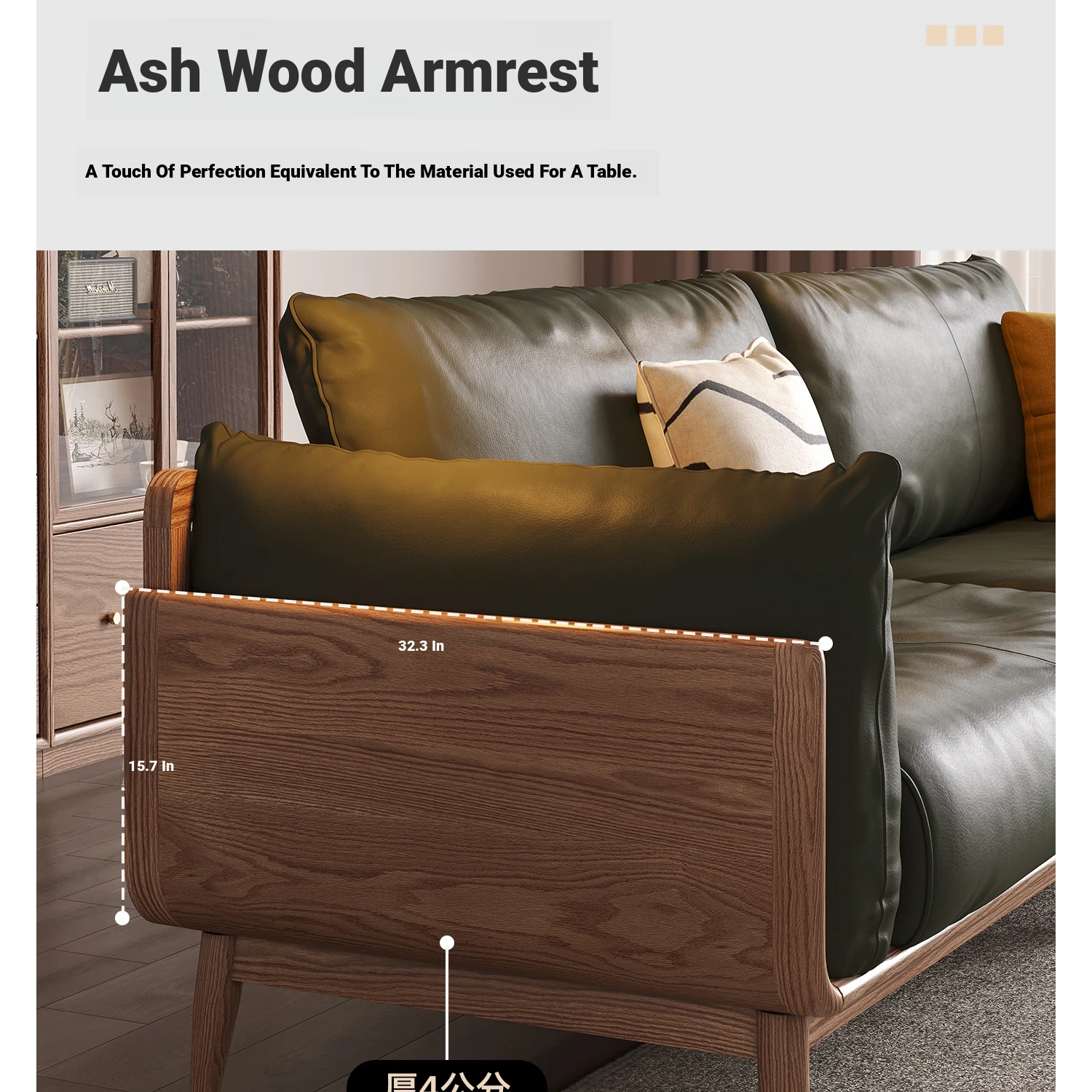 Modern Italian Minimalist Solid Wood Sofa for Small Spaces - Stylish Leather Sofa in Walnut and Ash Wood for Home Living Room