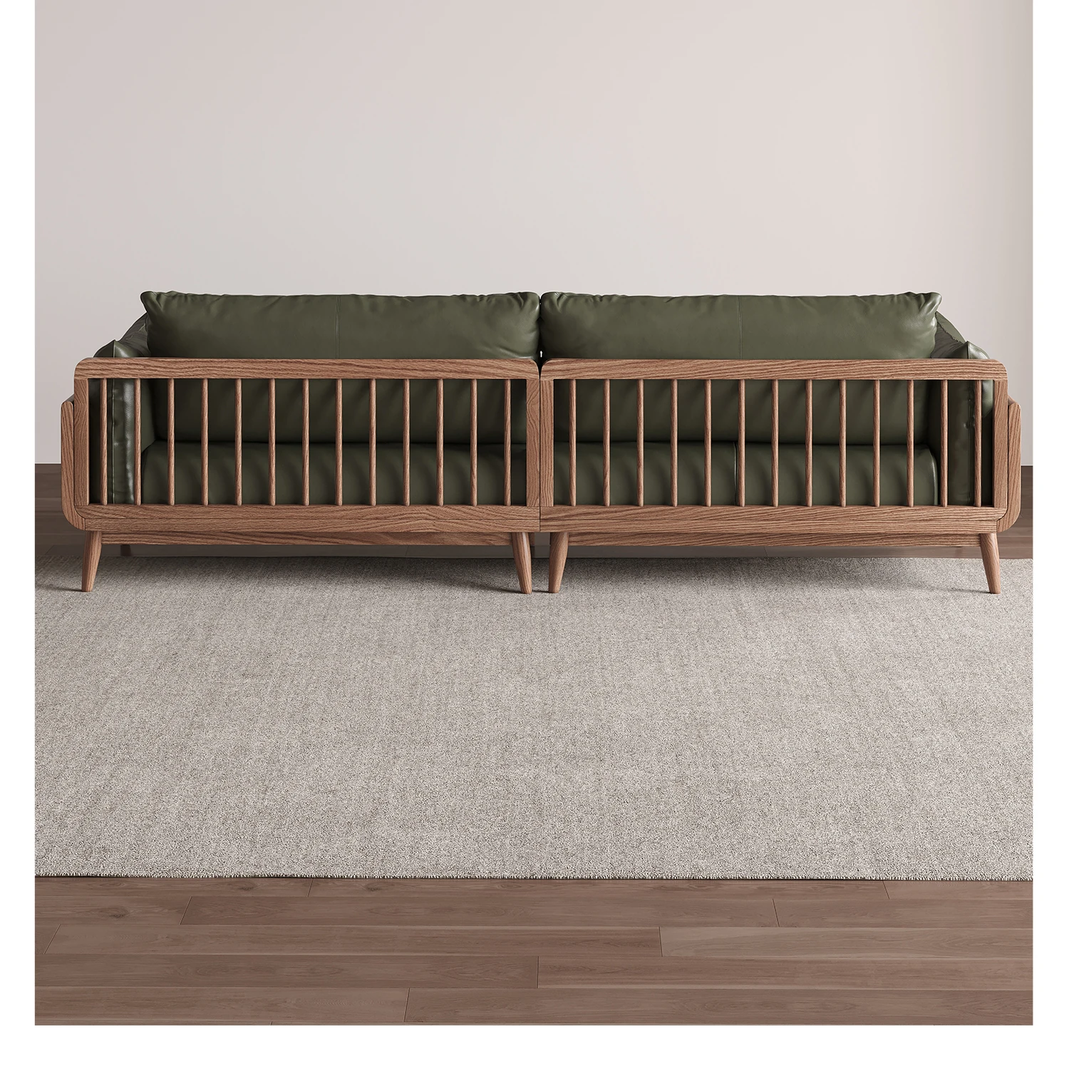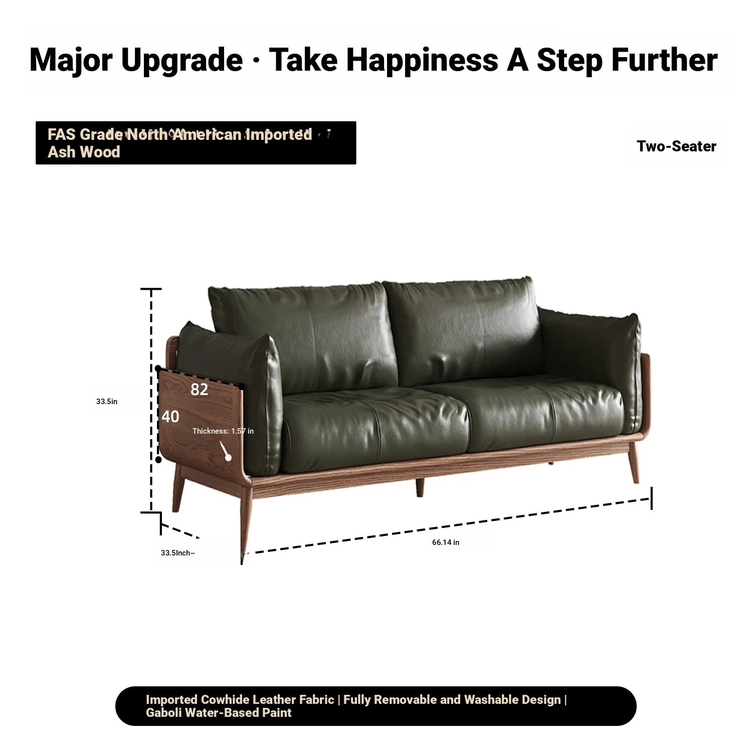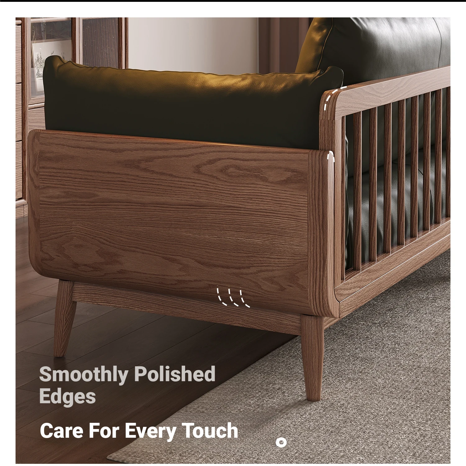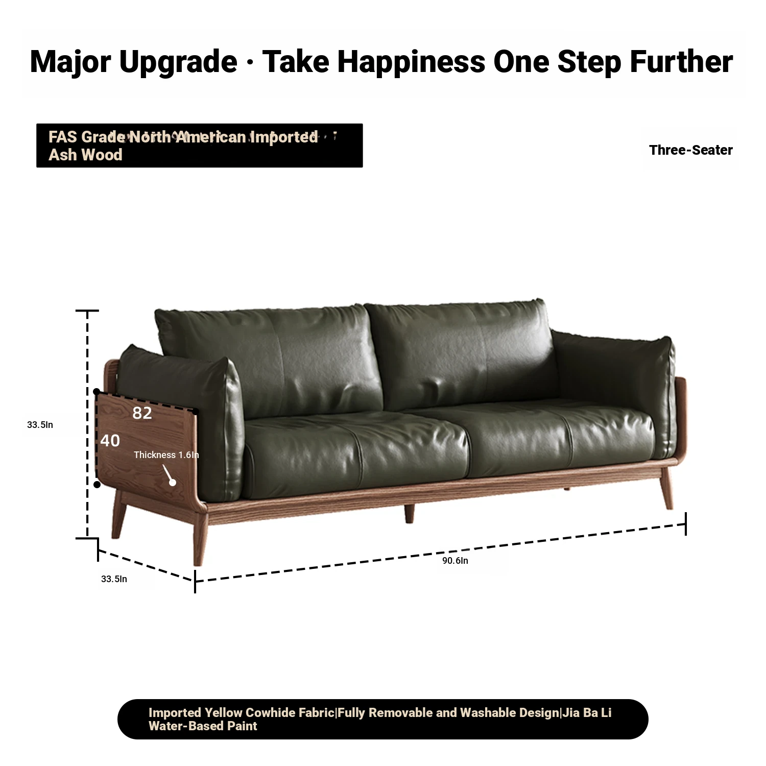 Modern Italian Minimalist Solid Wood Sofa for Small Spaces - Stylish Leather Sofa in Walnut and Ash Wood for Home Living Room