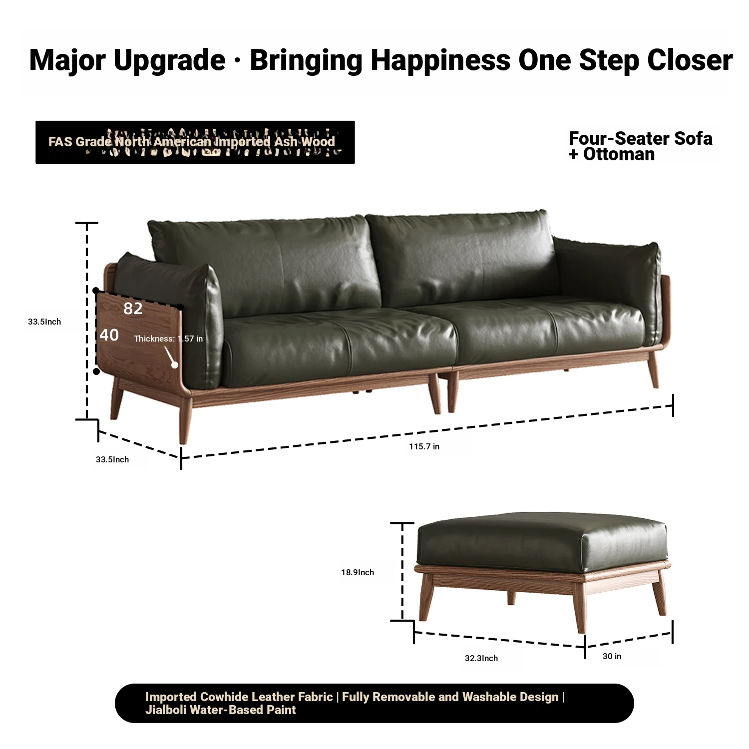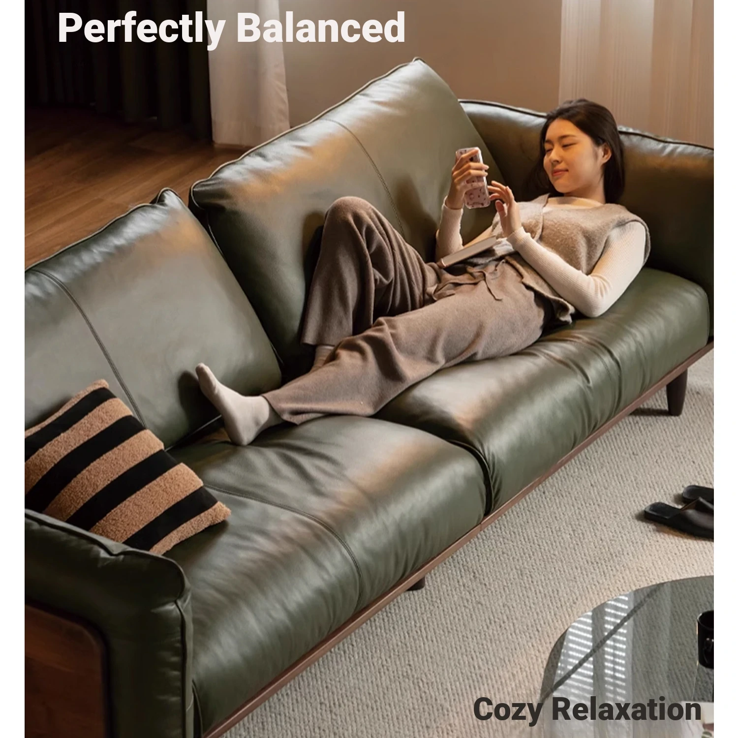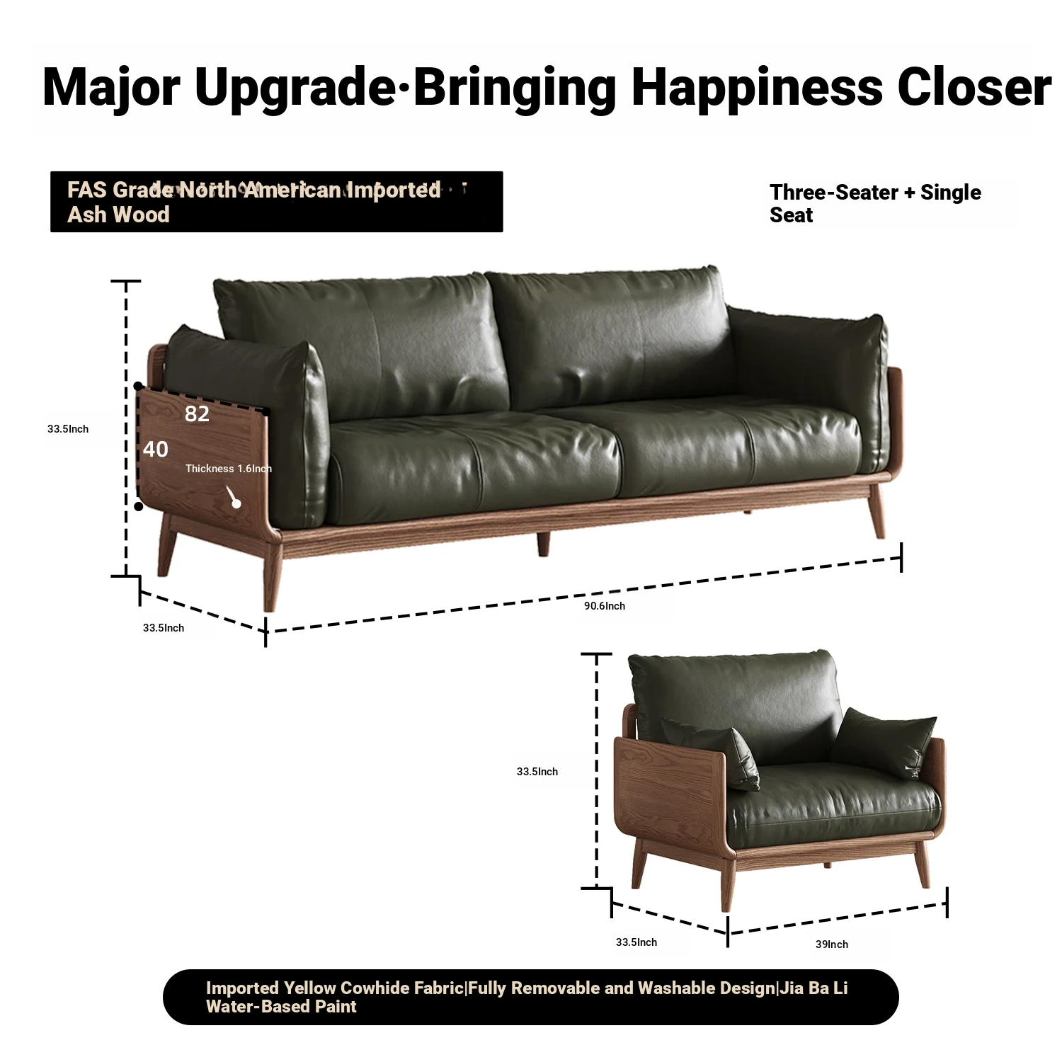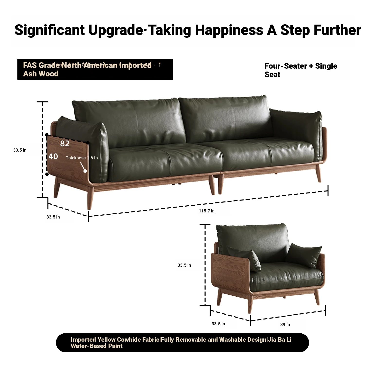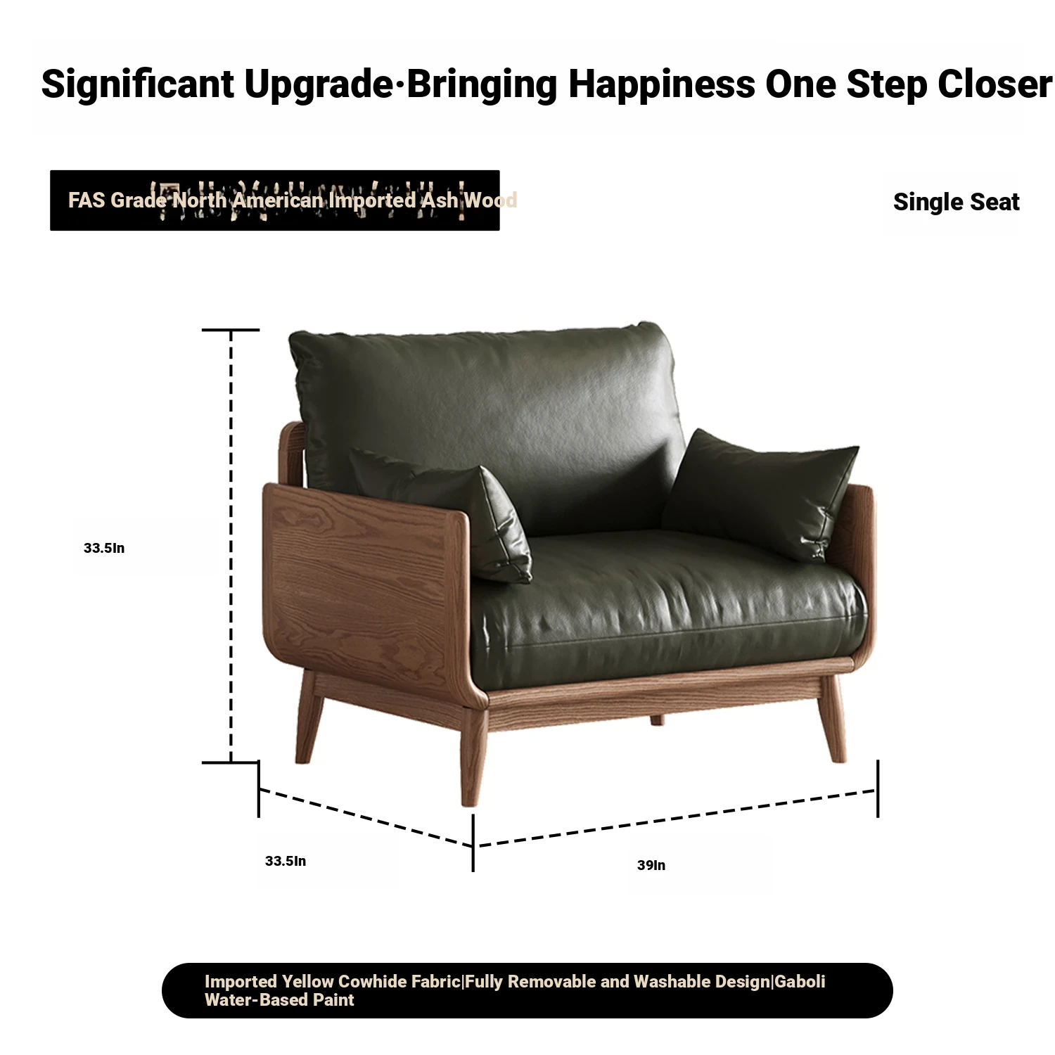 Modern Italian Minimalist Solid Wood Sofa for Small Spaces - Stylish Leather Sofa in Walnut and Ash Wood for Home Living Room