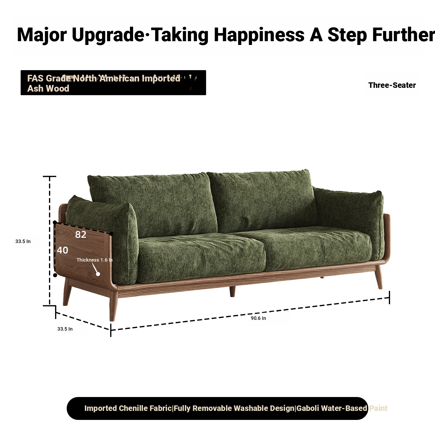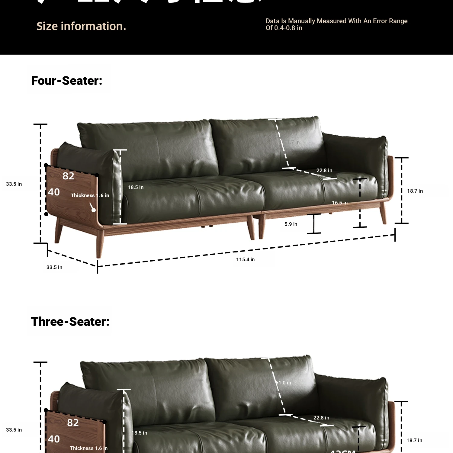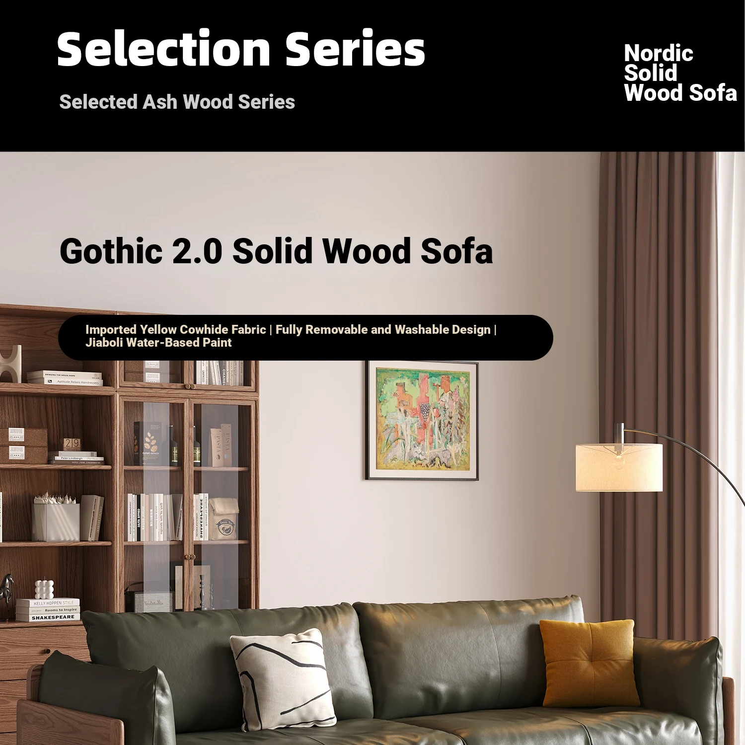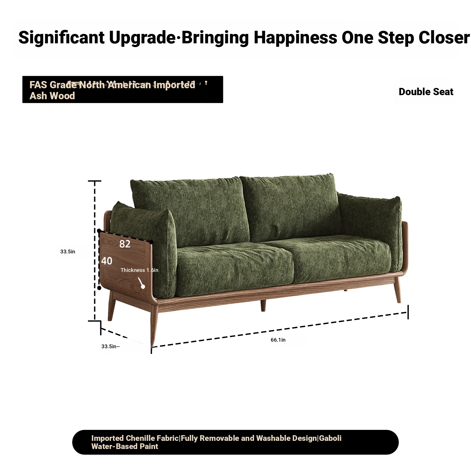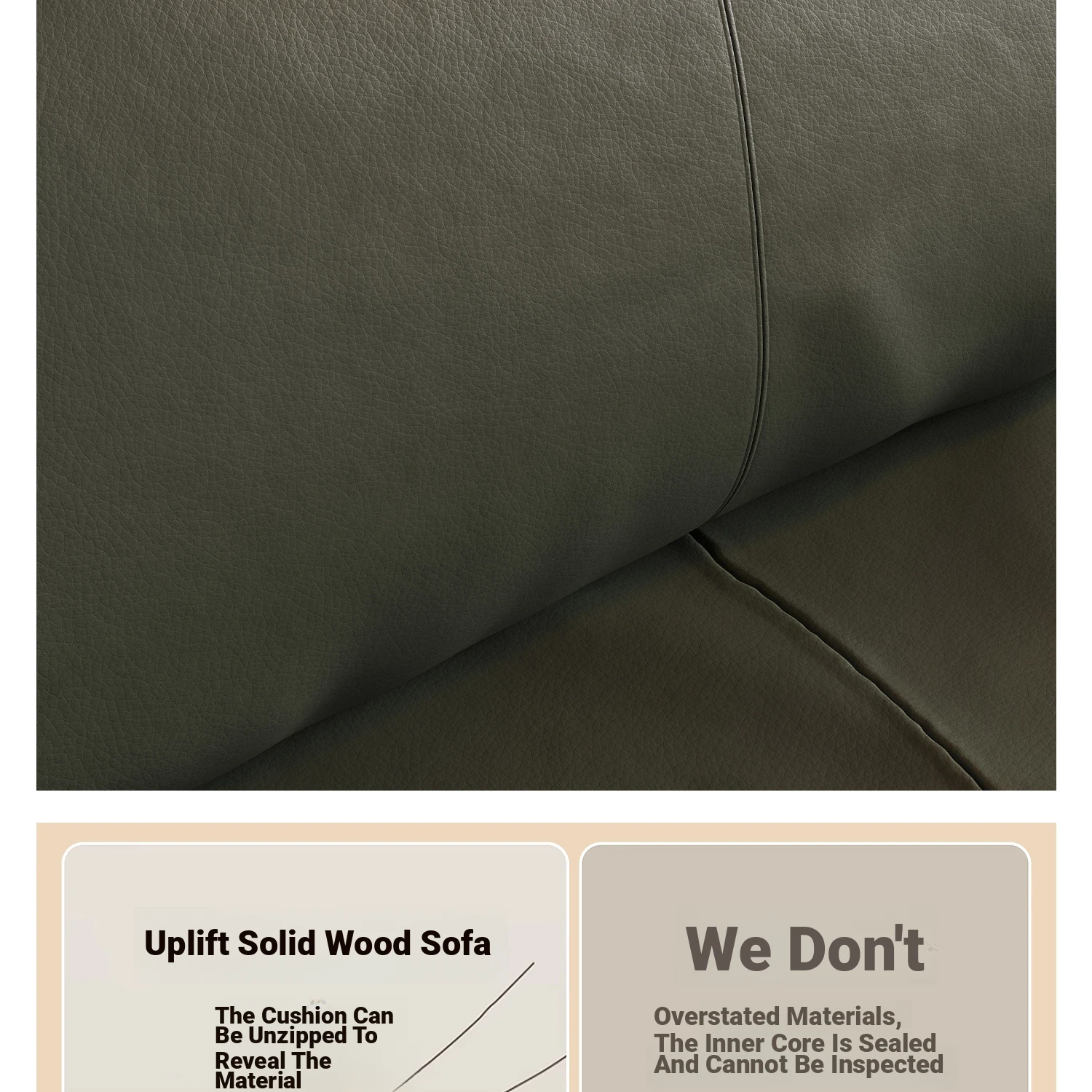 Modern Italian Minimalist Solid Wood Sofa for Small Spaces - Stylish Leather Sofa in Walnut and Ash Wood for Home Living Room