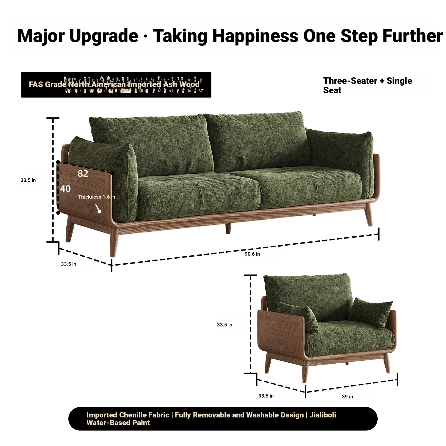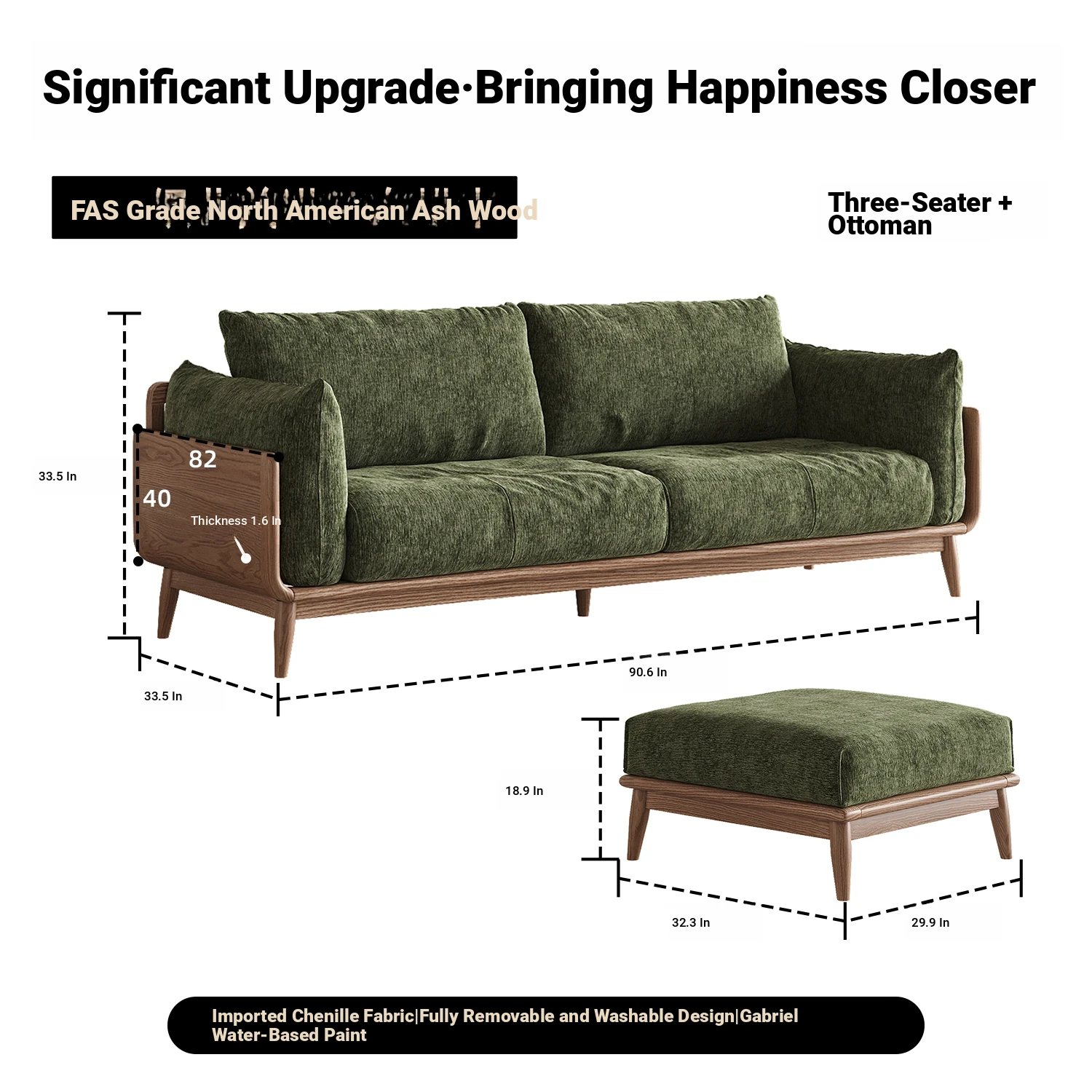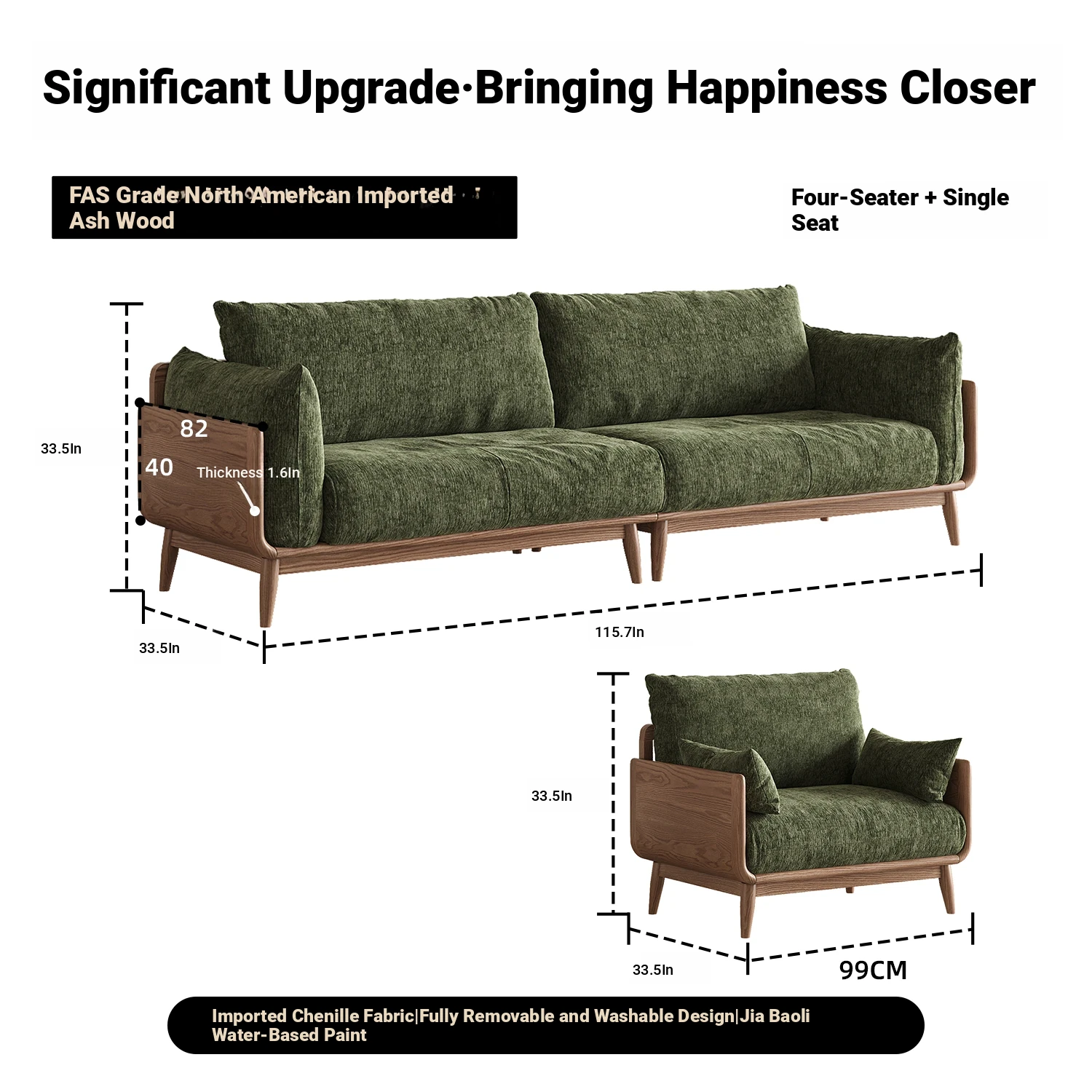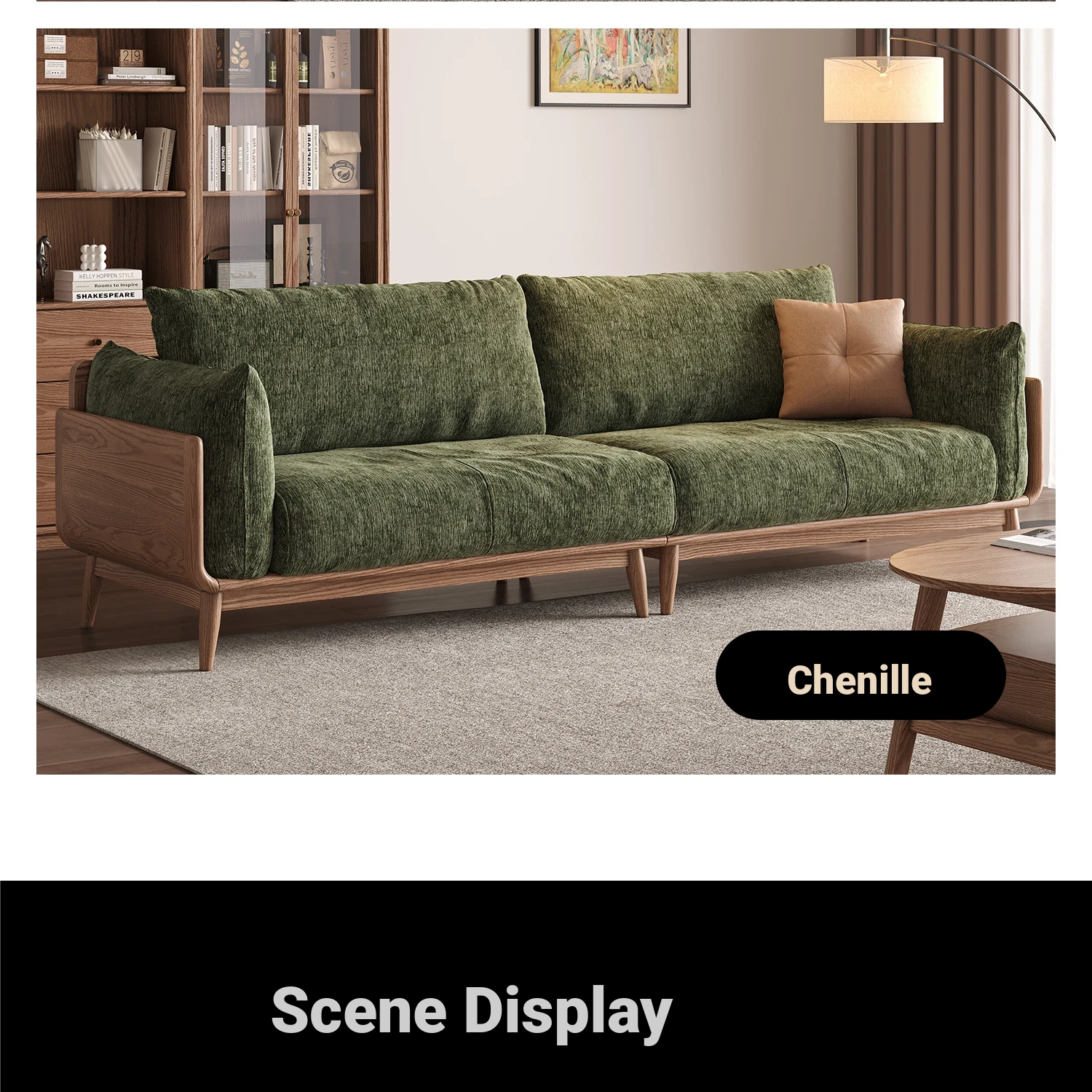 Modern Italian Minimalist Solid Wood Sofa for Small Spaces - Stylish Leather Sofa in Walnut and Ash Wood for Home Living Room