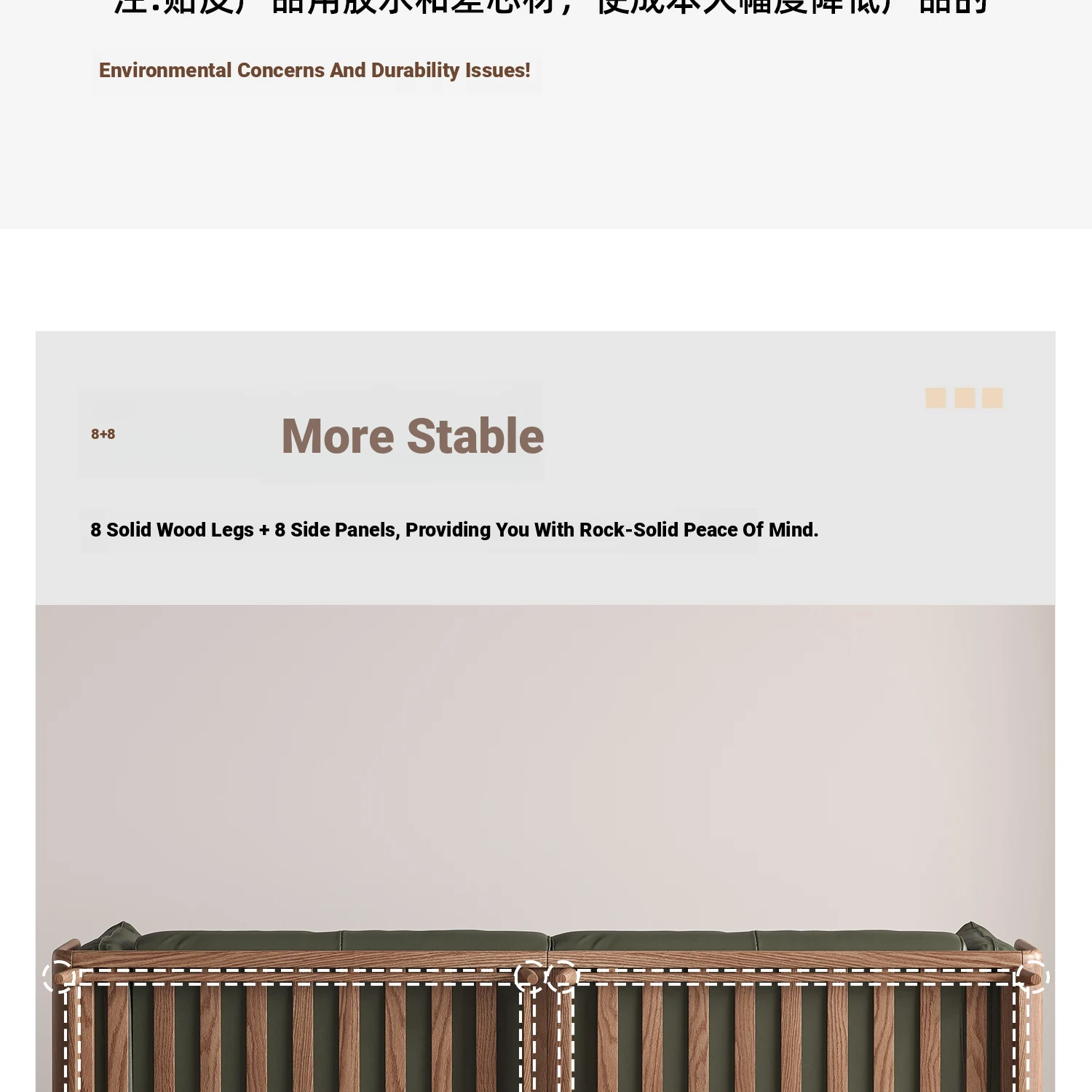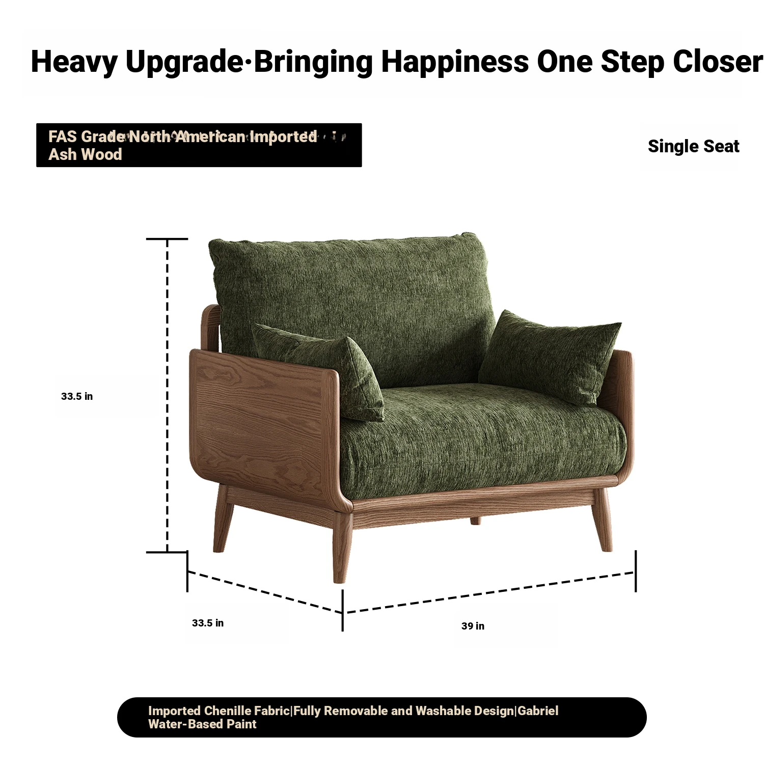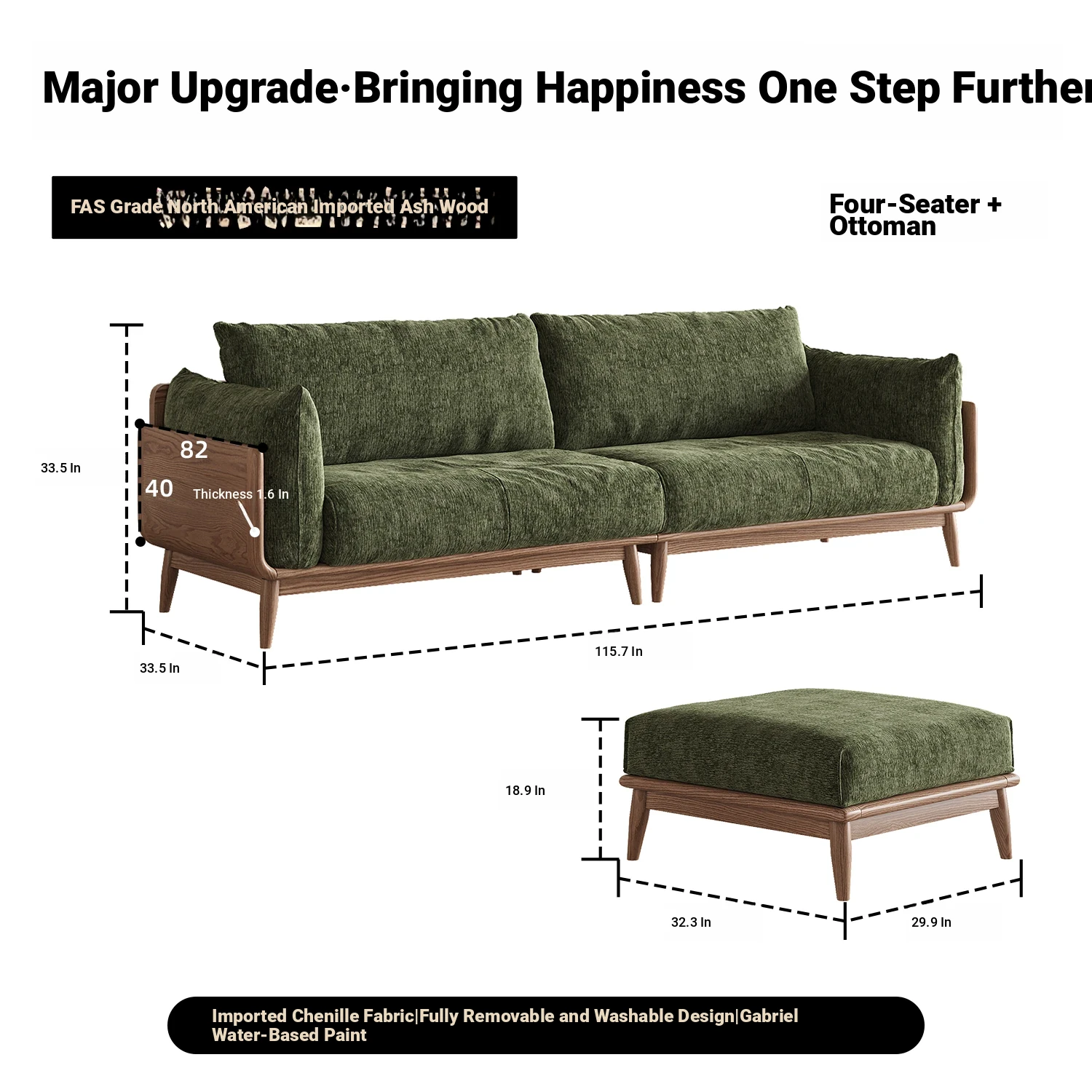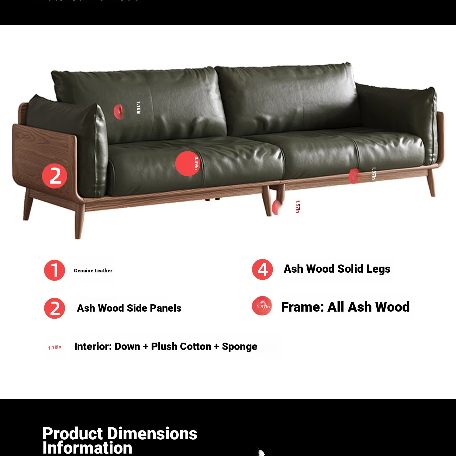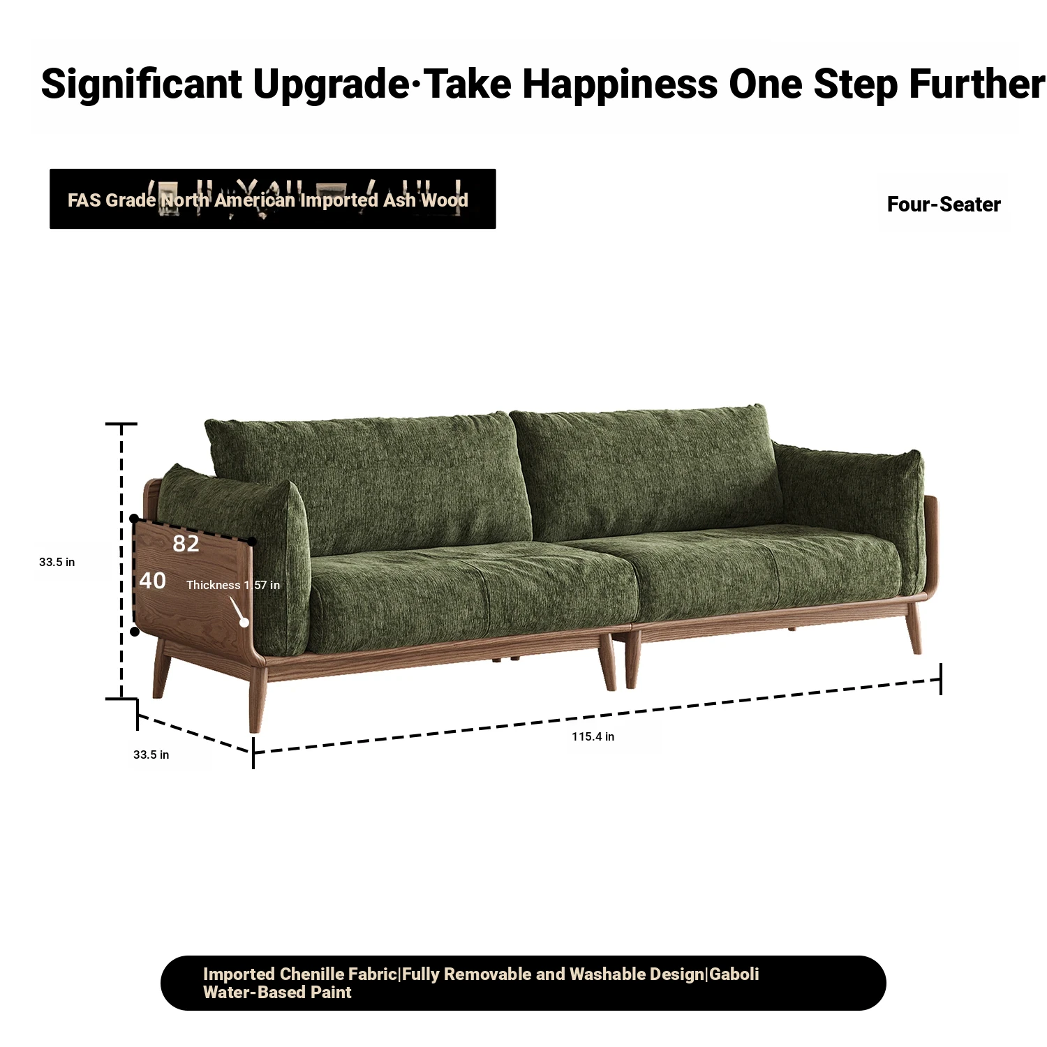 Modern Italian Minimalist Solid Wood Sofa for Small Spaces - Stylish Leather Sofa in Walnut and Ash Wood for Home Living Room