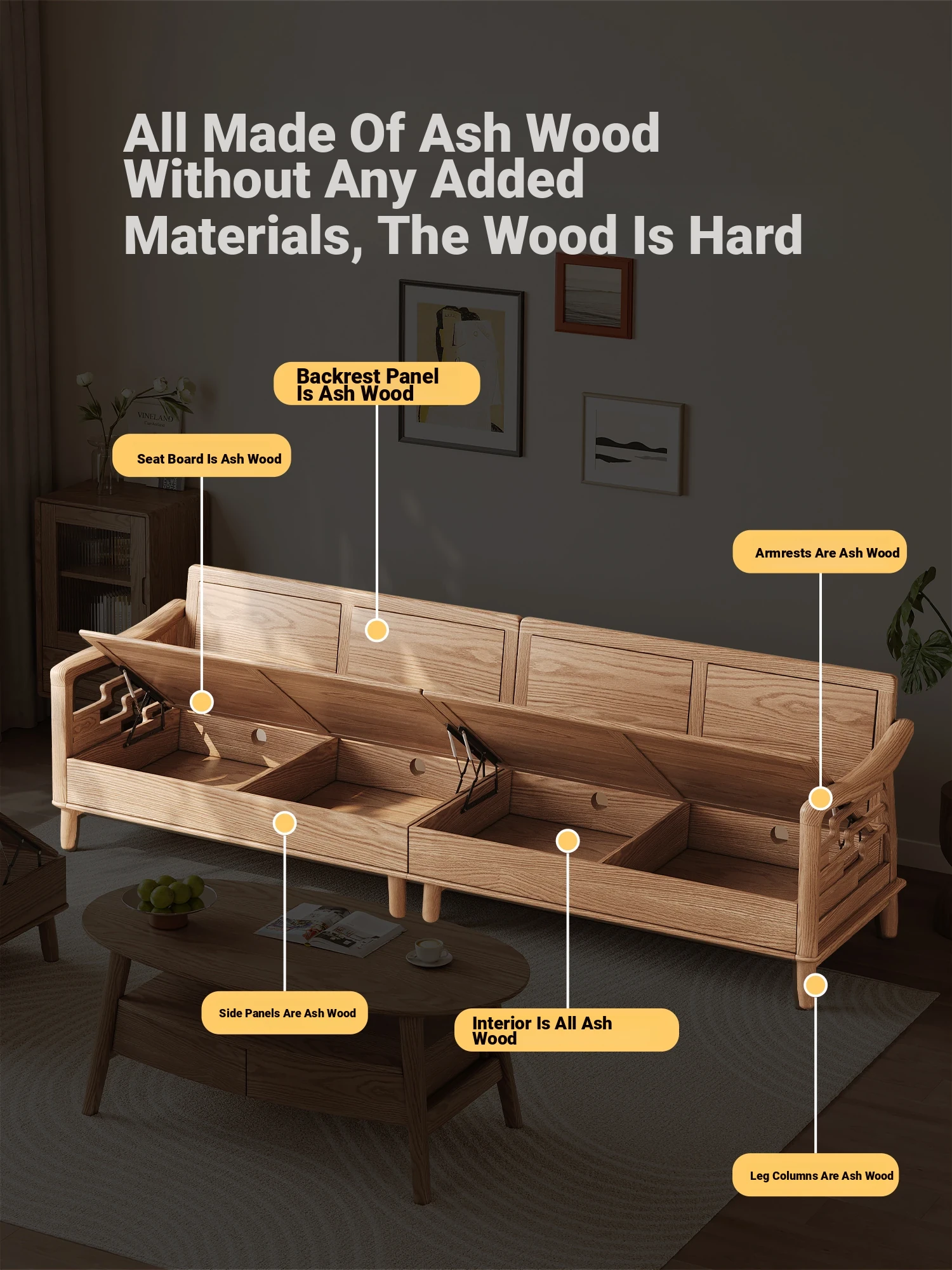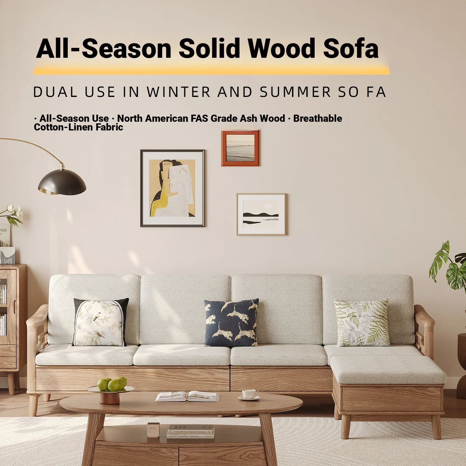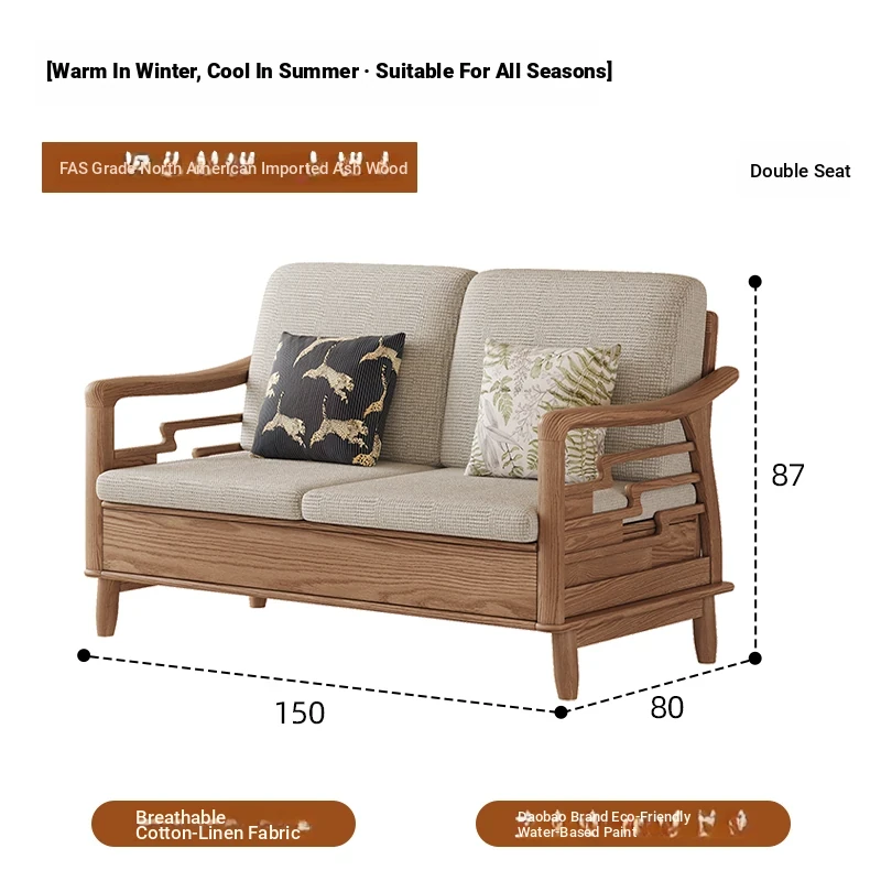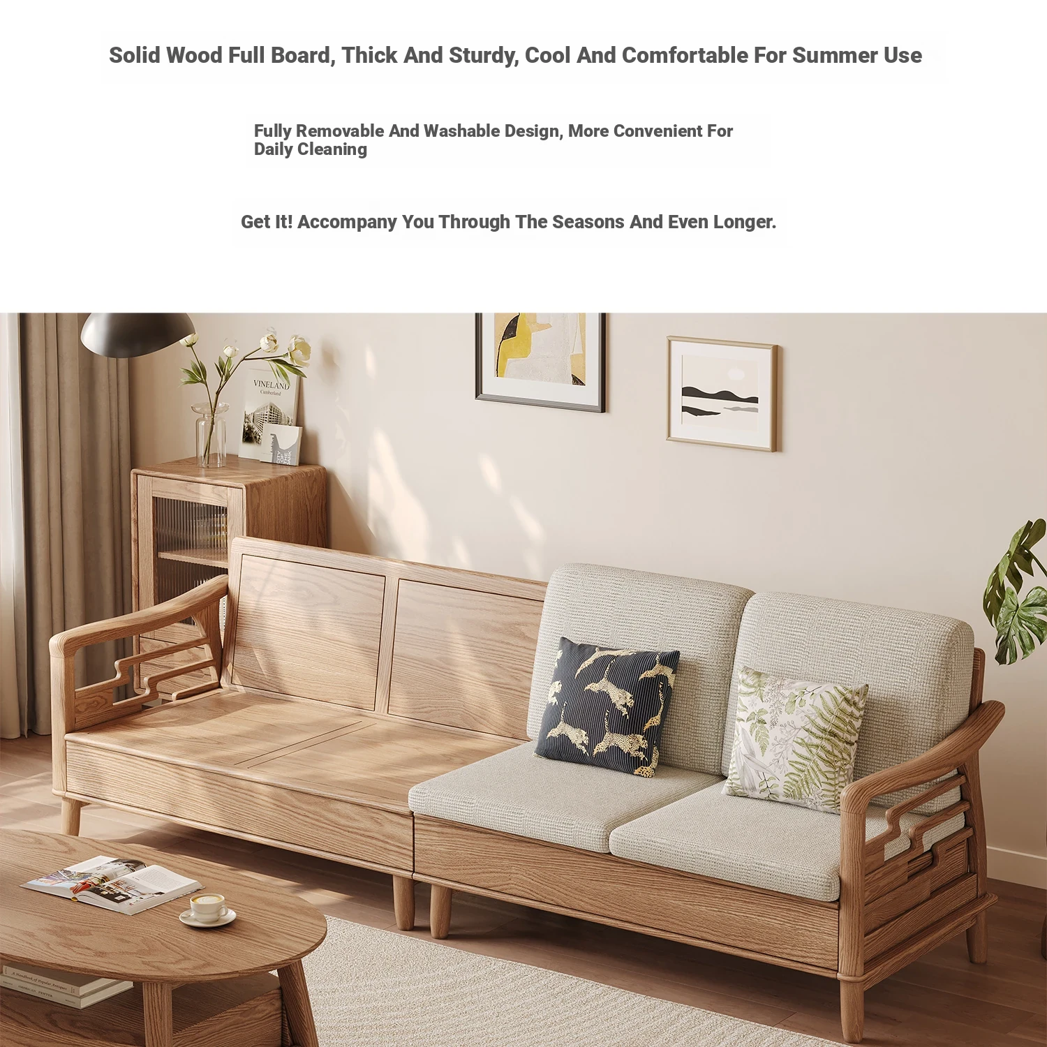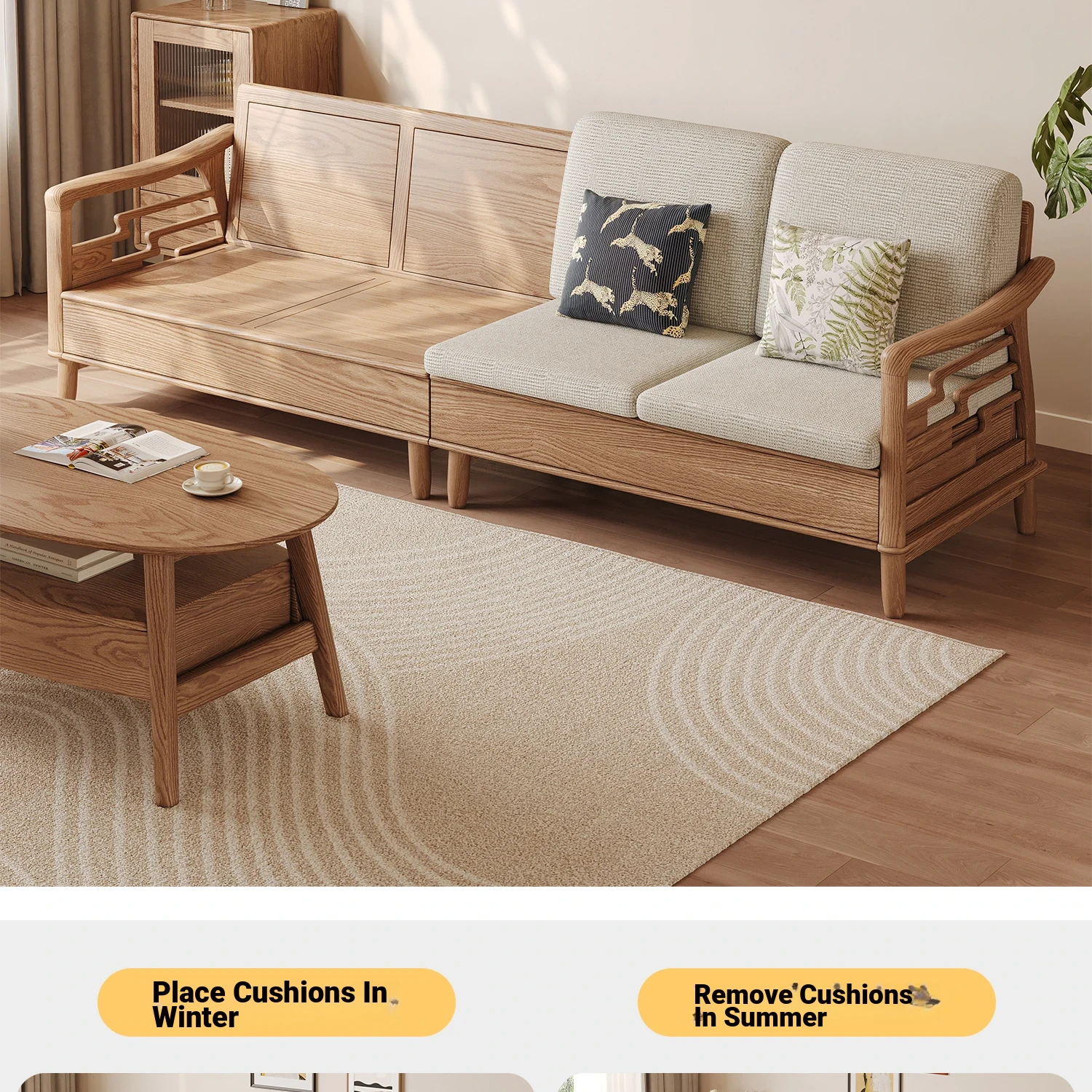Modern Minimalist Solid Ash Wood Sofa Set - Space-Saving Design for Small Living Rooms, Winter & Summer Use, with High-Storage Options for Practical Living.