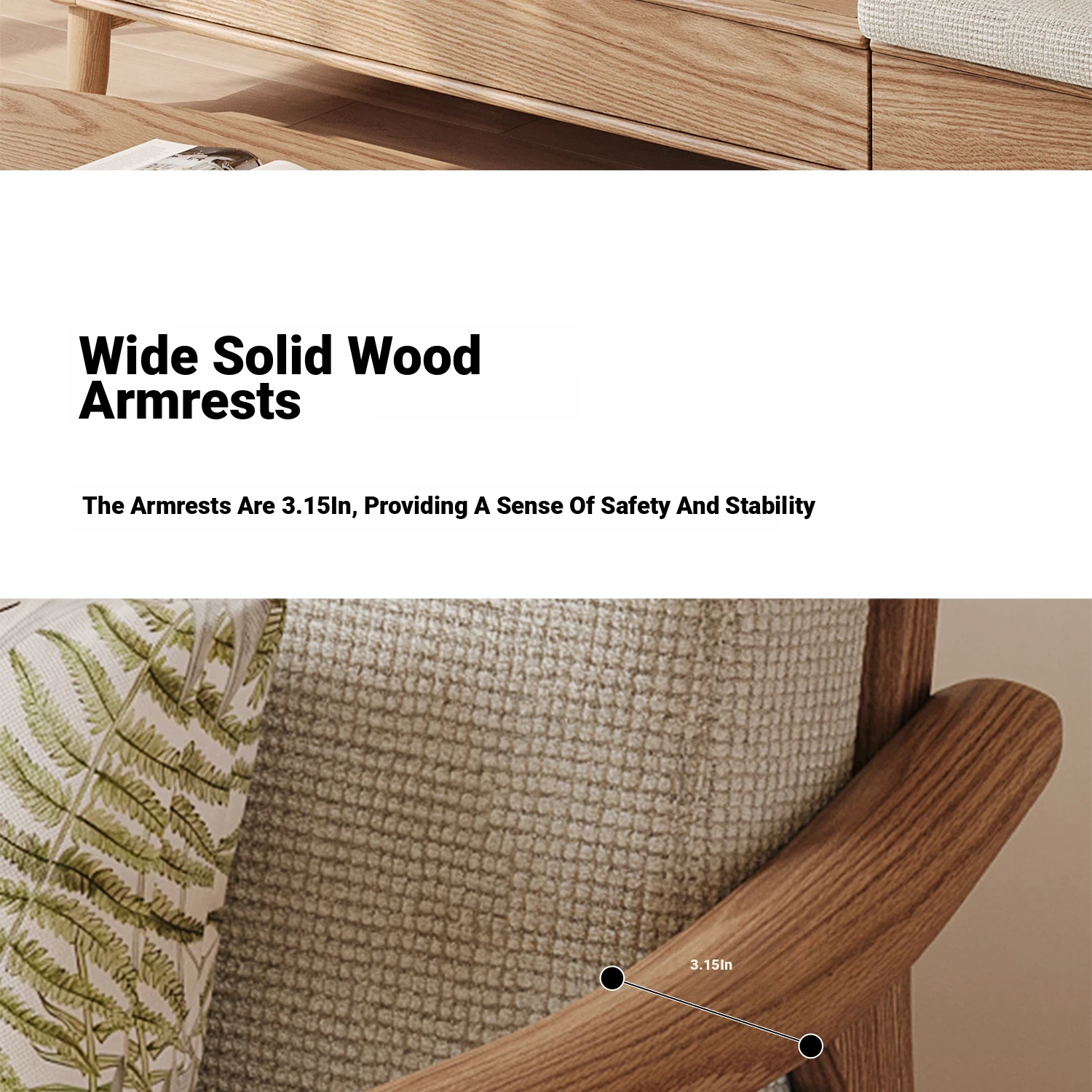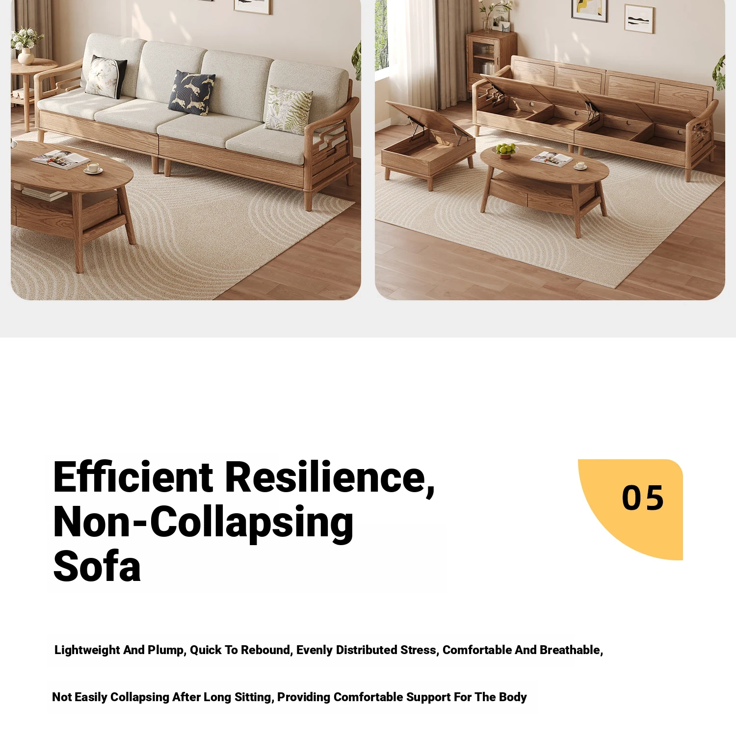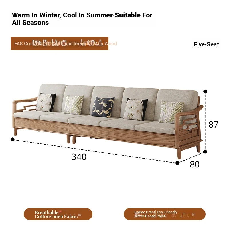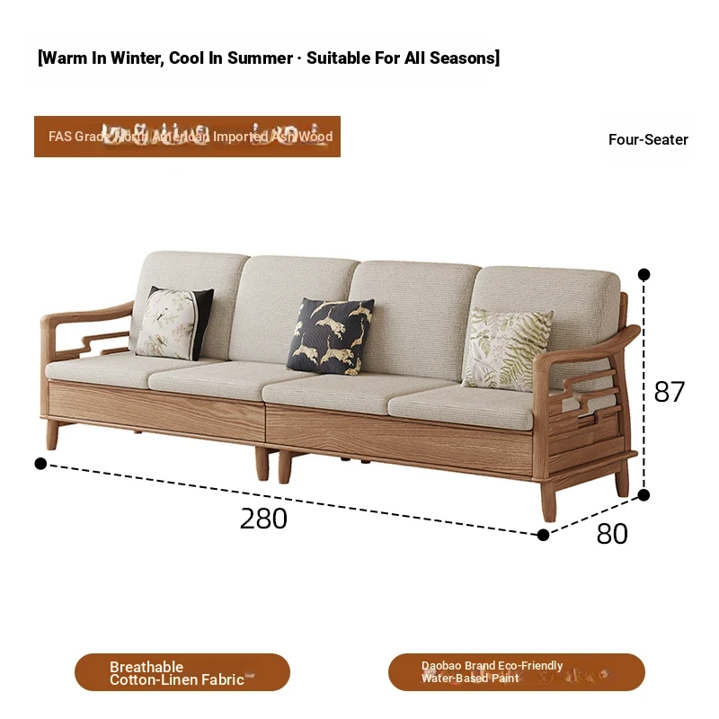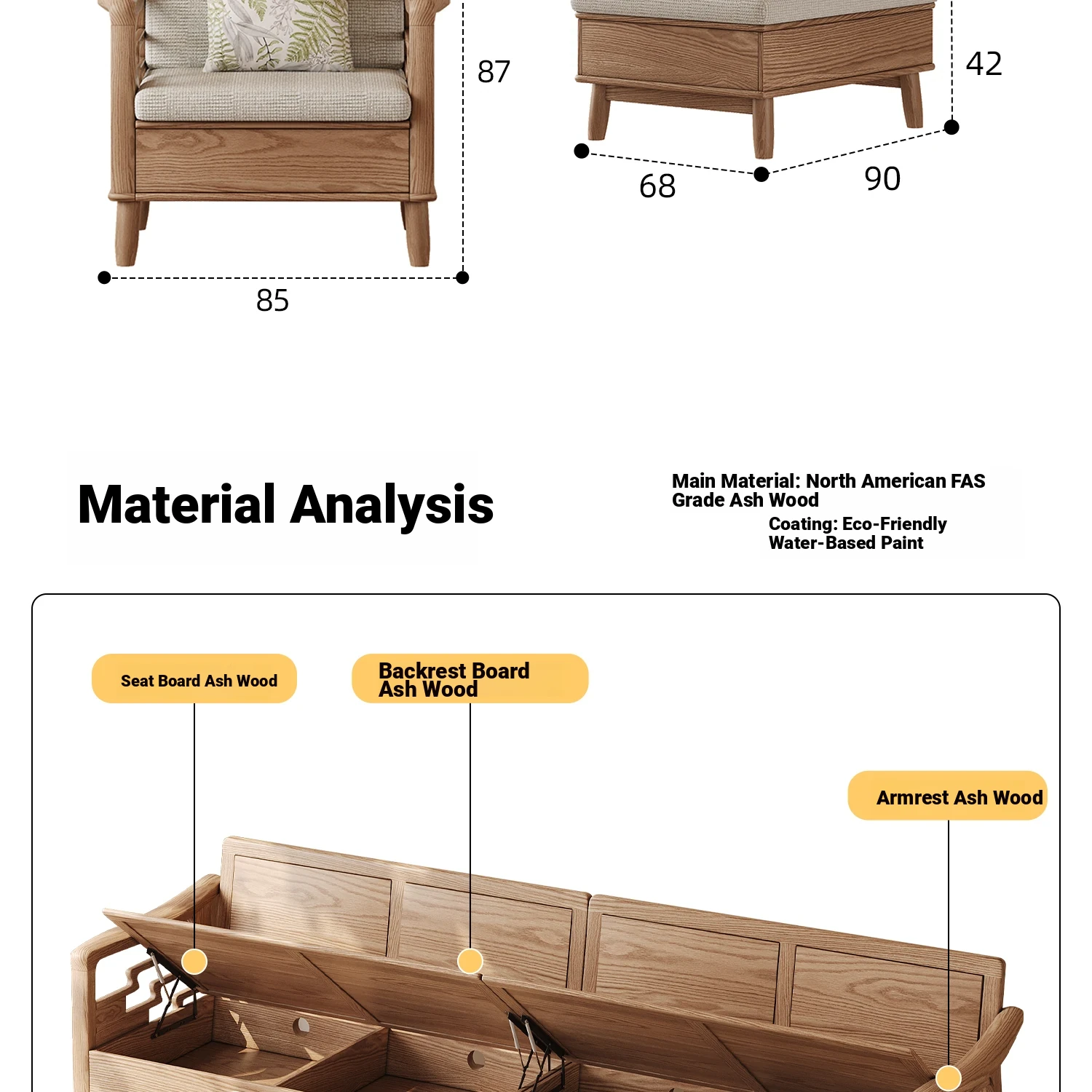 Modern Minimalist Solid Ash Wood Sofa Set - Space-Saving Design for Small Living Rooms, Winter & Summer Use, with High-Storage Options for Practical Living.