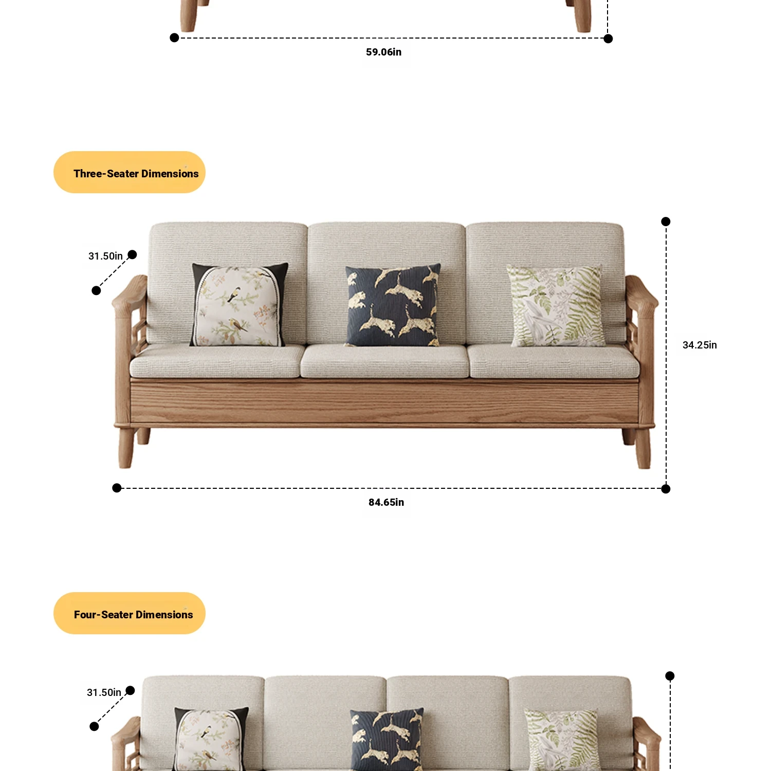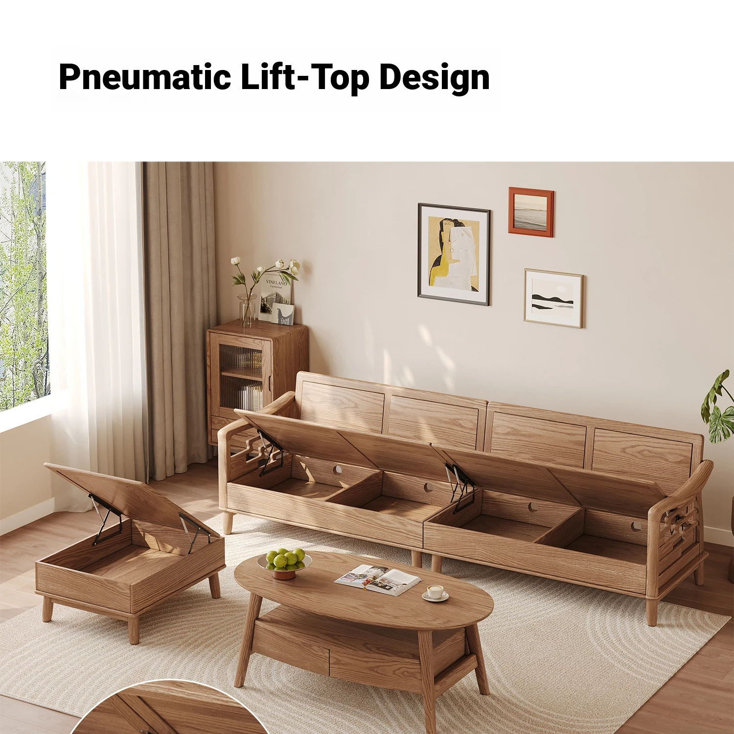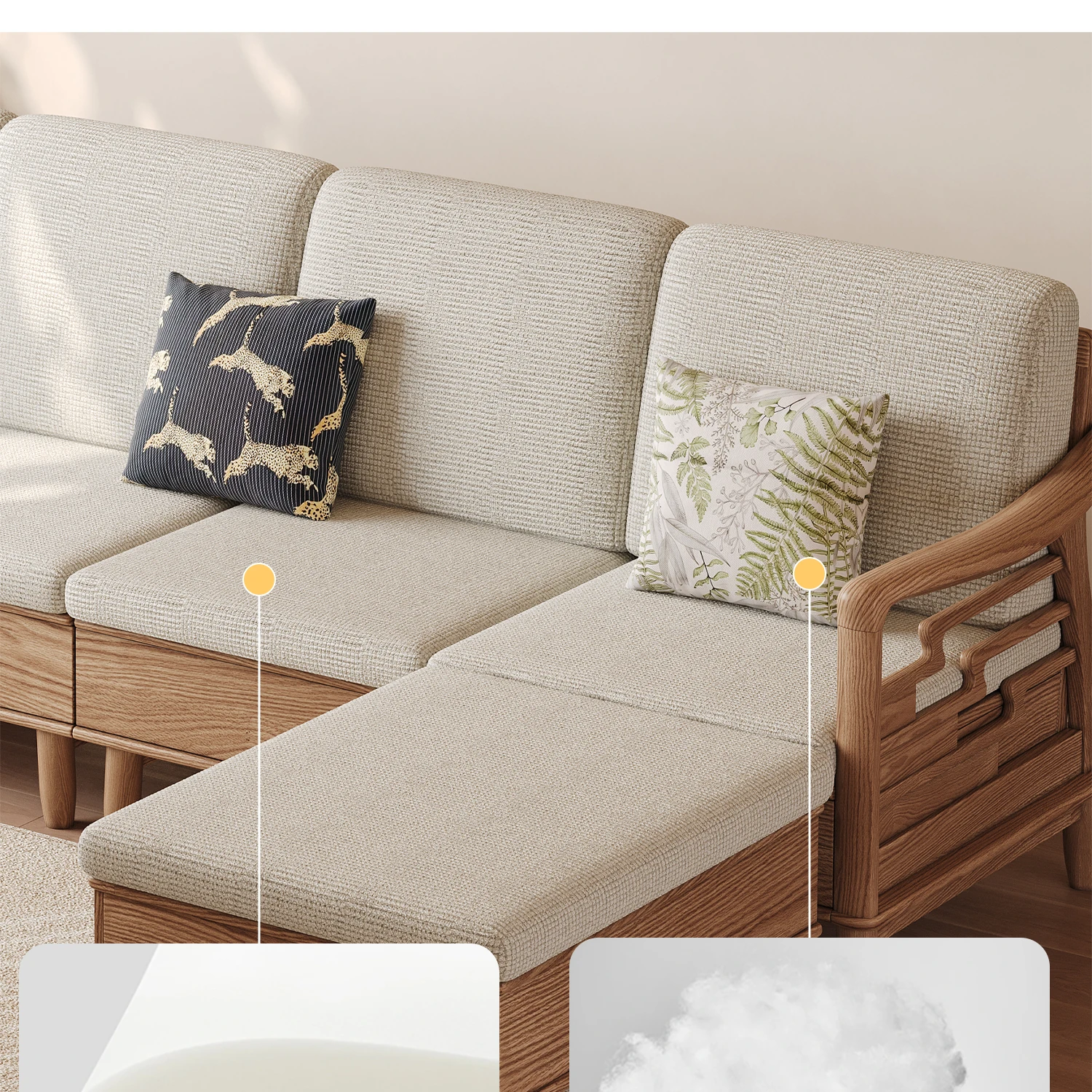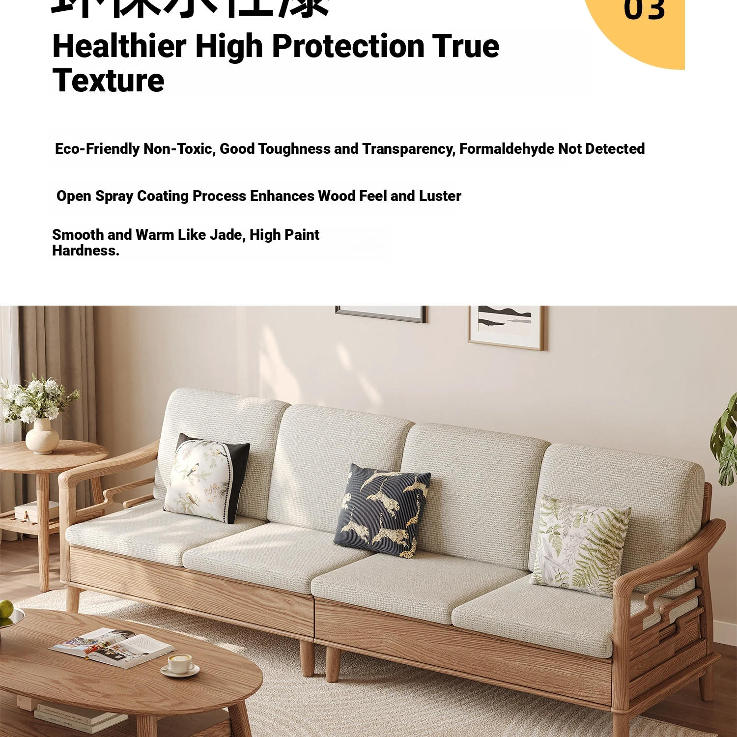 Modern Minimalist Solid Ash Wood Sofa Set - Space-Saving Design for Small Living Rooms, Winter & Summer Use, with High-Storage Options for Practical Living.