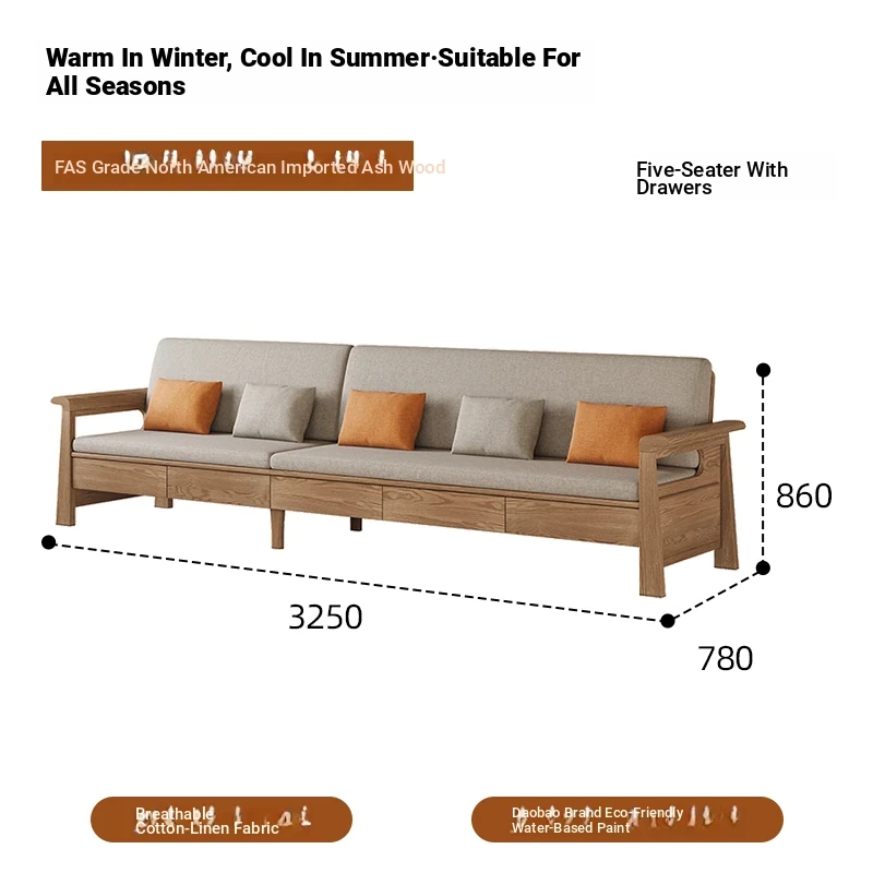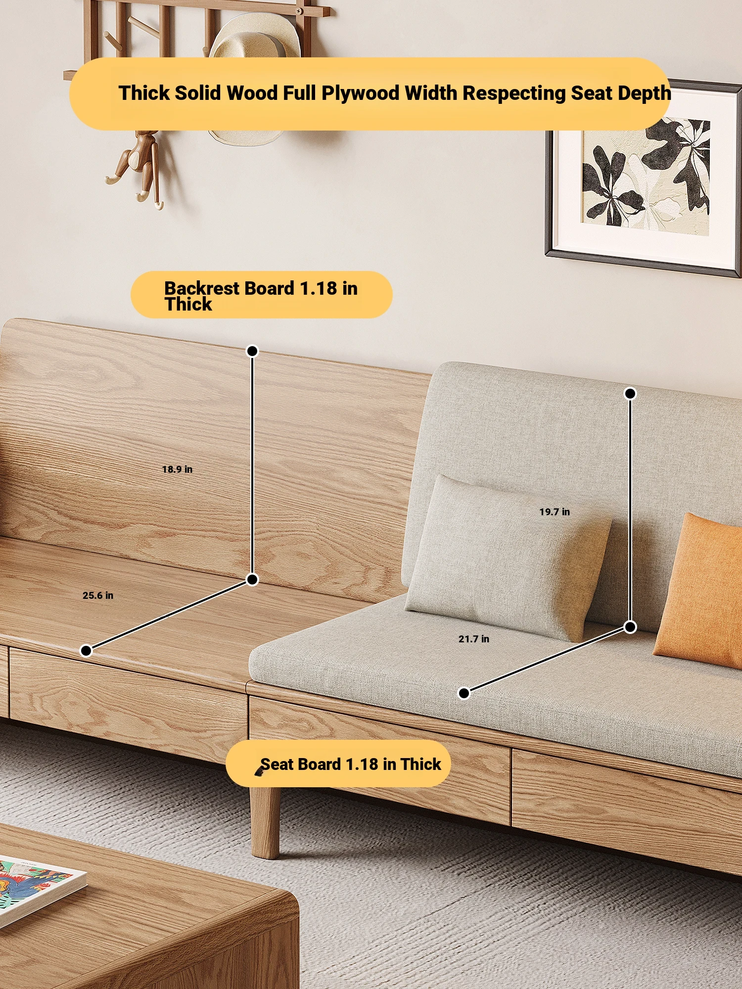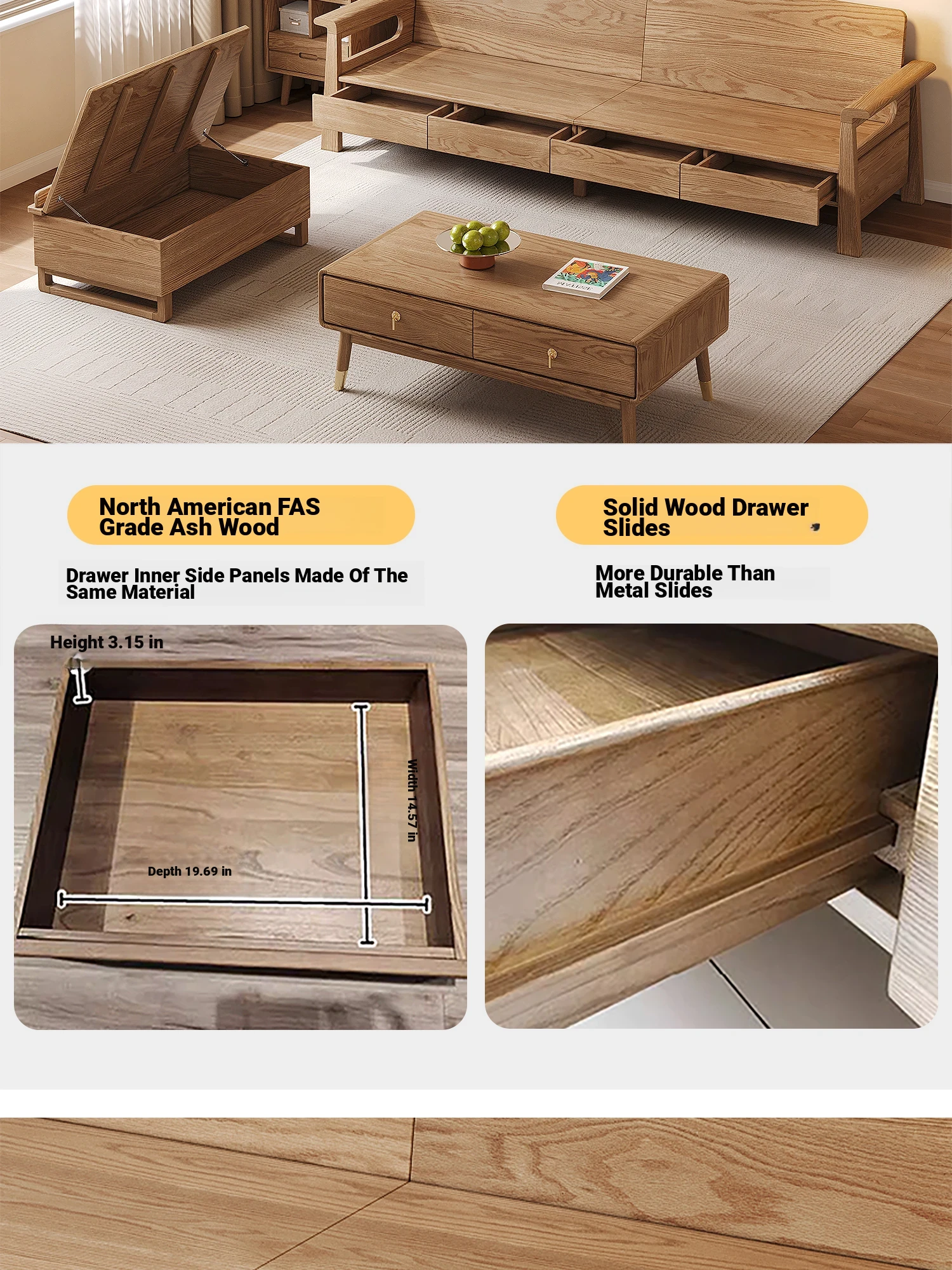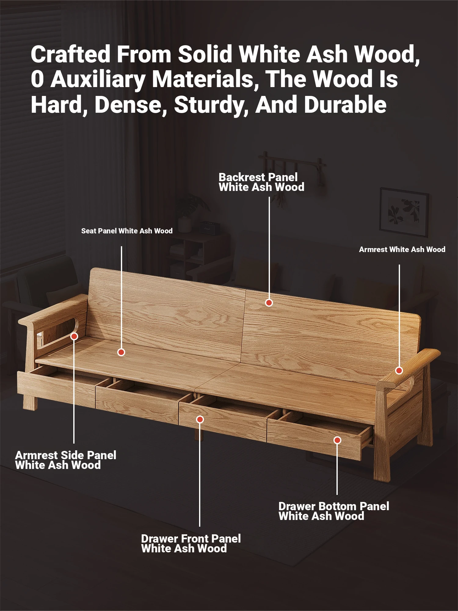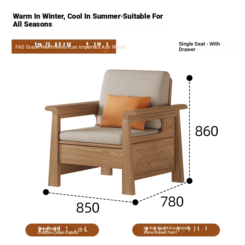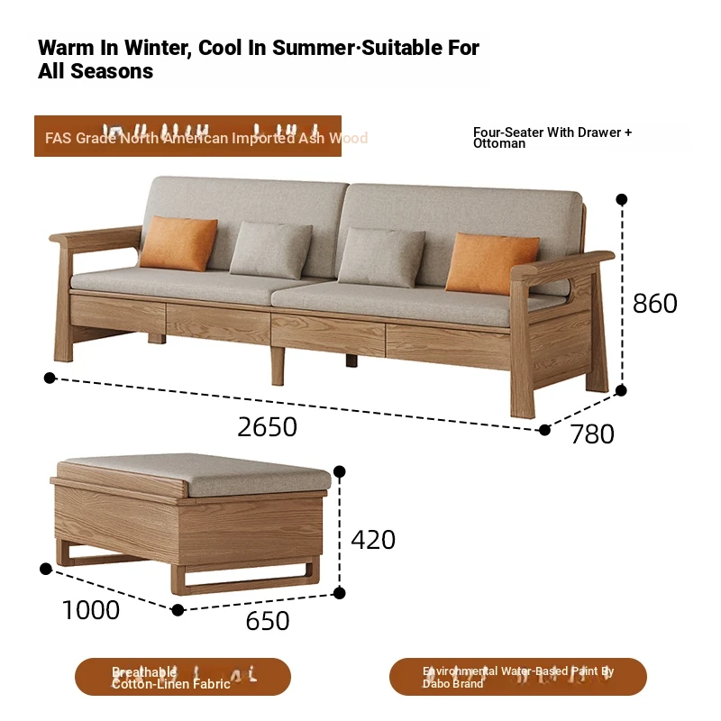 Nordic Solid Wood Sofa Set - Modern Minimalist Design, Versatile for Winter and Summer, Featuring Ash Wood Drawers for Storage, Perfect for Small to Medium Living Spaces