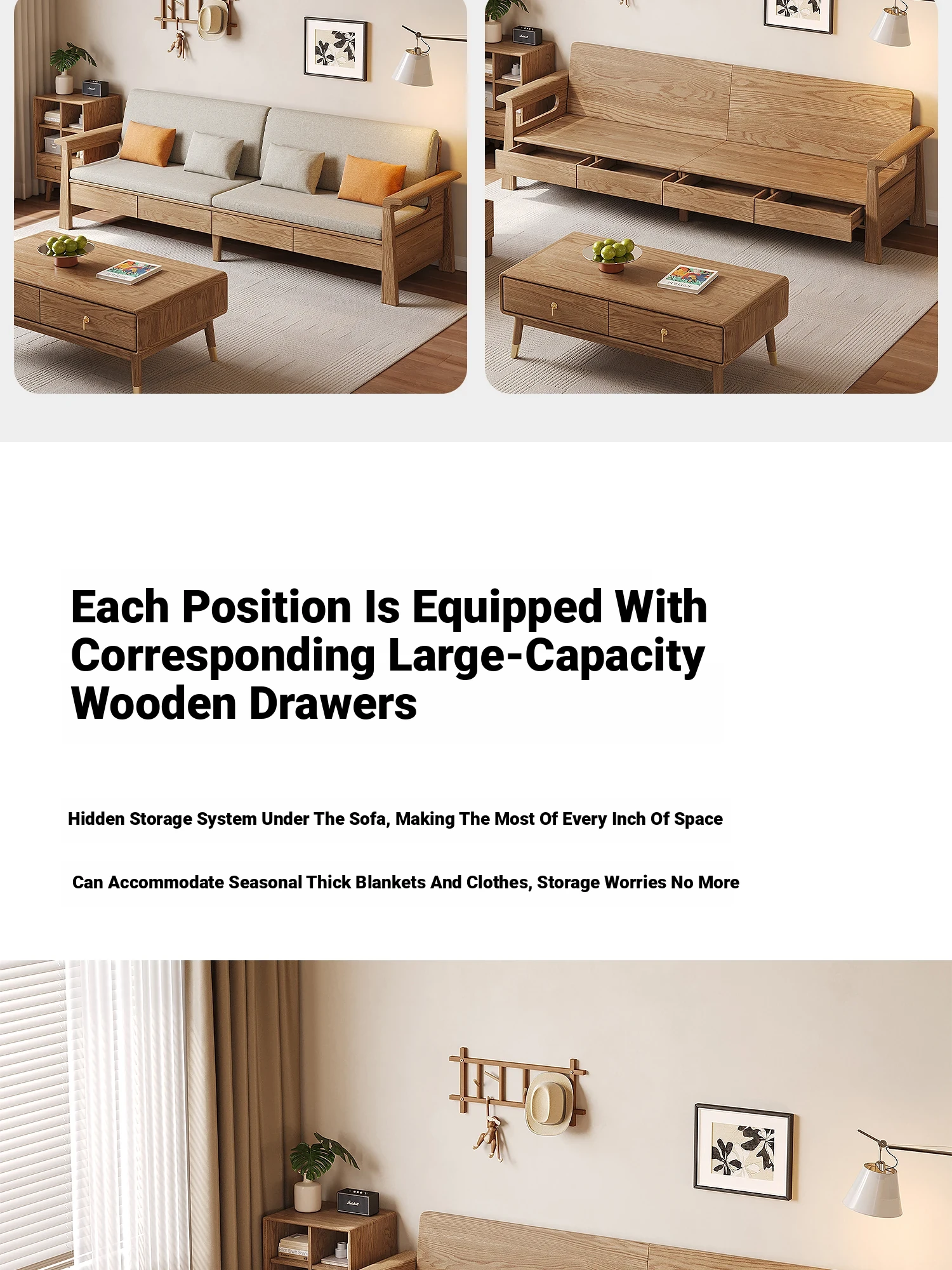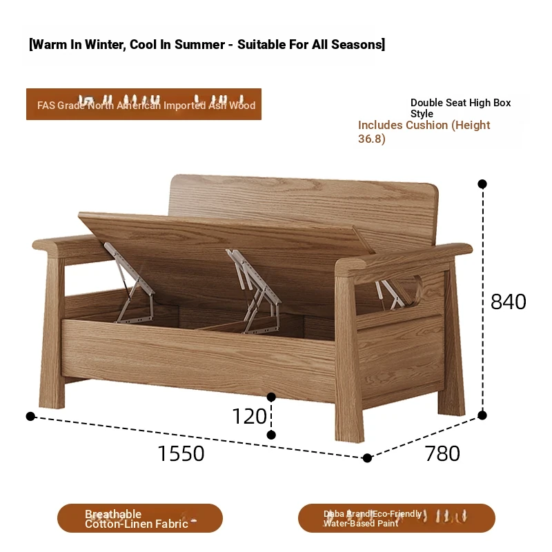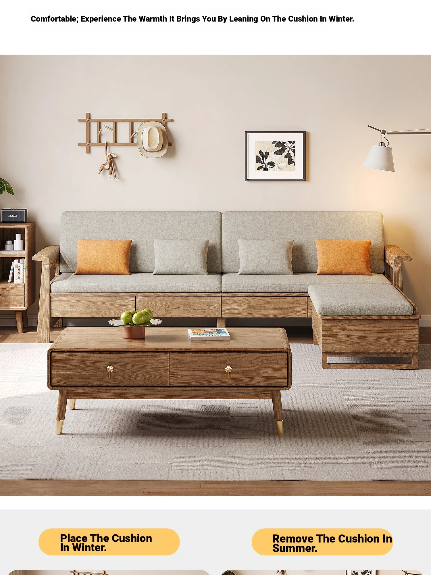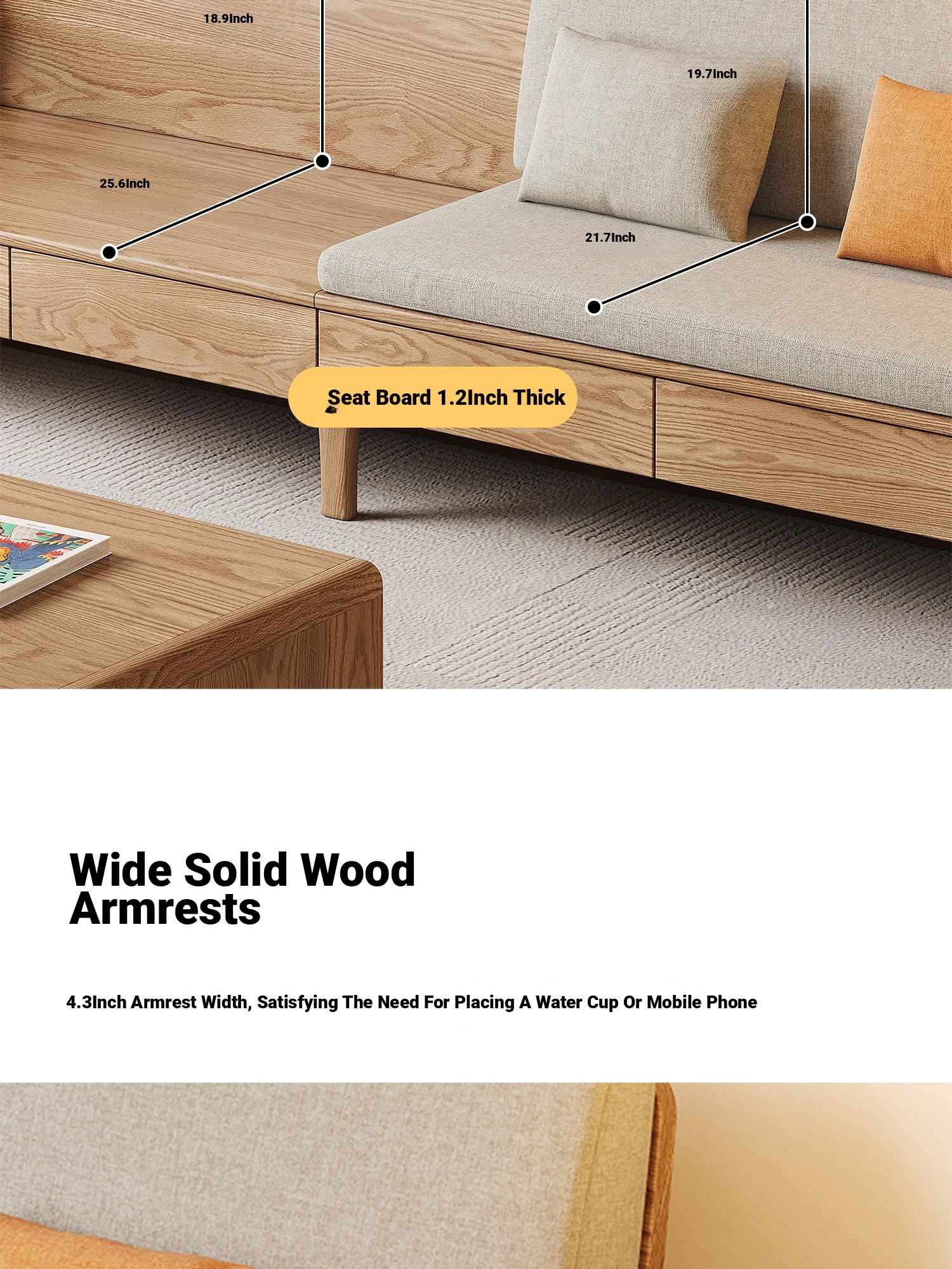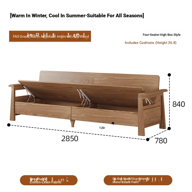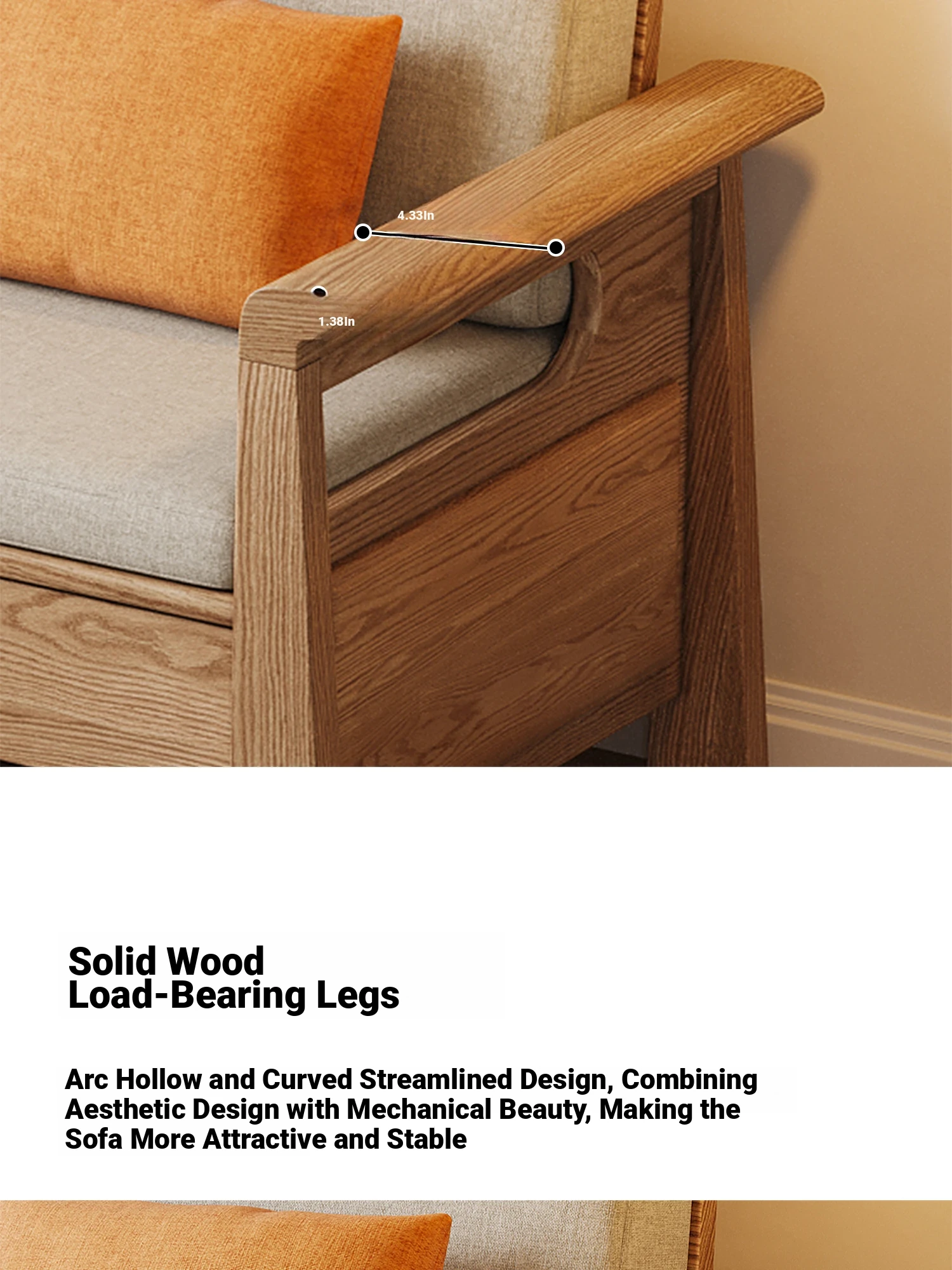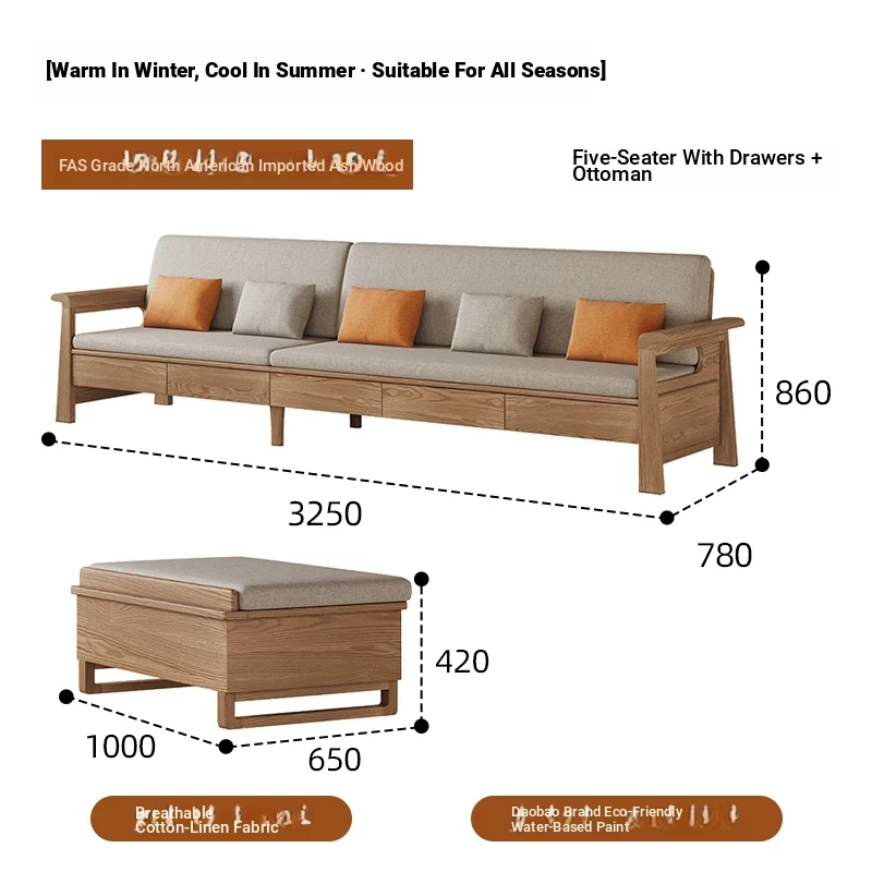 Nordic Solid Wood Sofa Set - Modern Minimalist Design, Versatile for Winter and Summer, Featuring Ash Wood Drawers for Storage, Perfect for Small to Medium Living Spaces