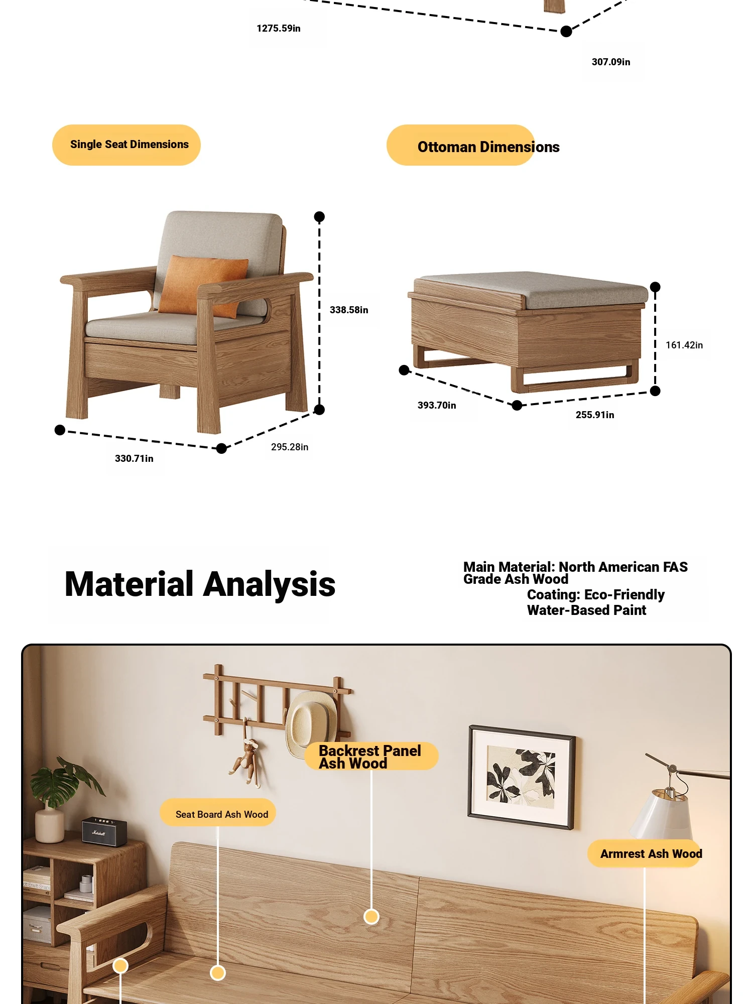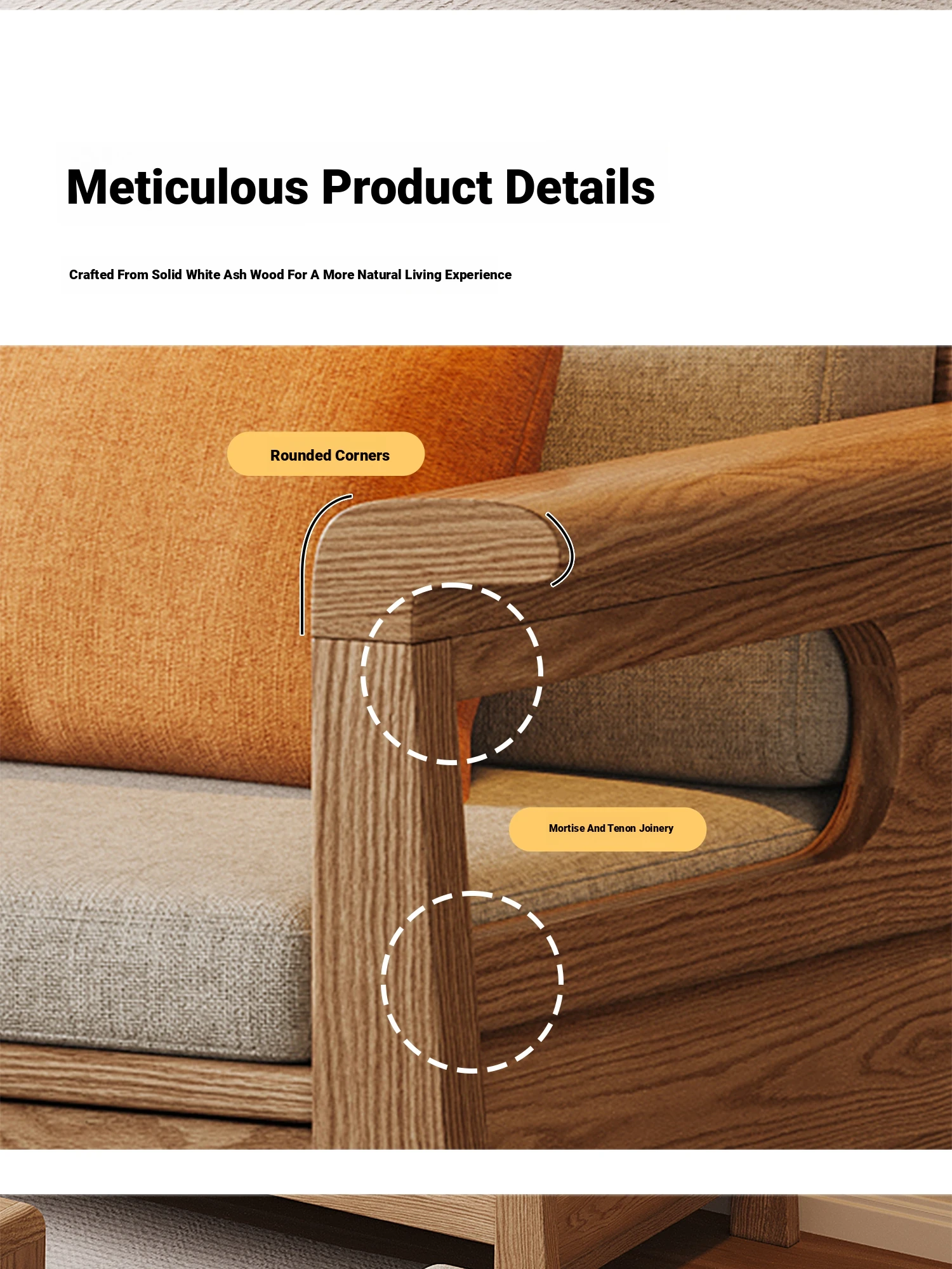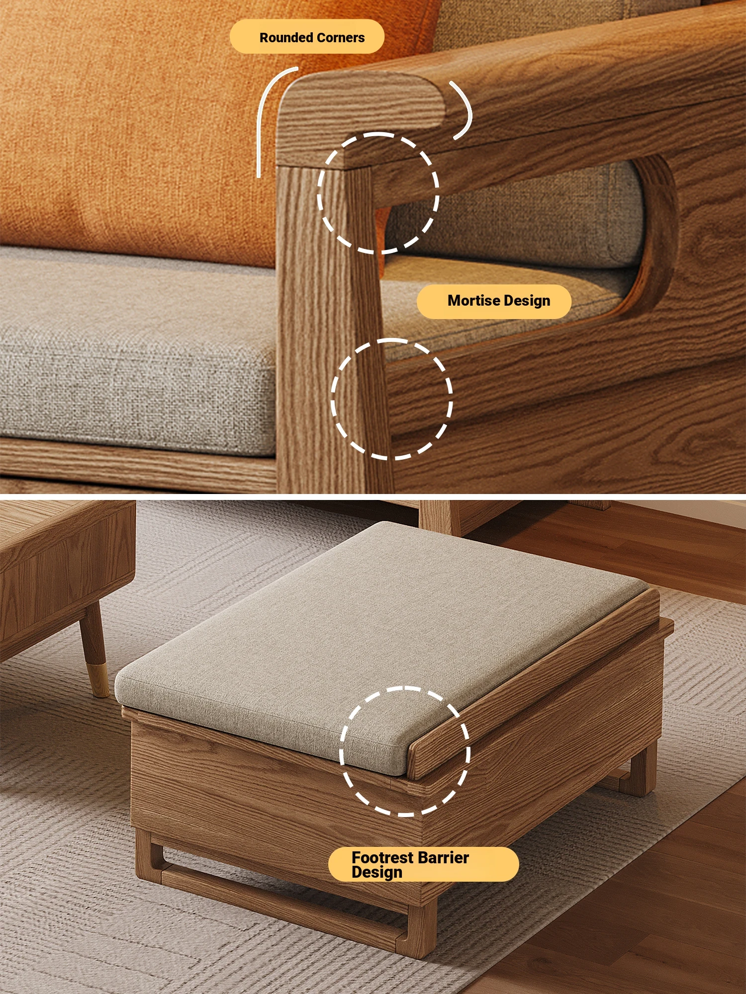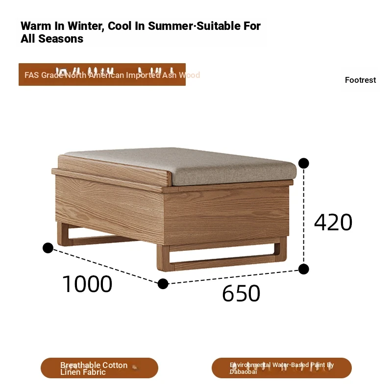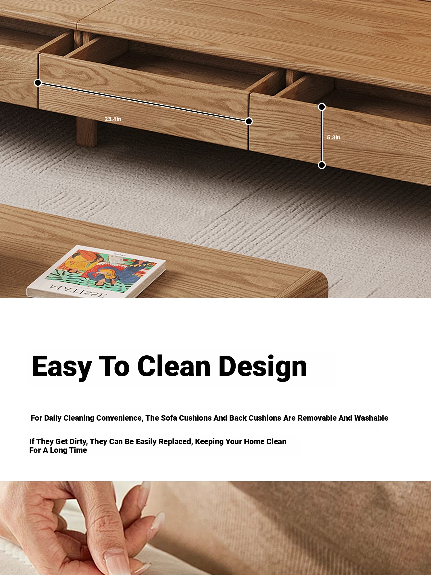 Nordic Solid Wood Sofa Set - Modern Minimalist Design, Versatile for Winter and Summer, Featuring Ash Wood Drawers for Storage, Perfect for Small to Medium Living Spaces