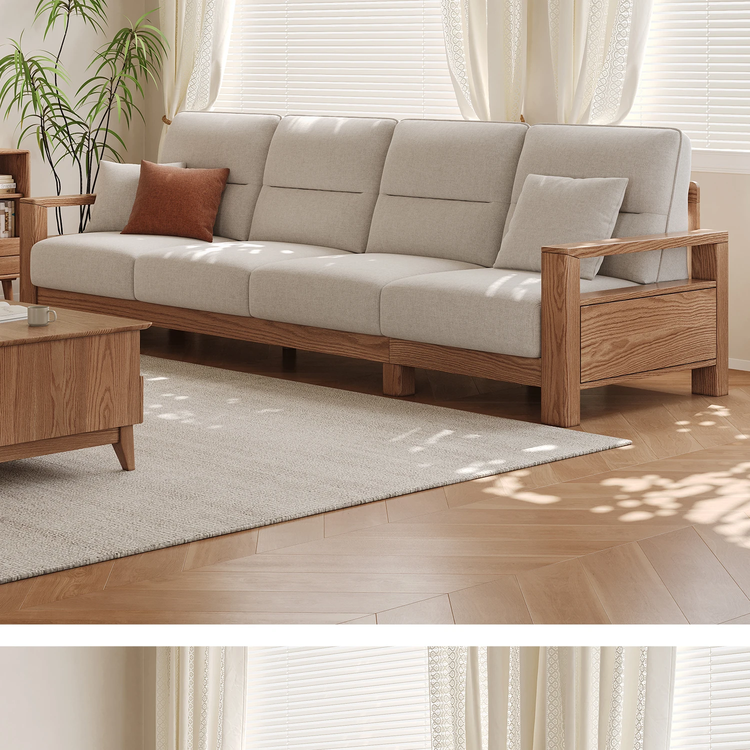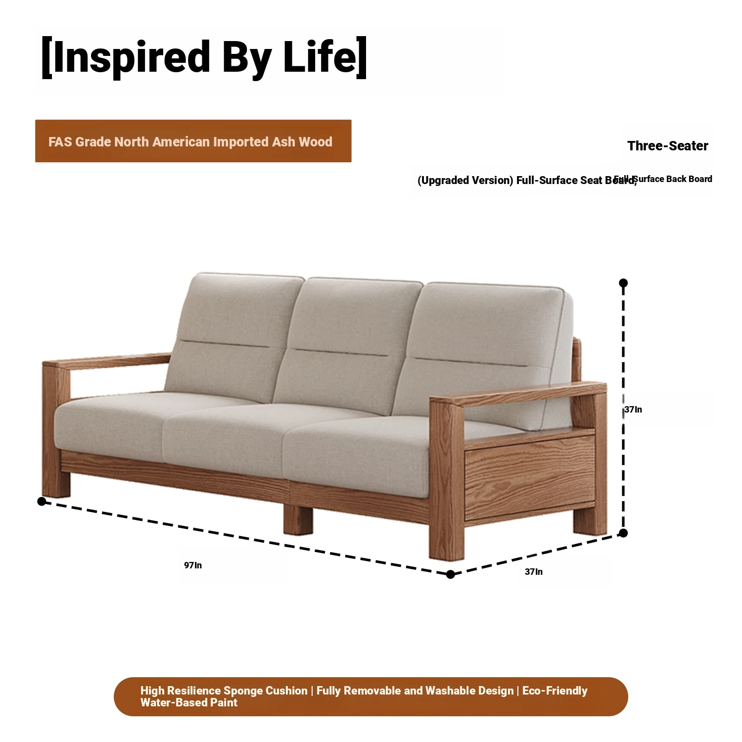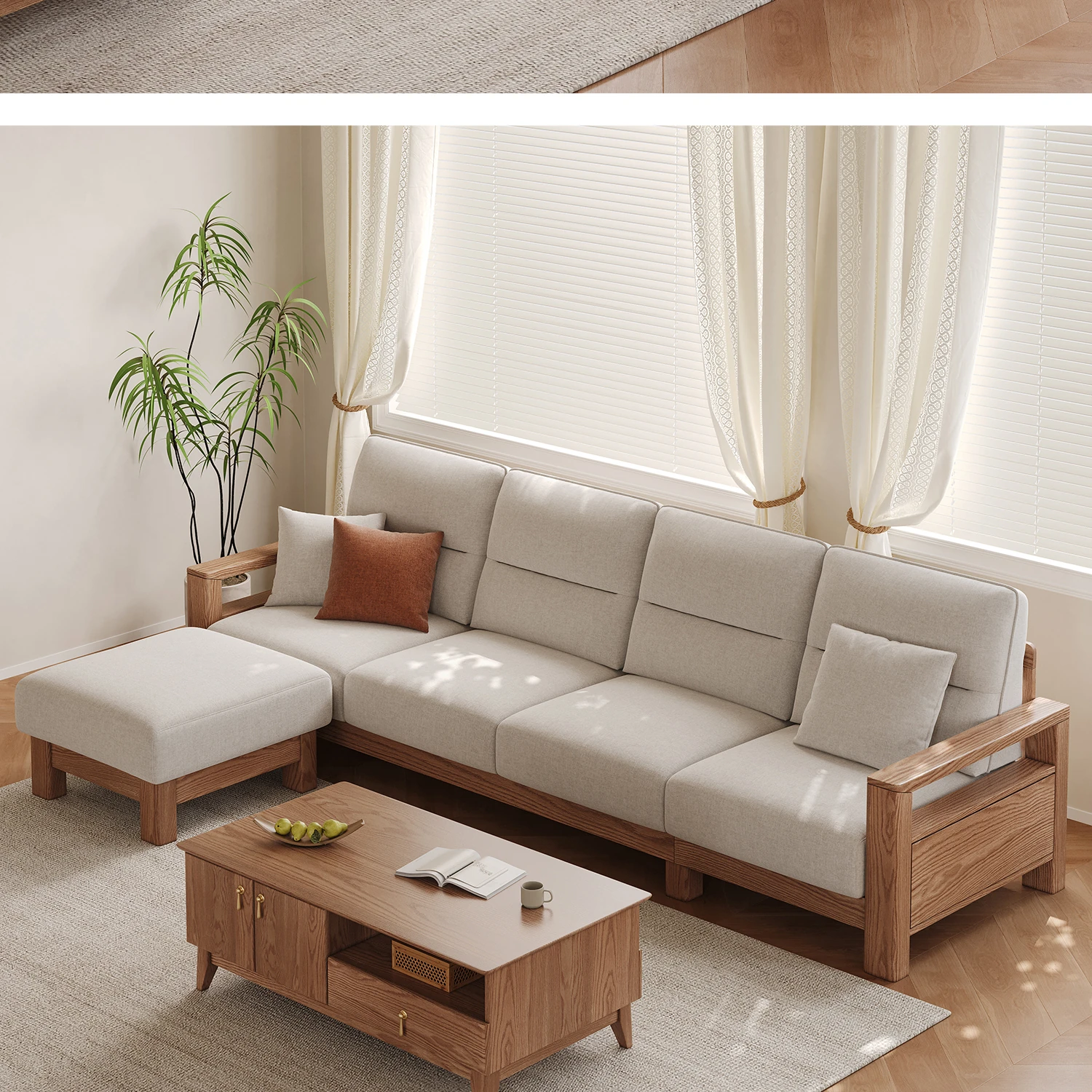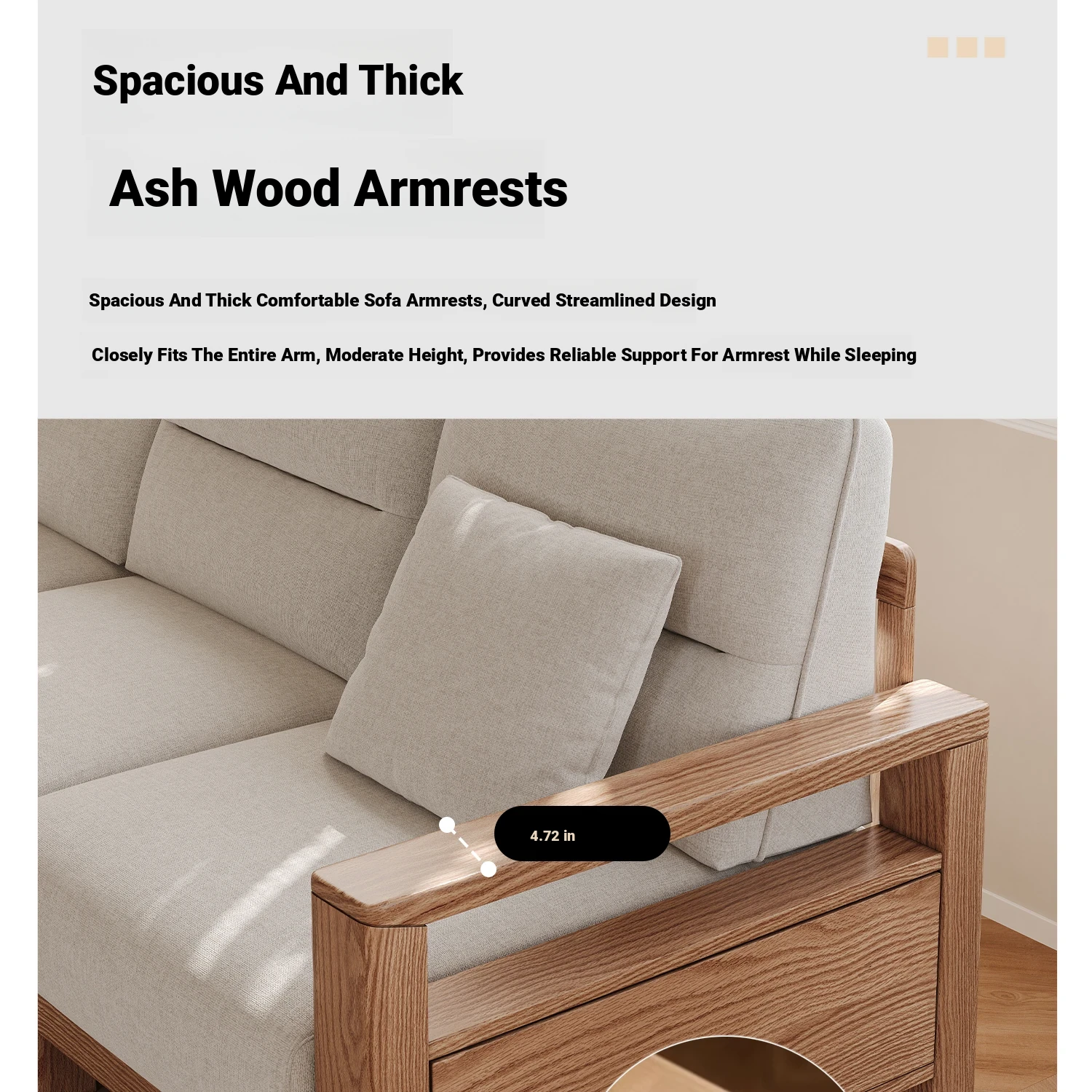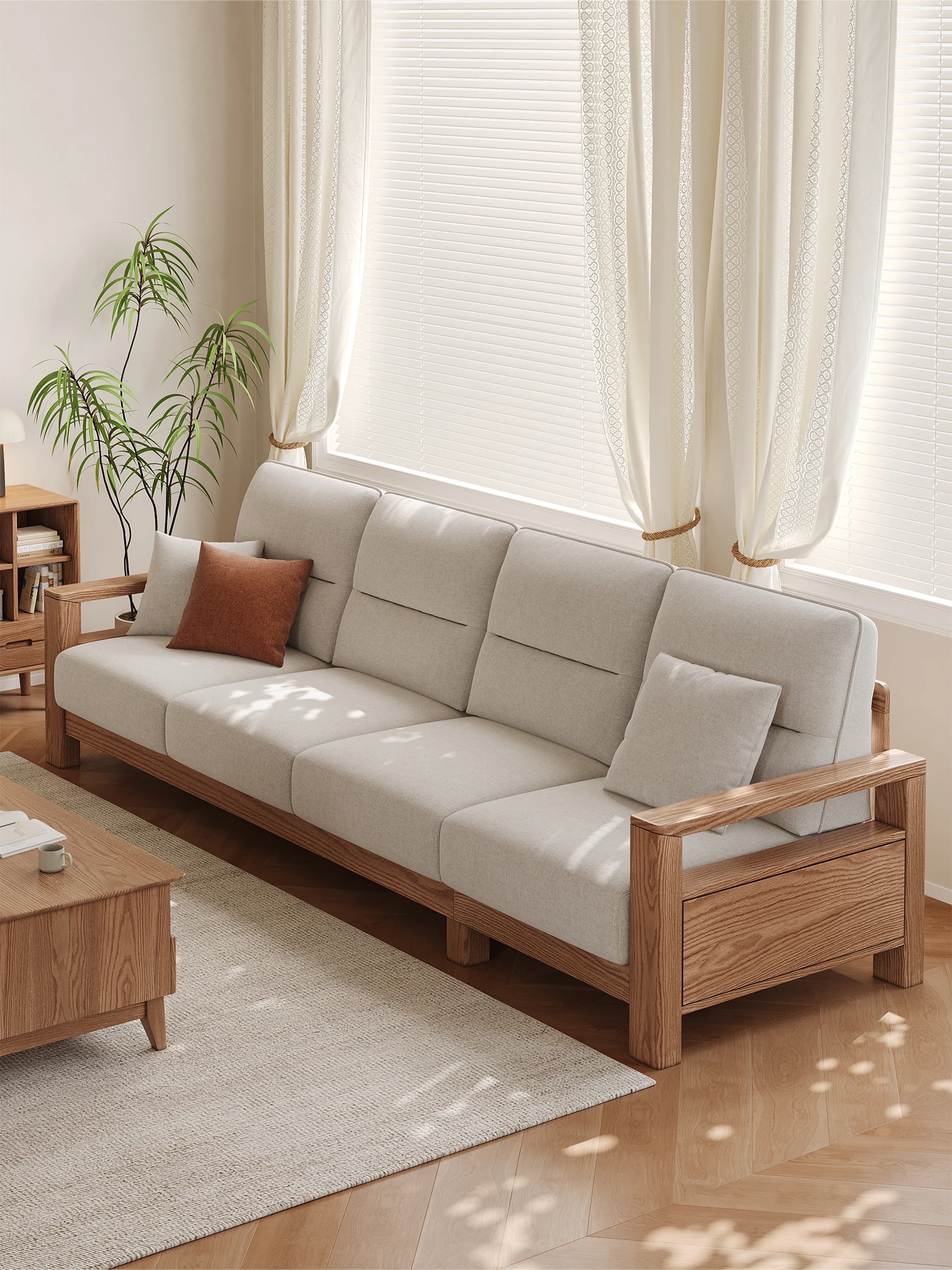 Solid Wood Sofa - New Chinese Style Ash Wood Fabric Sofa for Modern Minimalist Nordic Large Living Room - Natural Wood Furniture