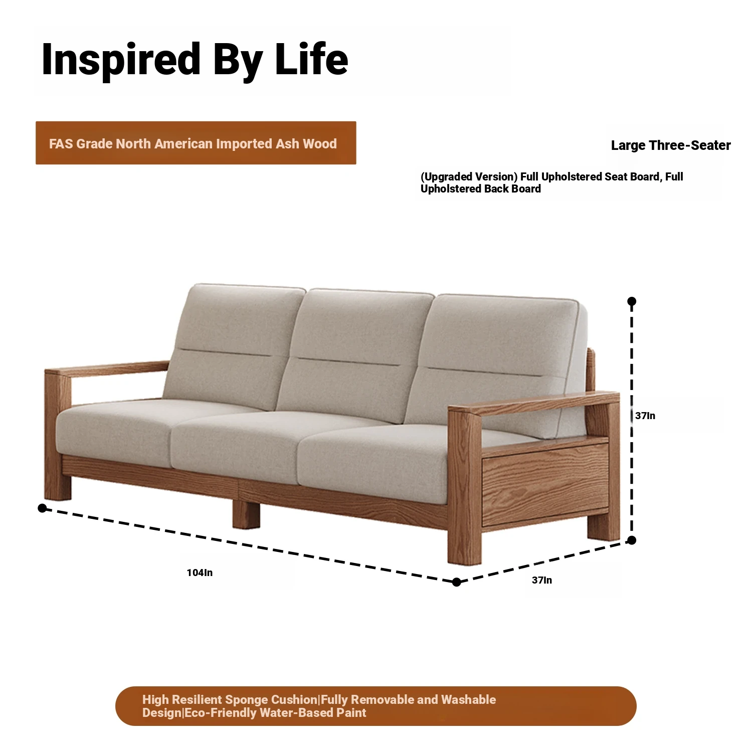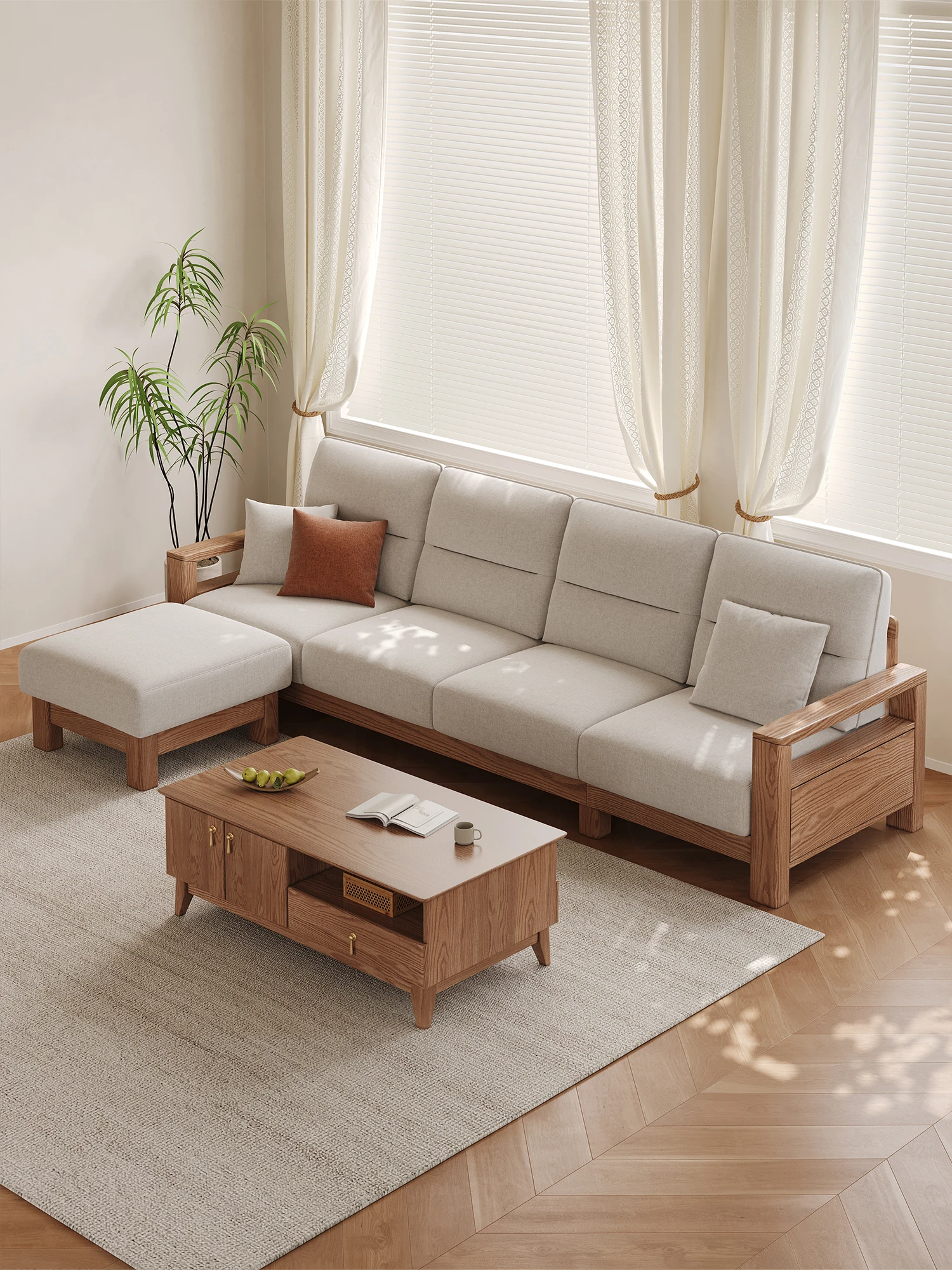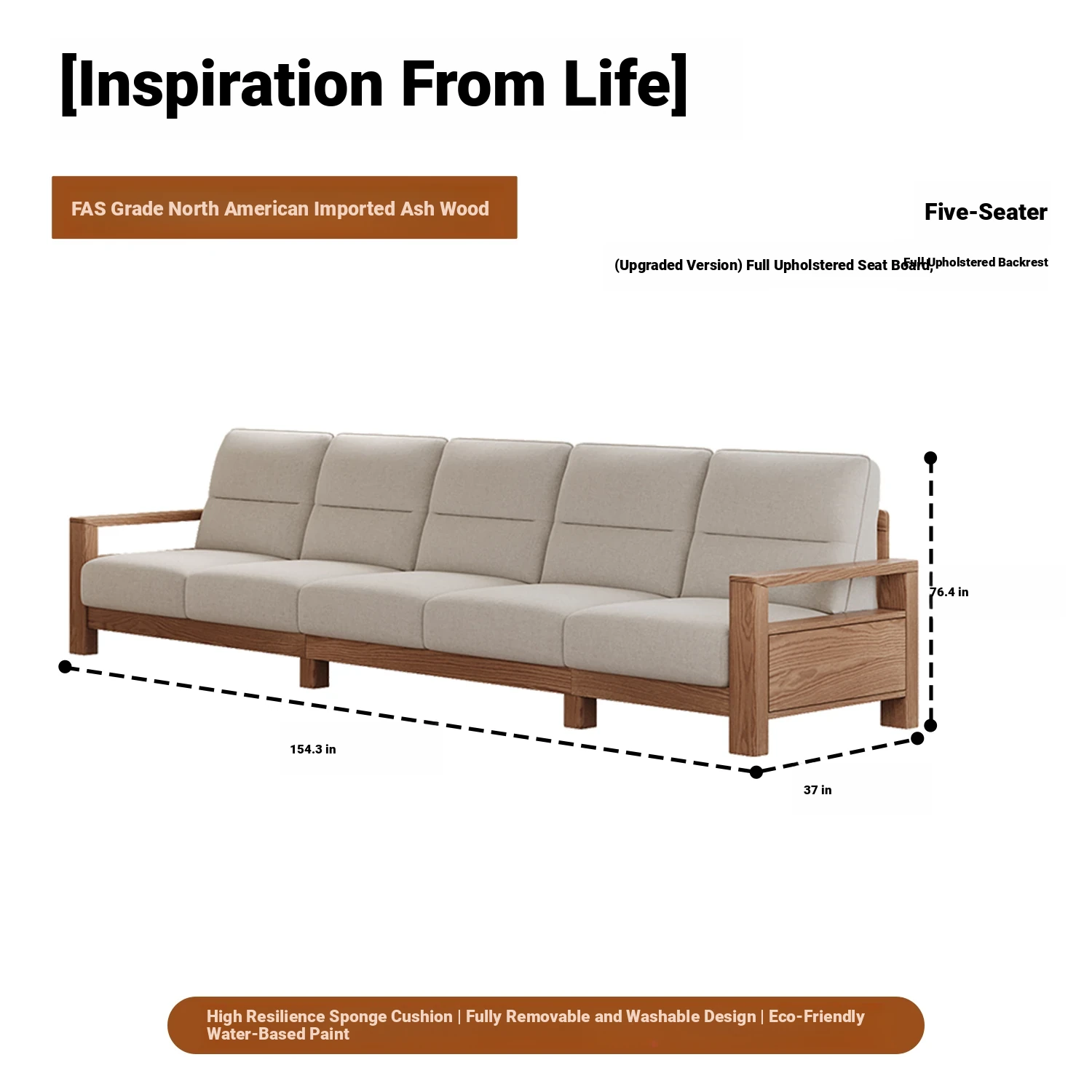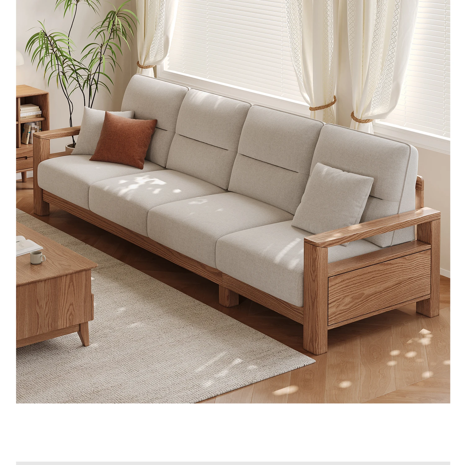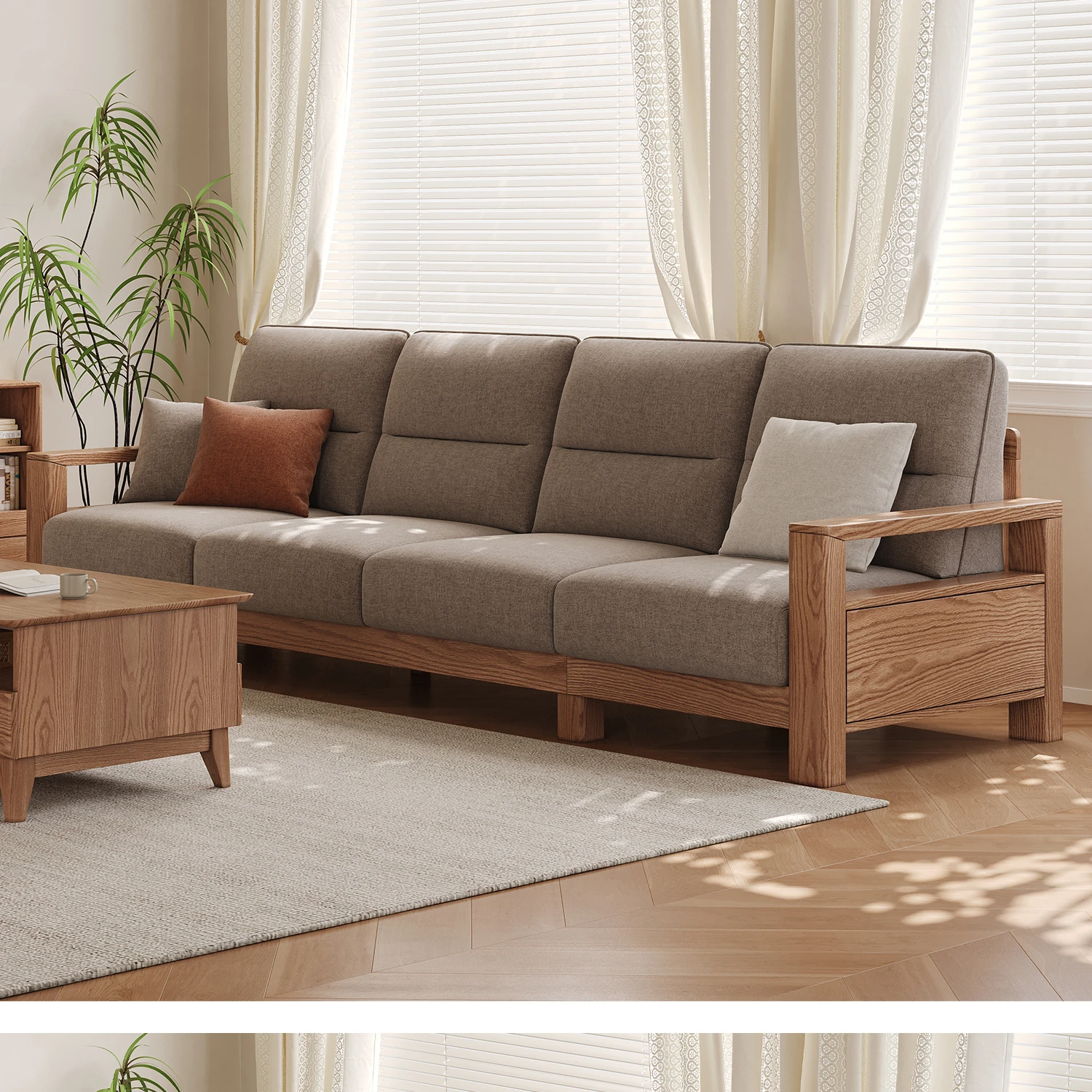 Solid Wood Sofa - New Chinese Style Ash Wood Fabric Sofa for Modern Minimalist Nordic Large Living Room - Natural Wood Furniture