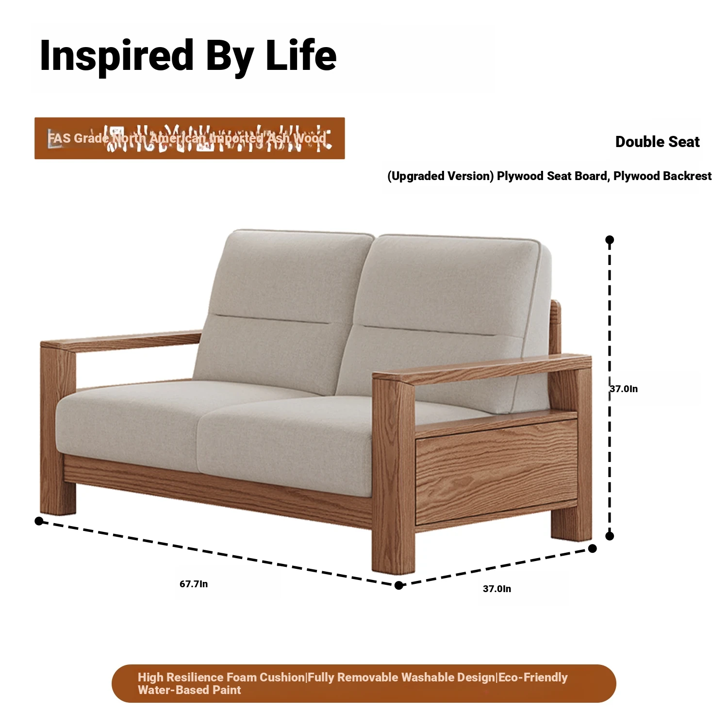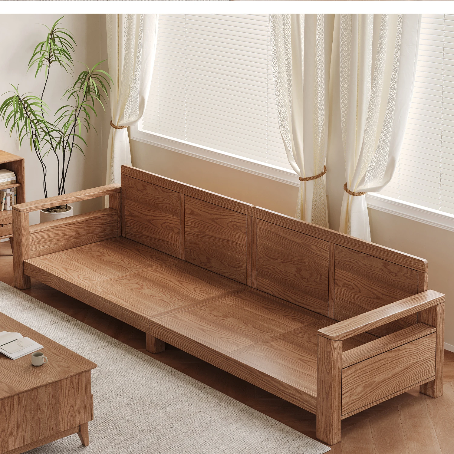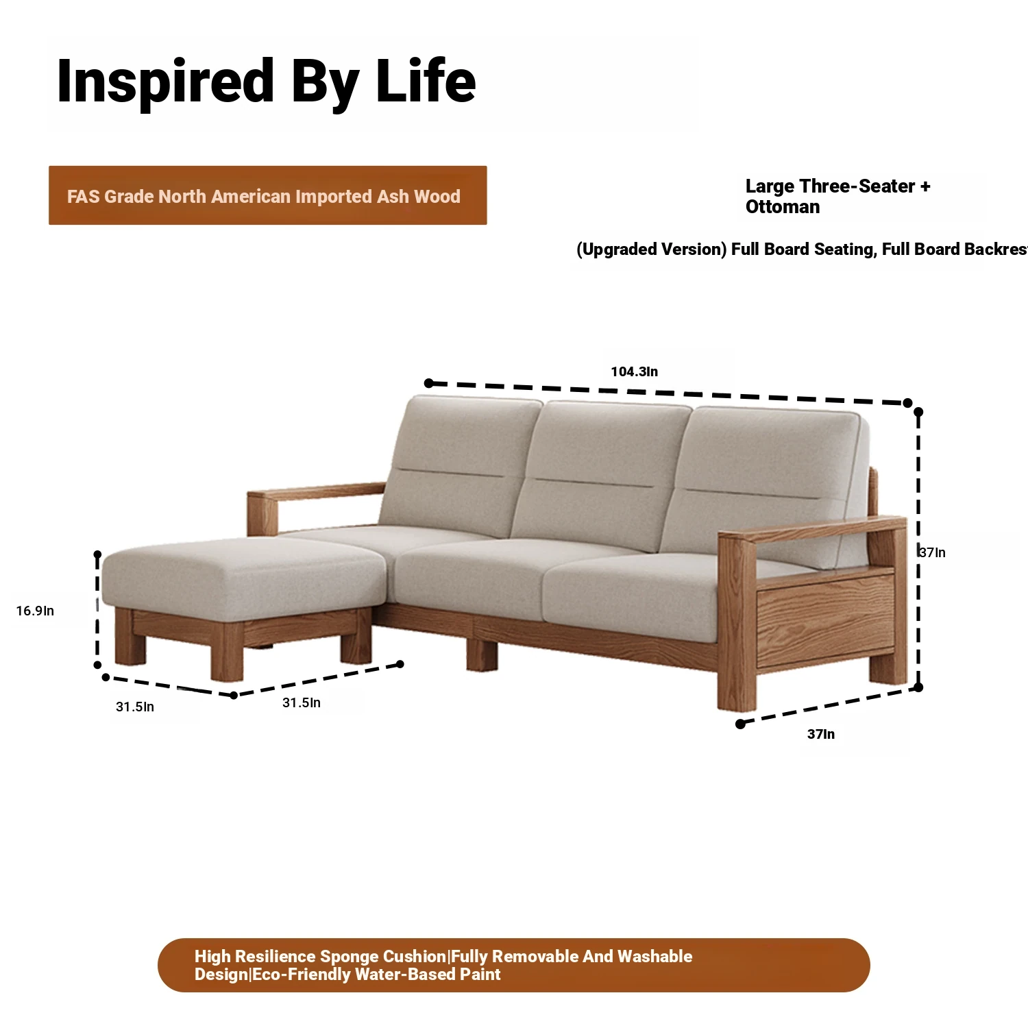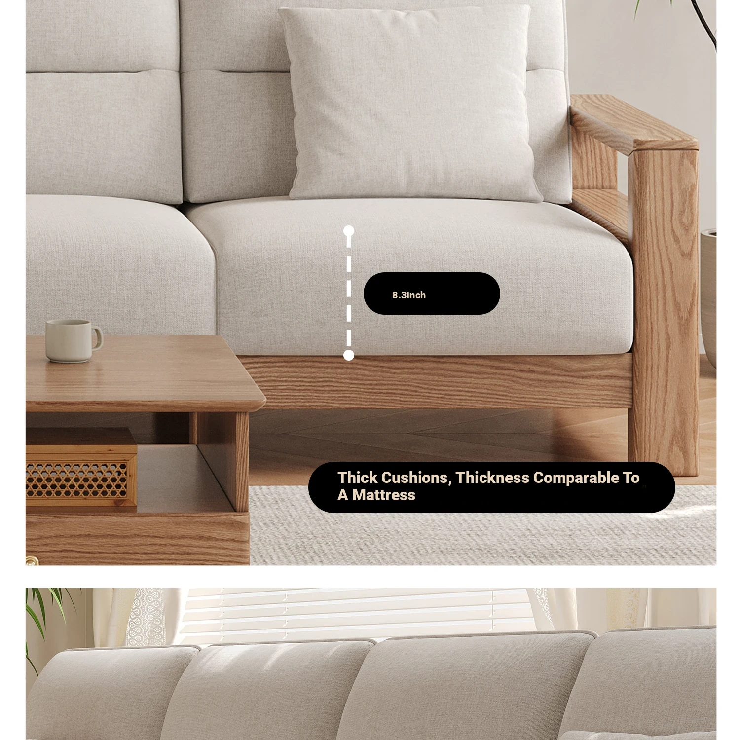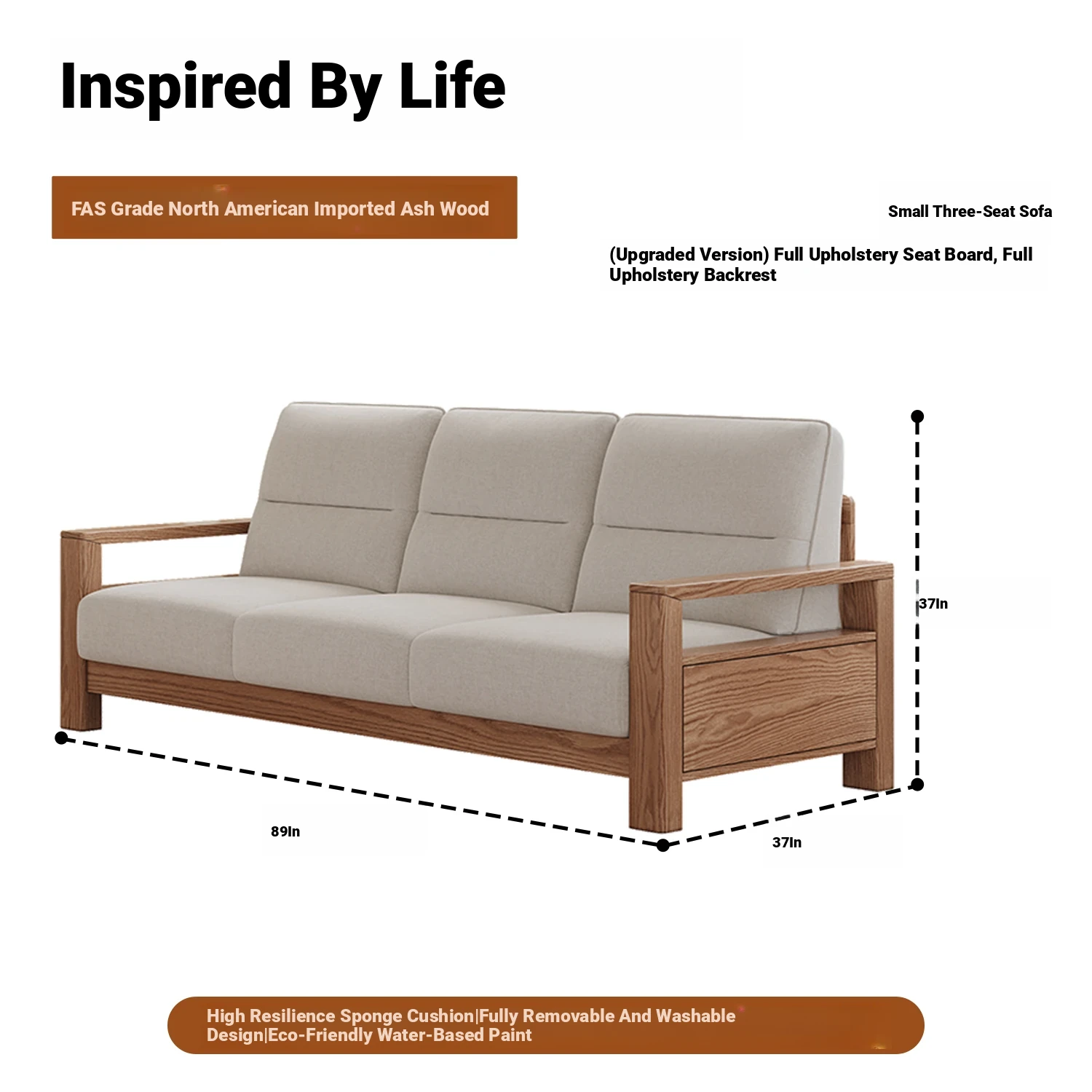 Solid Wood Sofa - New Chinese Style Ash Wood Fabric Sofa for Modern Minimalist Nordic Large Living Room - Natural Wood Furniture