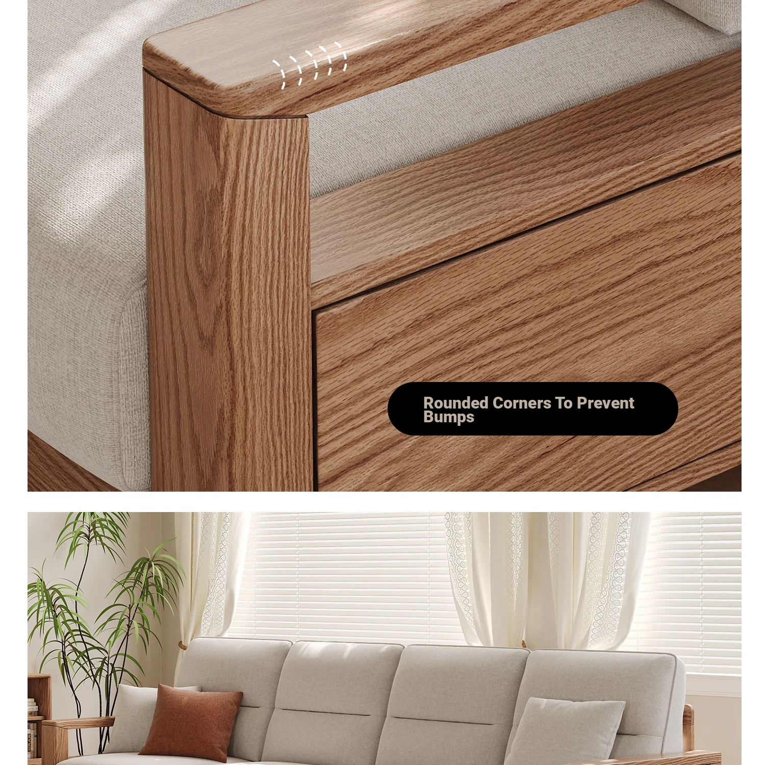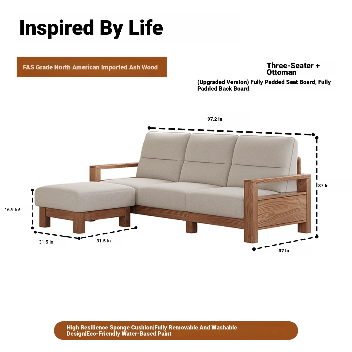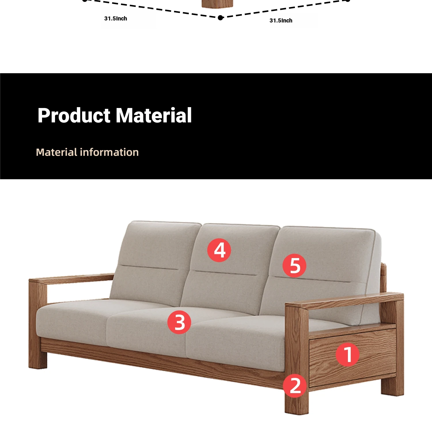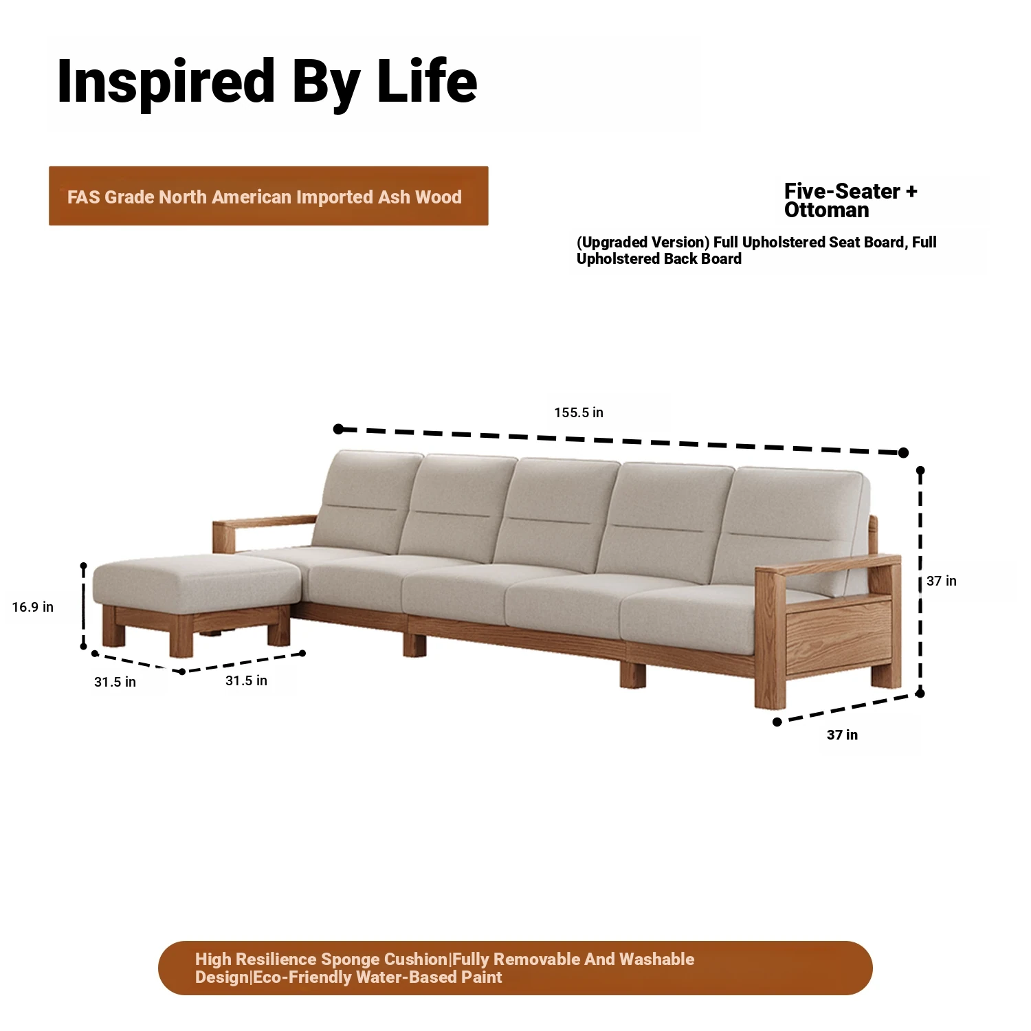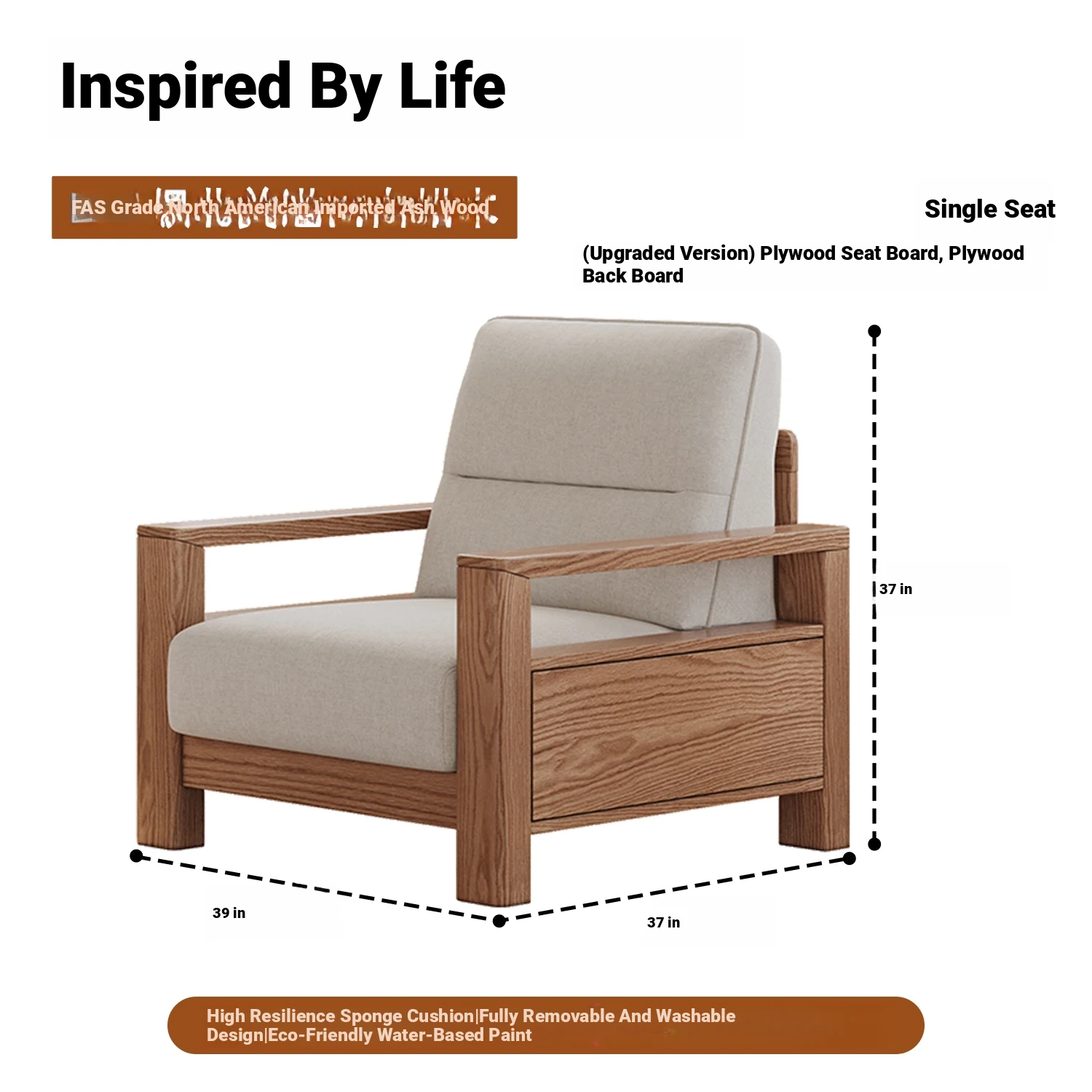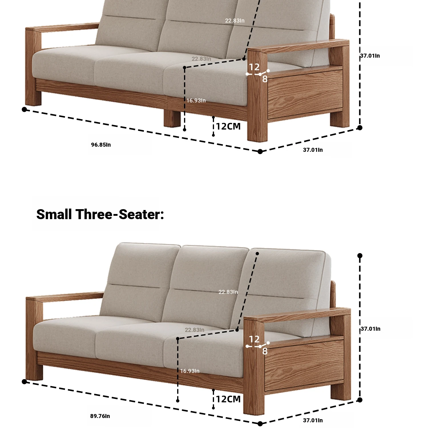 Solid Wood Sofa - New Chinese Style Ash Wood Fabric Sofa for Modern Minimalist Nordic Large Living Room - Natural Wood Furniture