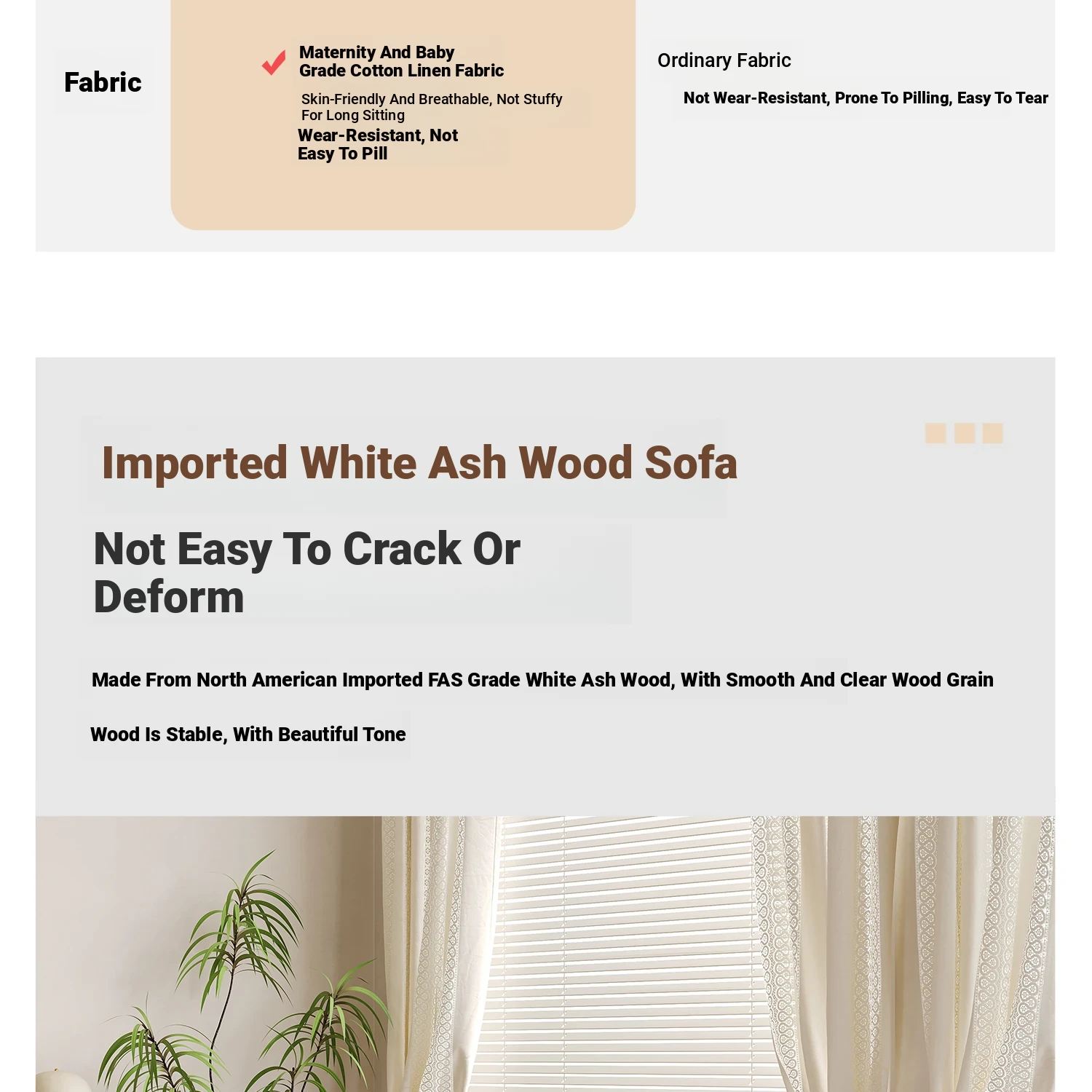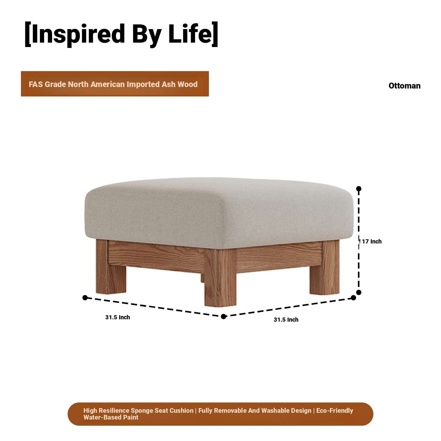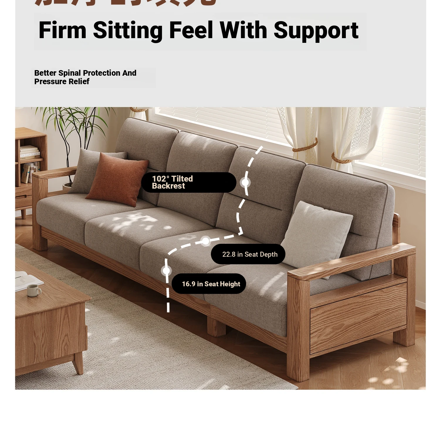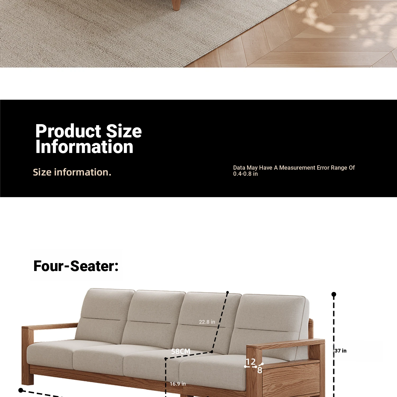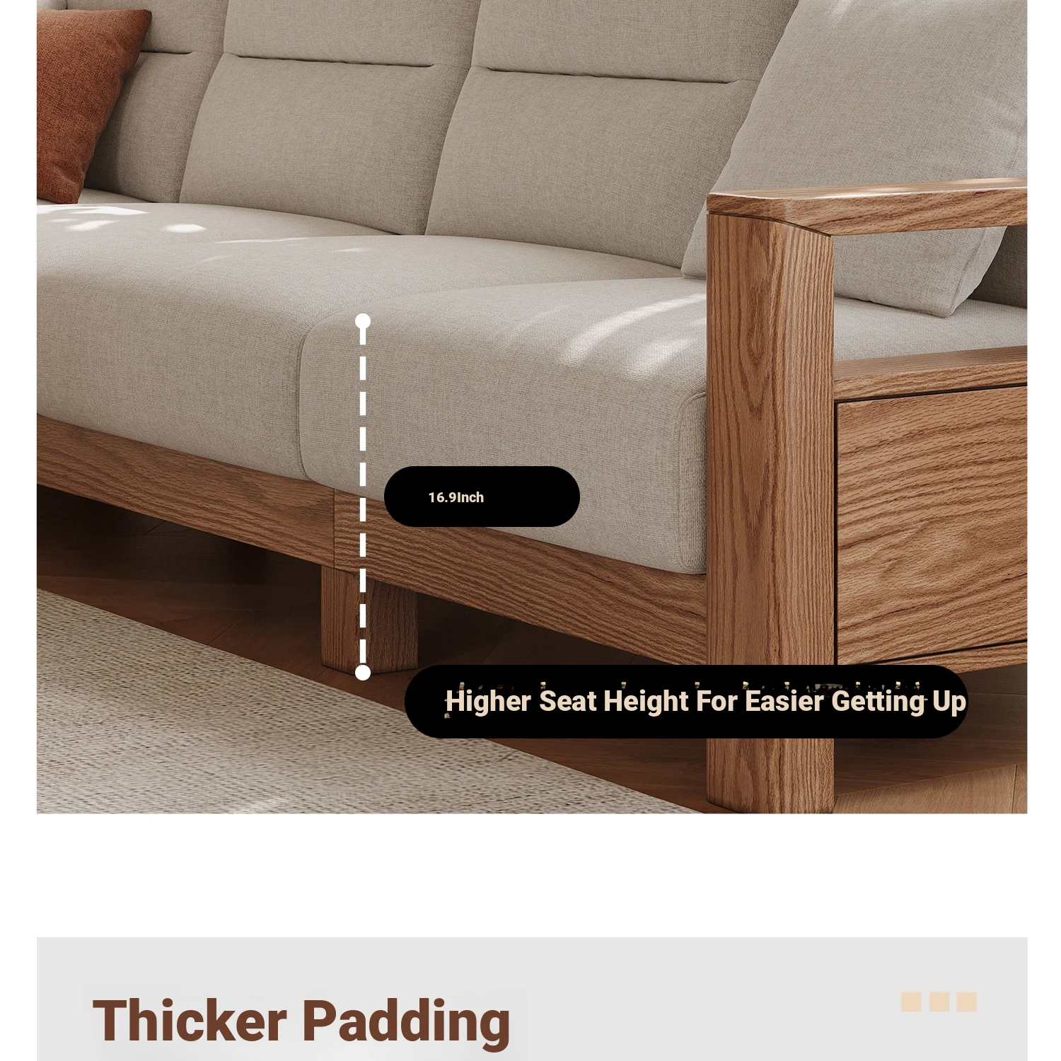 Solid Wood Sofa - New Chinese Style Ash Wood Fabric Sofa for Modern Minimalist Nordic Large Living Room - Natural Wood Furniture