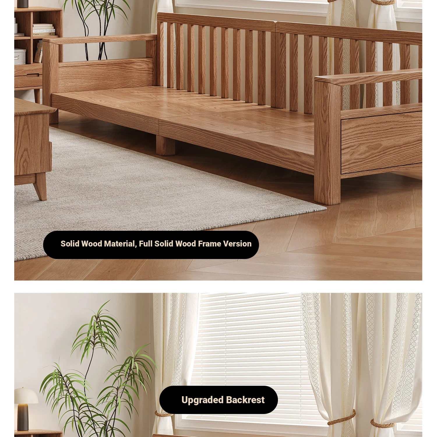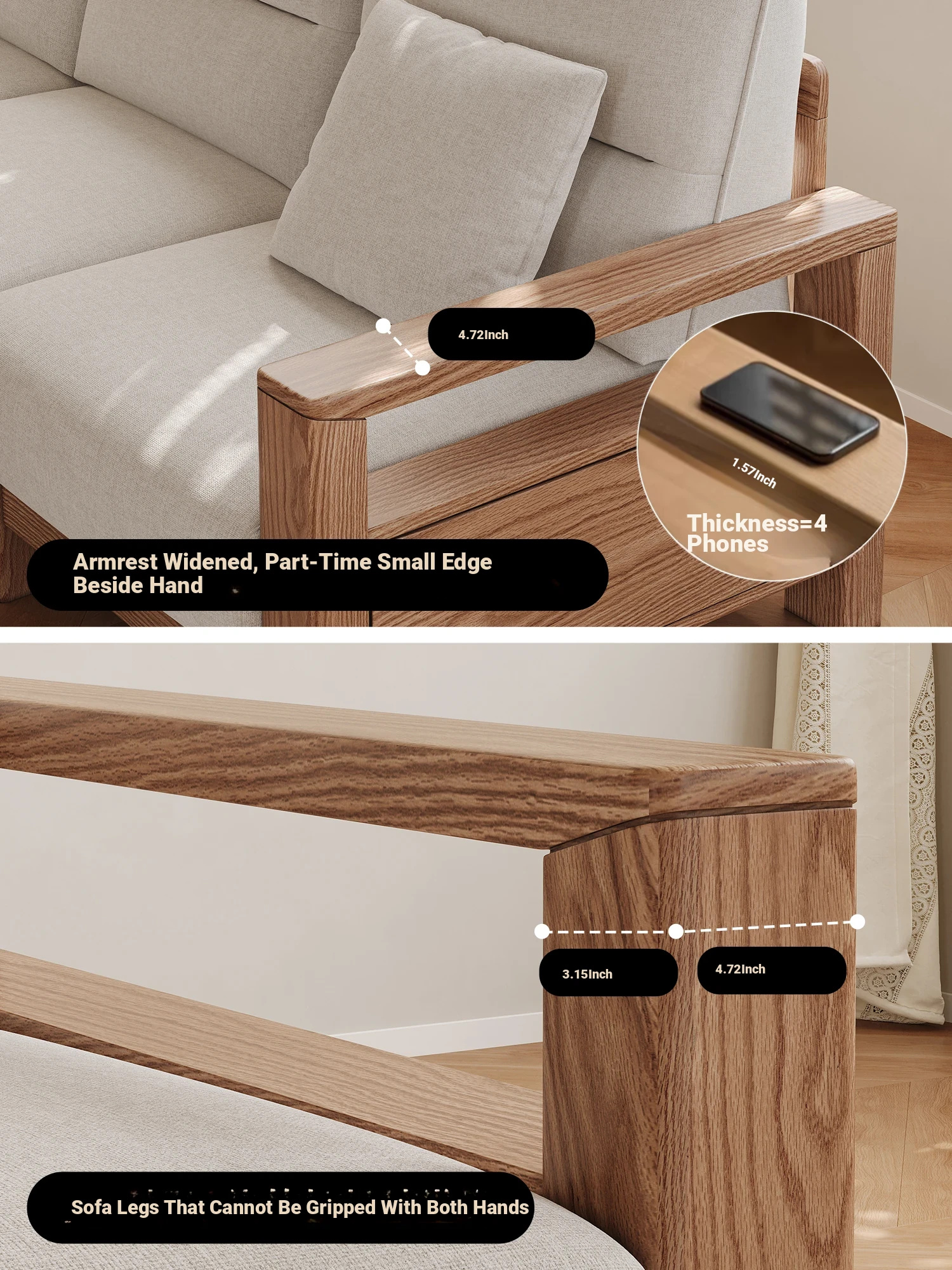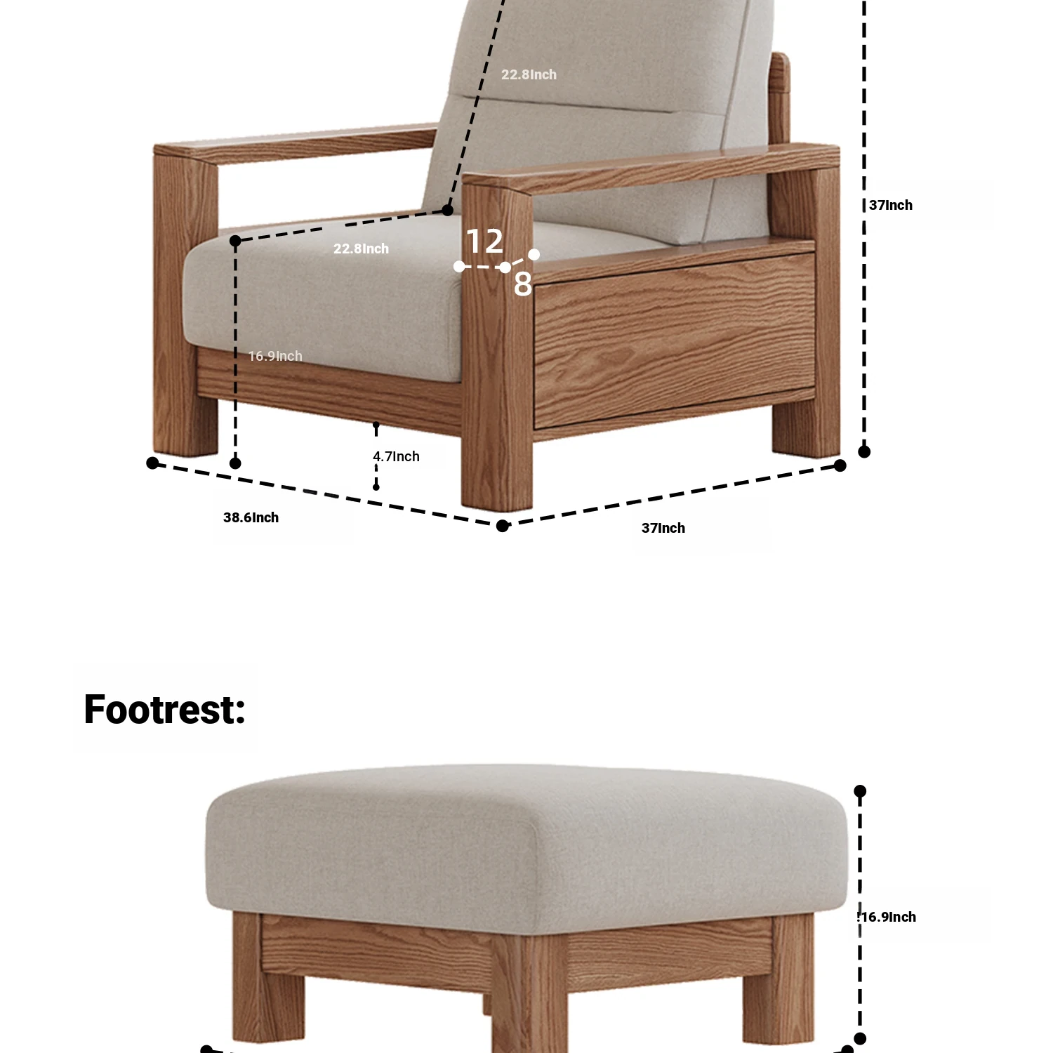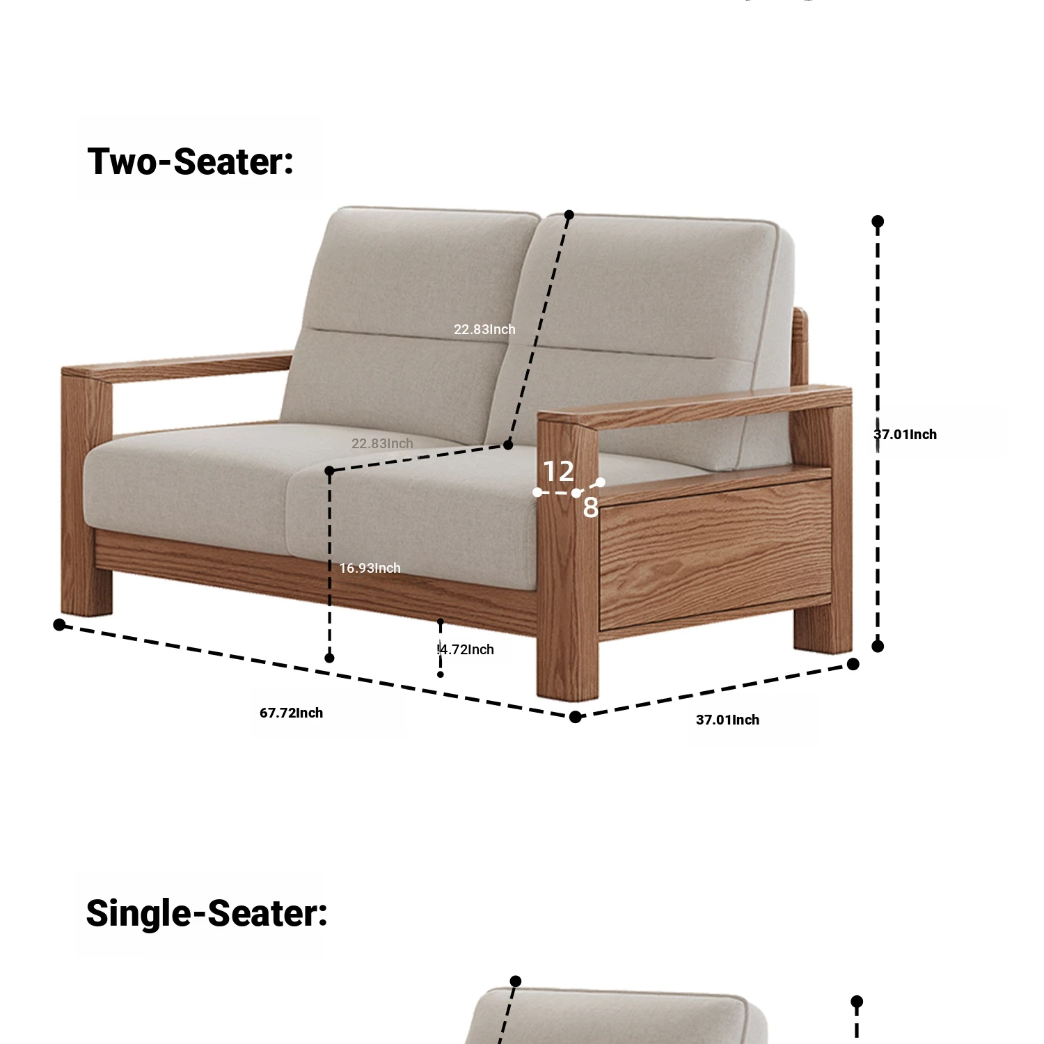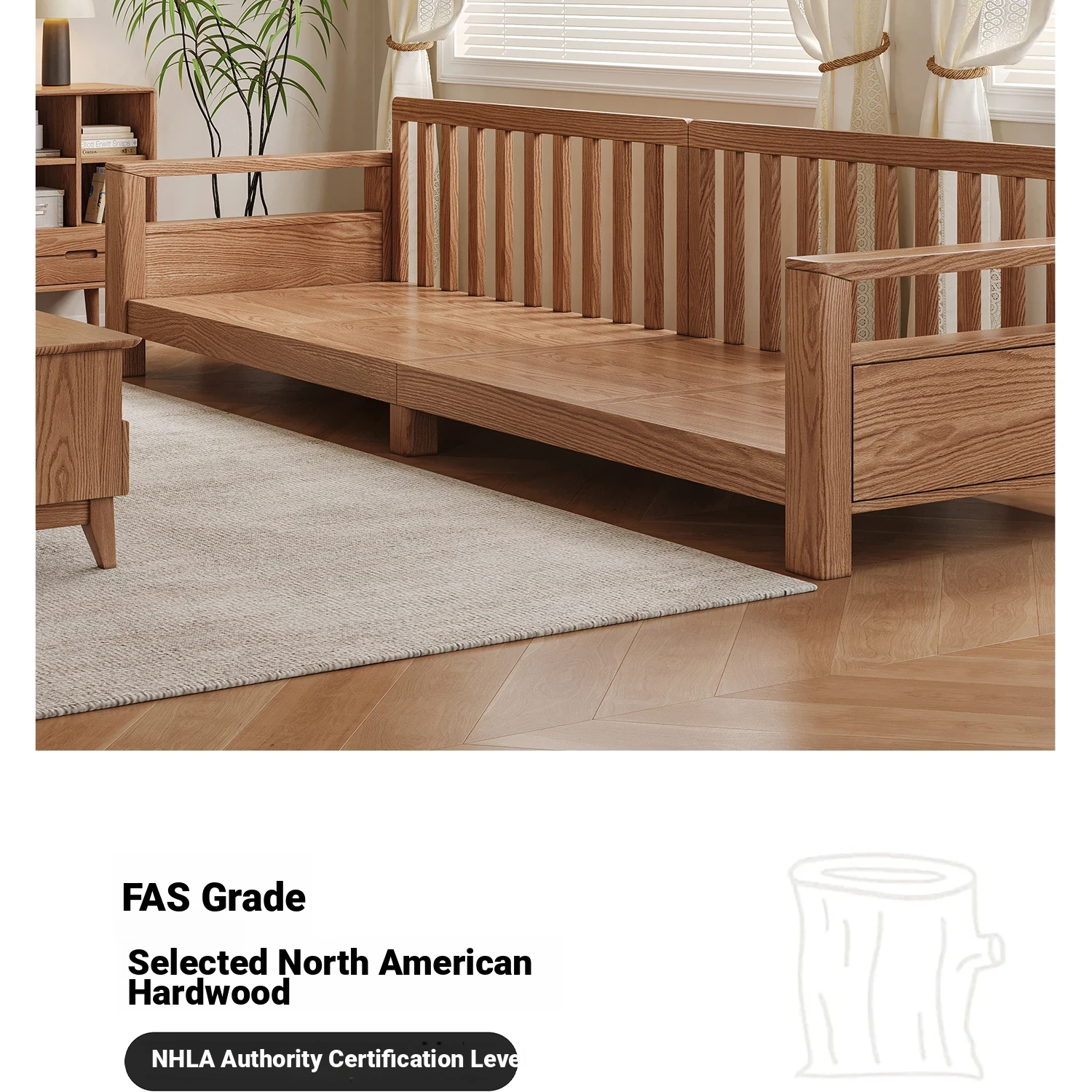 Solid Wood Sofa - New Chinese Style Ash Wood Fabric Sofa for Modern Minimalist Nordic Large Living Room - Natural Wood Furniture