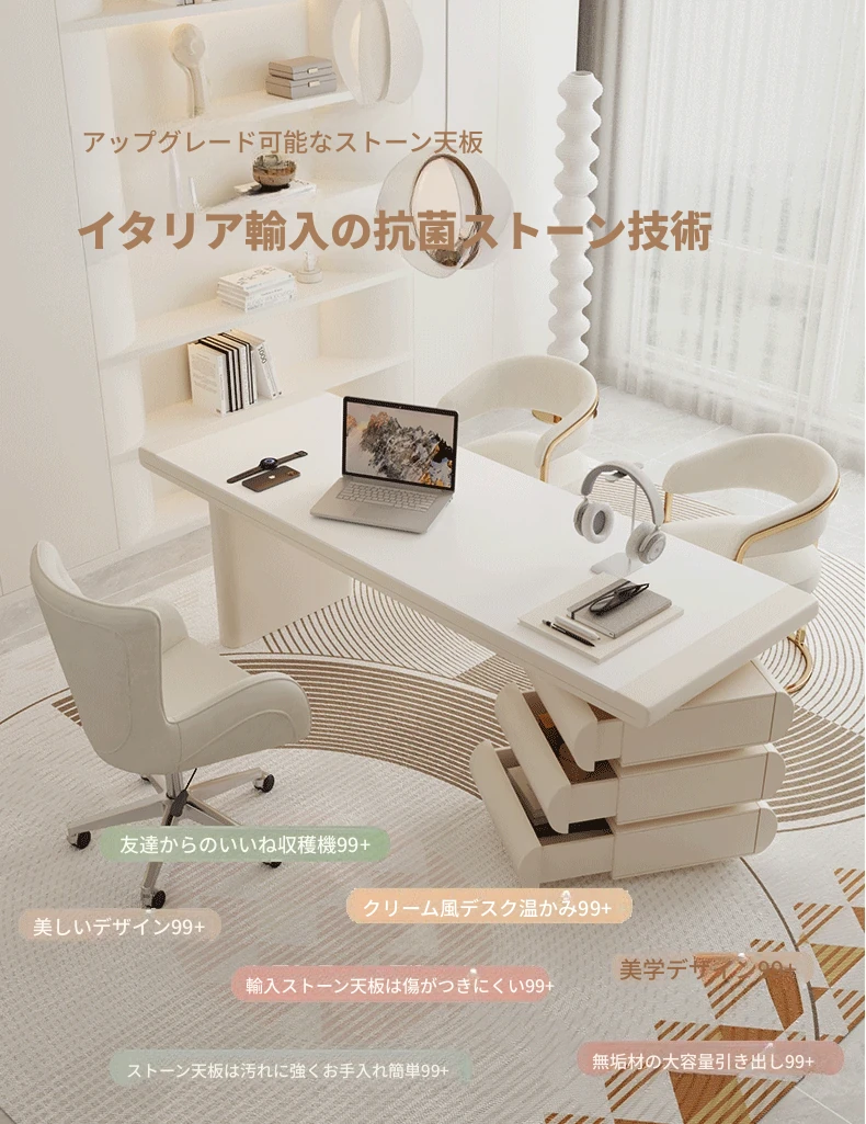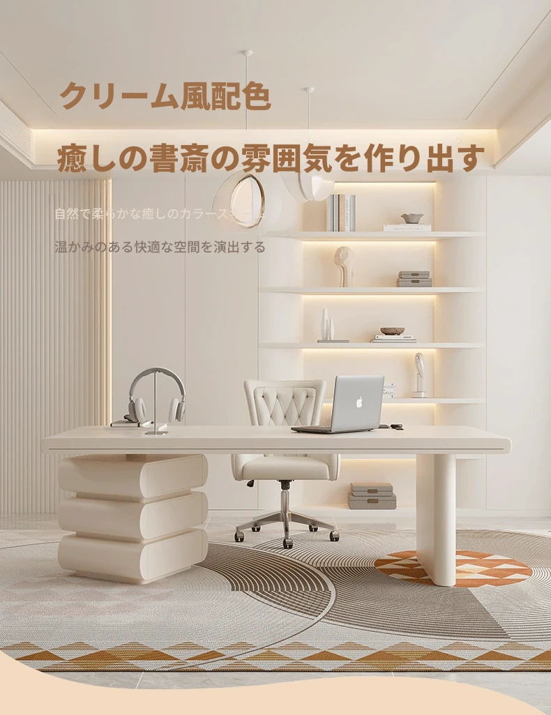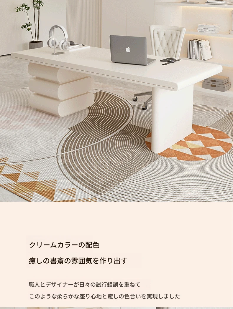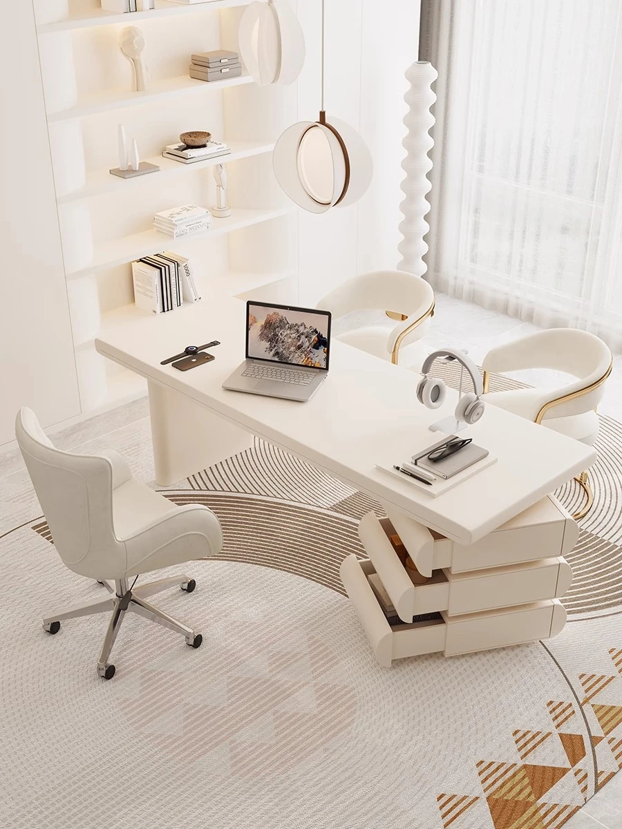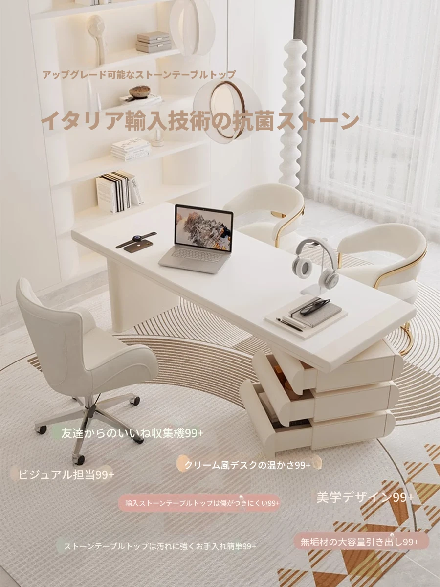 フランス風クリームホワイトデスク 大人向け 家庭用 引き出し付き 高級感溢れる シンプルな一字型ワークテーブル セット商品