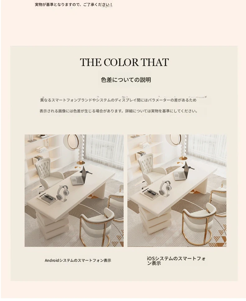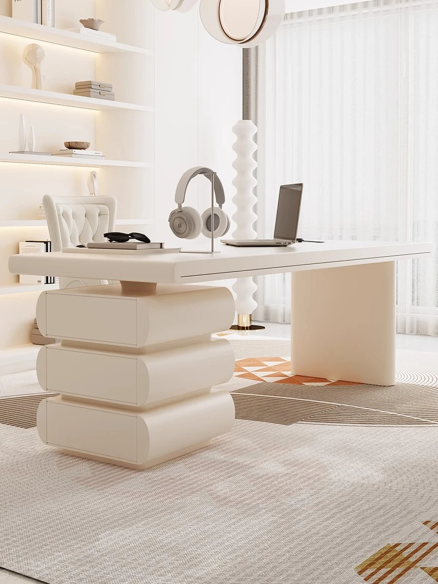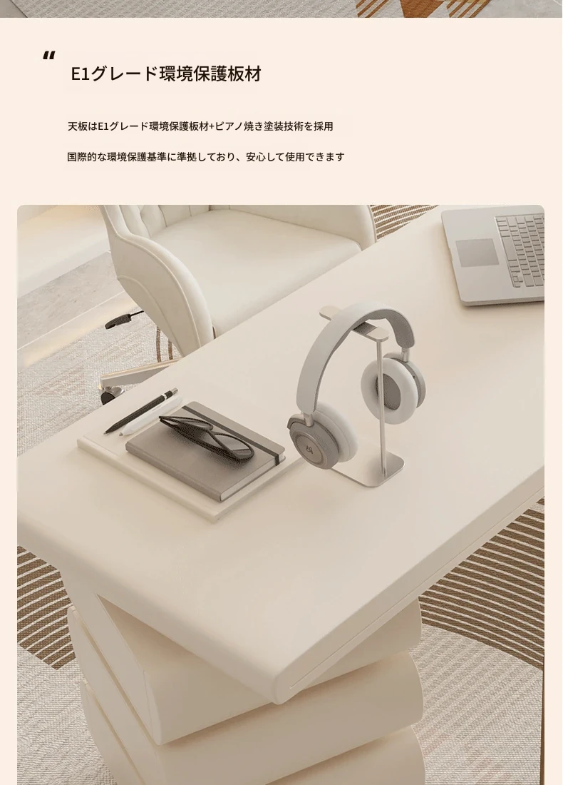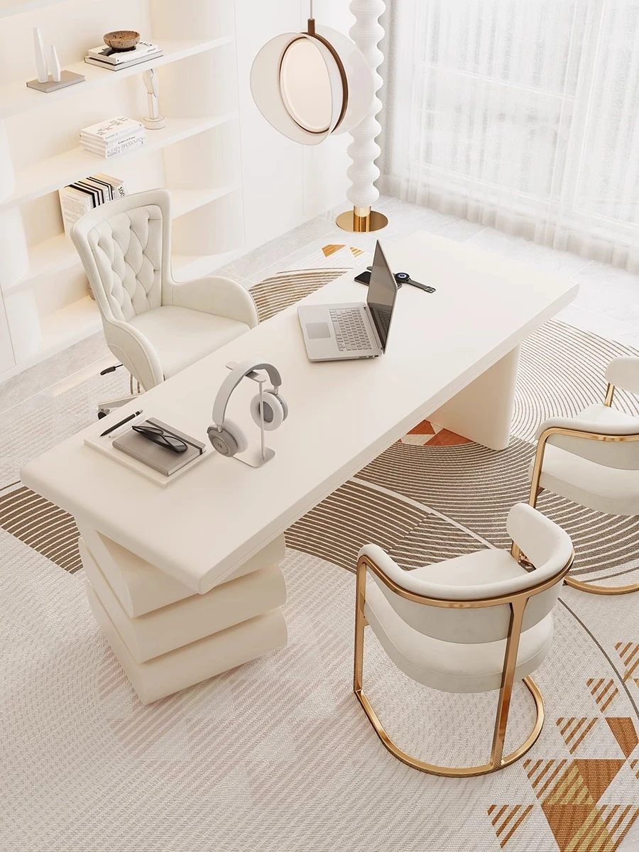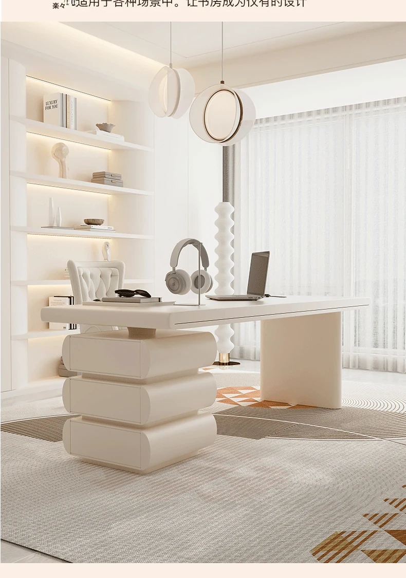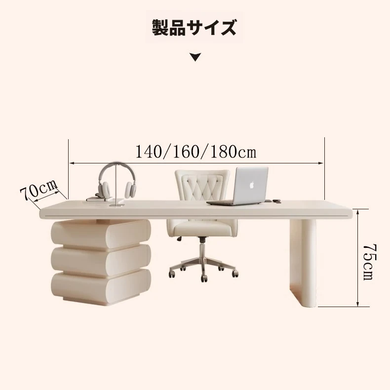フランス風クリームホワイトデスク 大人向け 家庭用 引き出し付き 高級感溢れる シンプルな一字型ワークテーブル セット商品