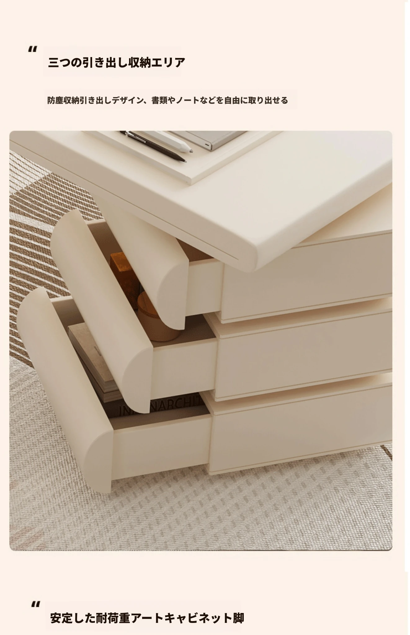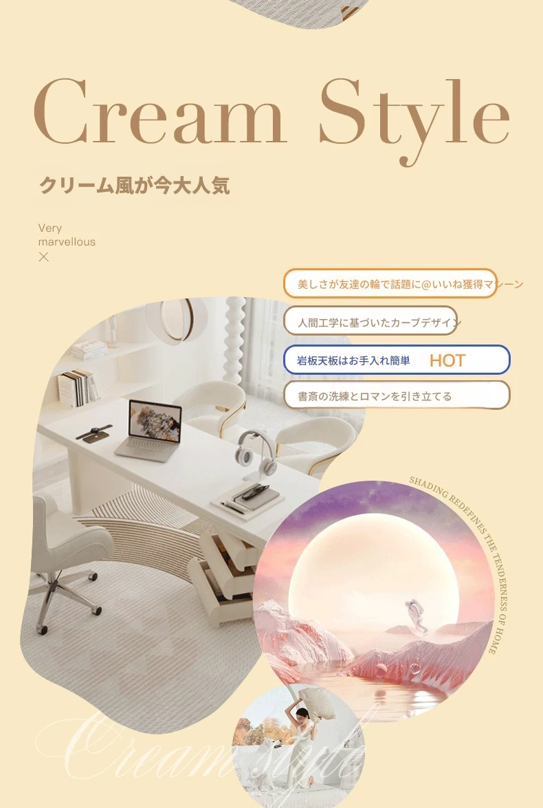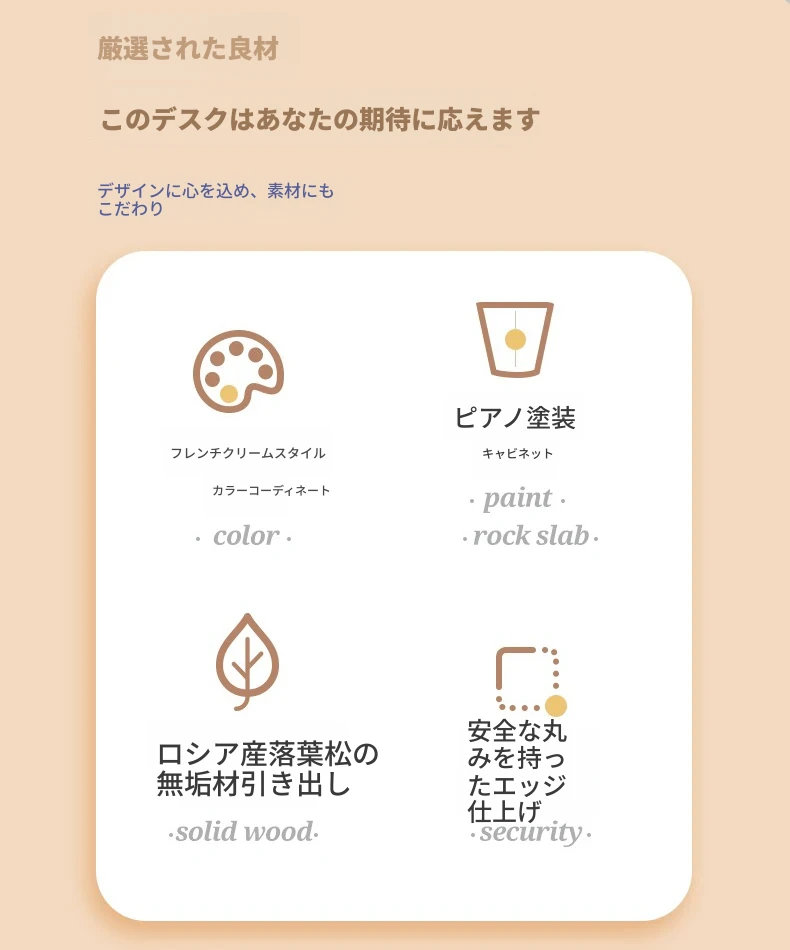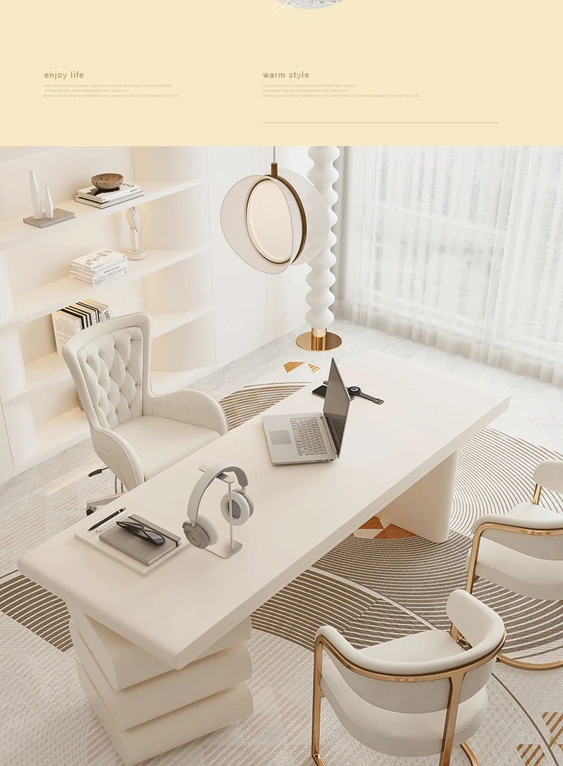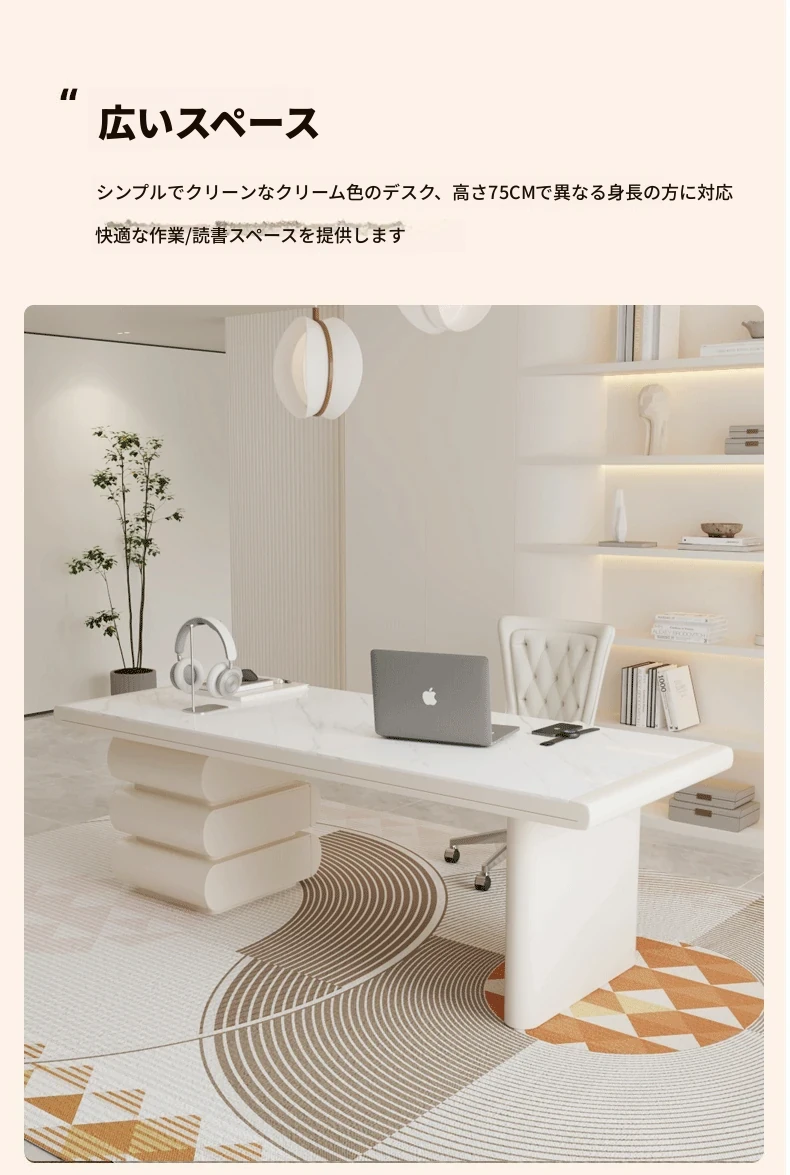 フランス風クリームホワイトデスク 大人向け 家庭用 引き出し付き 高級感溢れる シンプルな一字型ワークテーブル セット商品