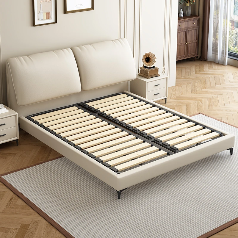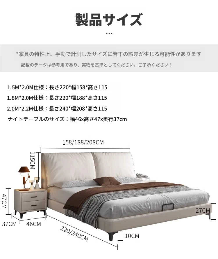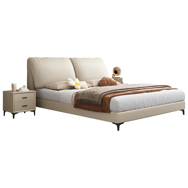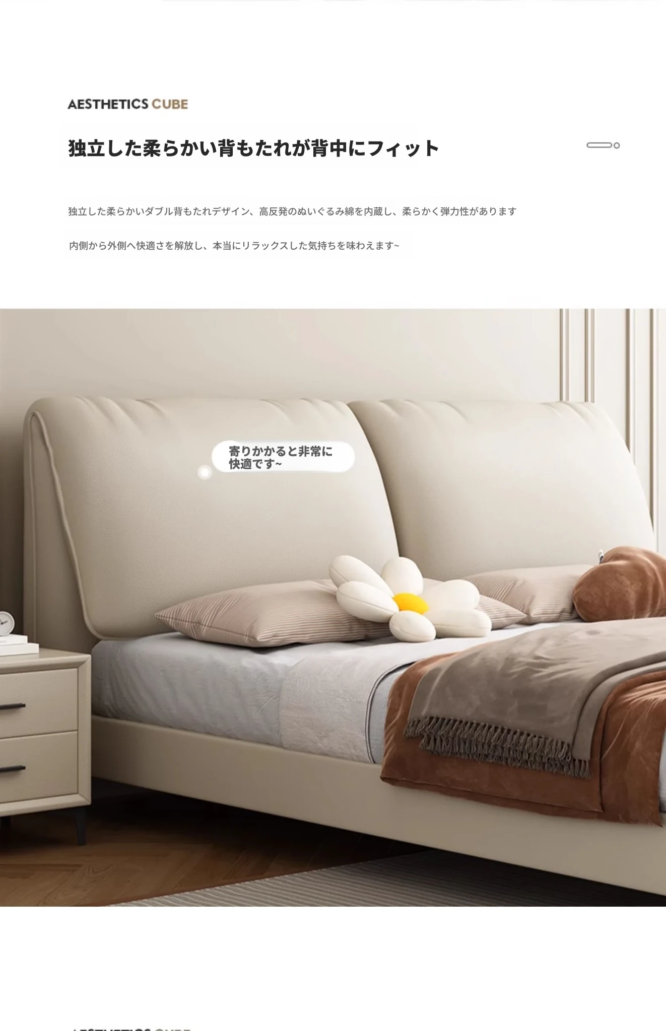 全実木製イタリアンミニマリスト大象耳デザインベッド - 主寝室用180cmダブルベッド!互いに干渉しない快適な眠りを提供するクリーミーな布製ベッド。おしゃれで機能的な空間を演出!