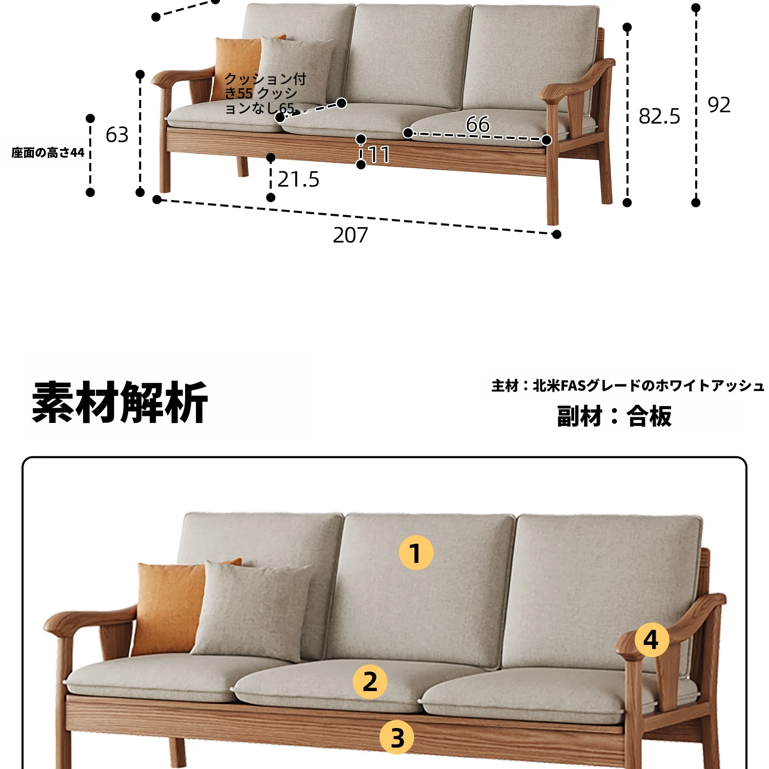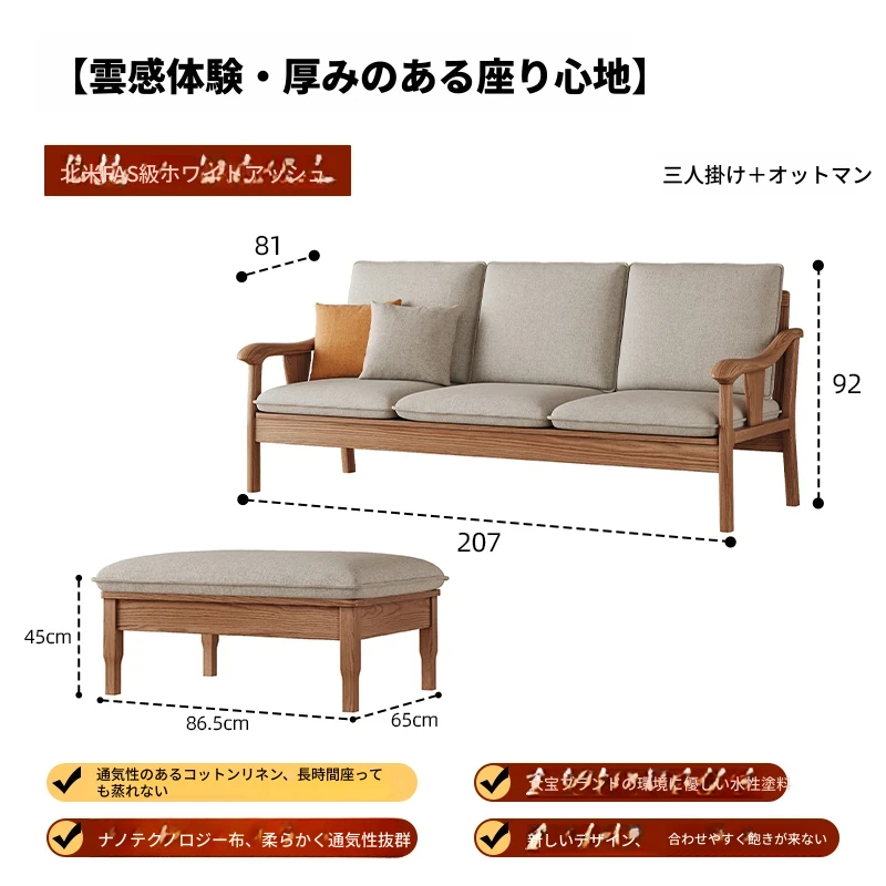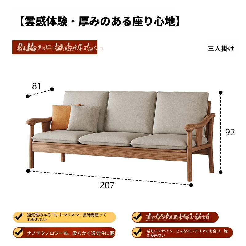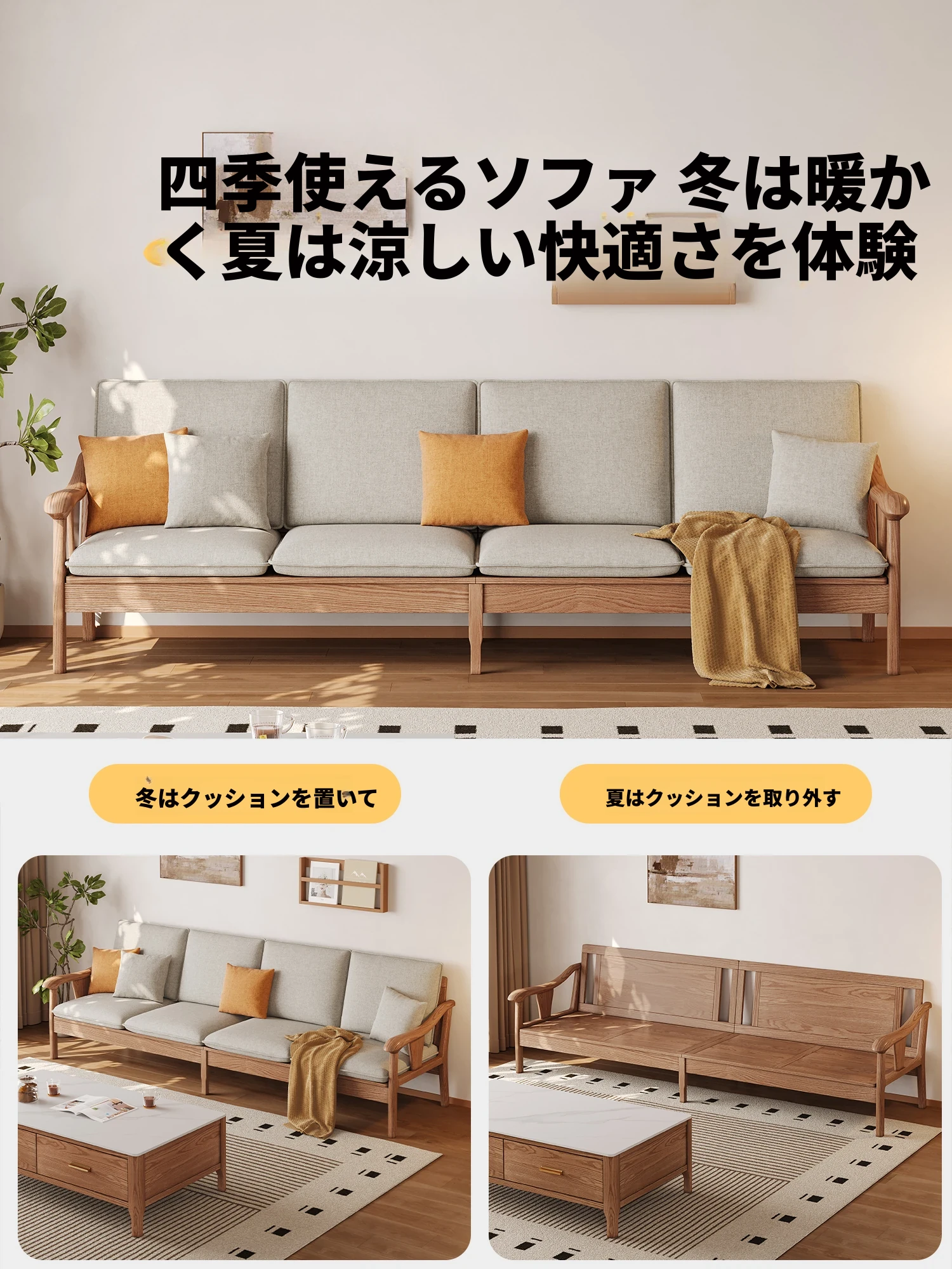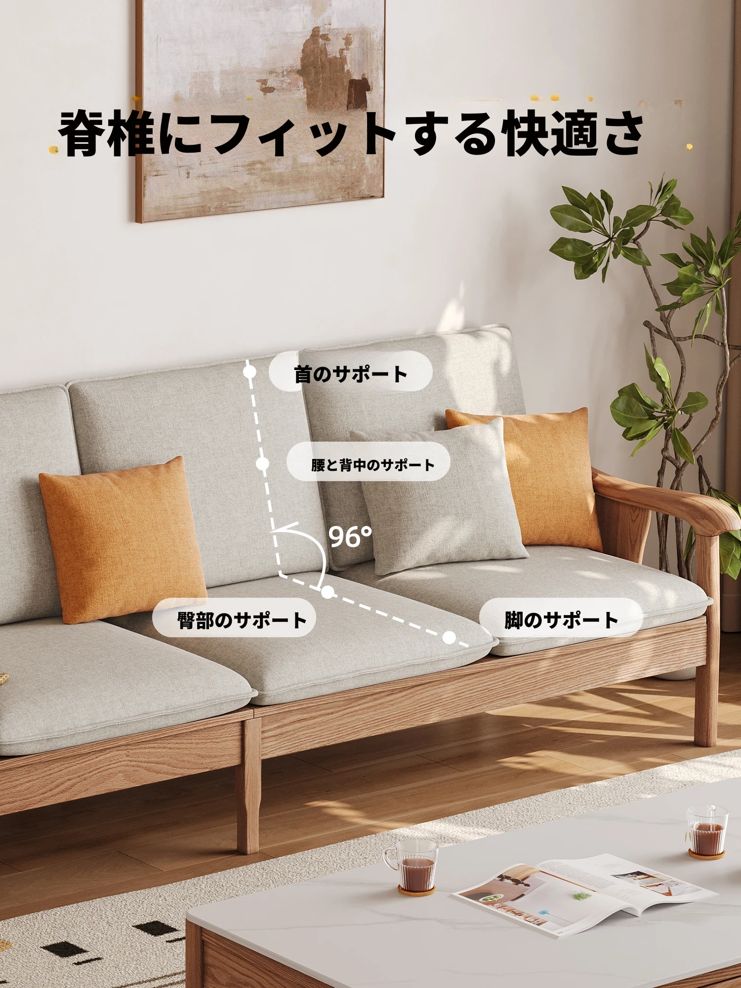進化した北欧スタイルの軽やかで贅沢なストレートソファ。シンプルでモダン、小さな空間にピッタリ!冬も夏も快適に使える新中式デザインの高品質無垢材ソファ。あなたのリビングをスタイリッシュに変身させます!
