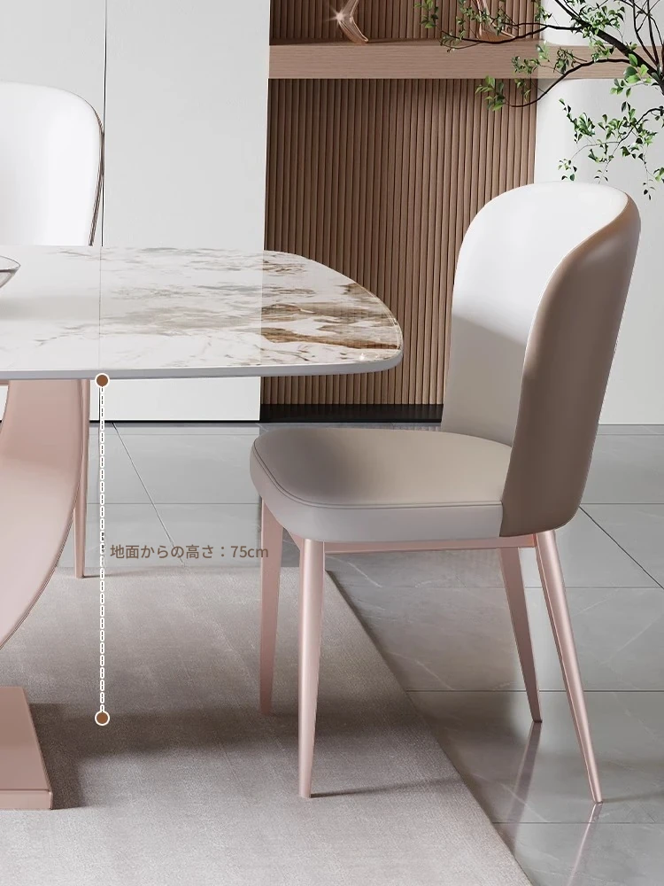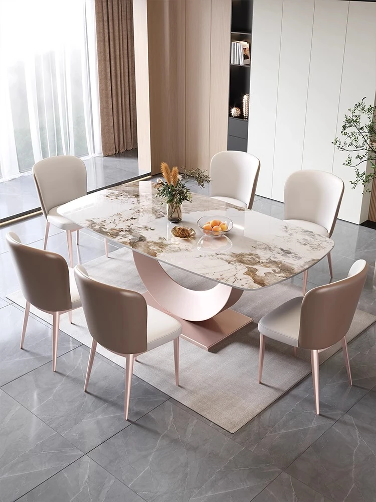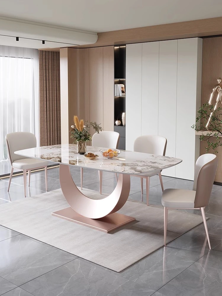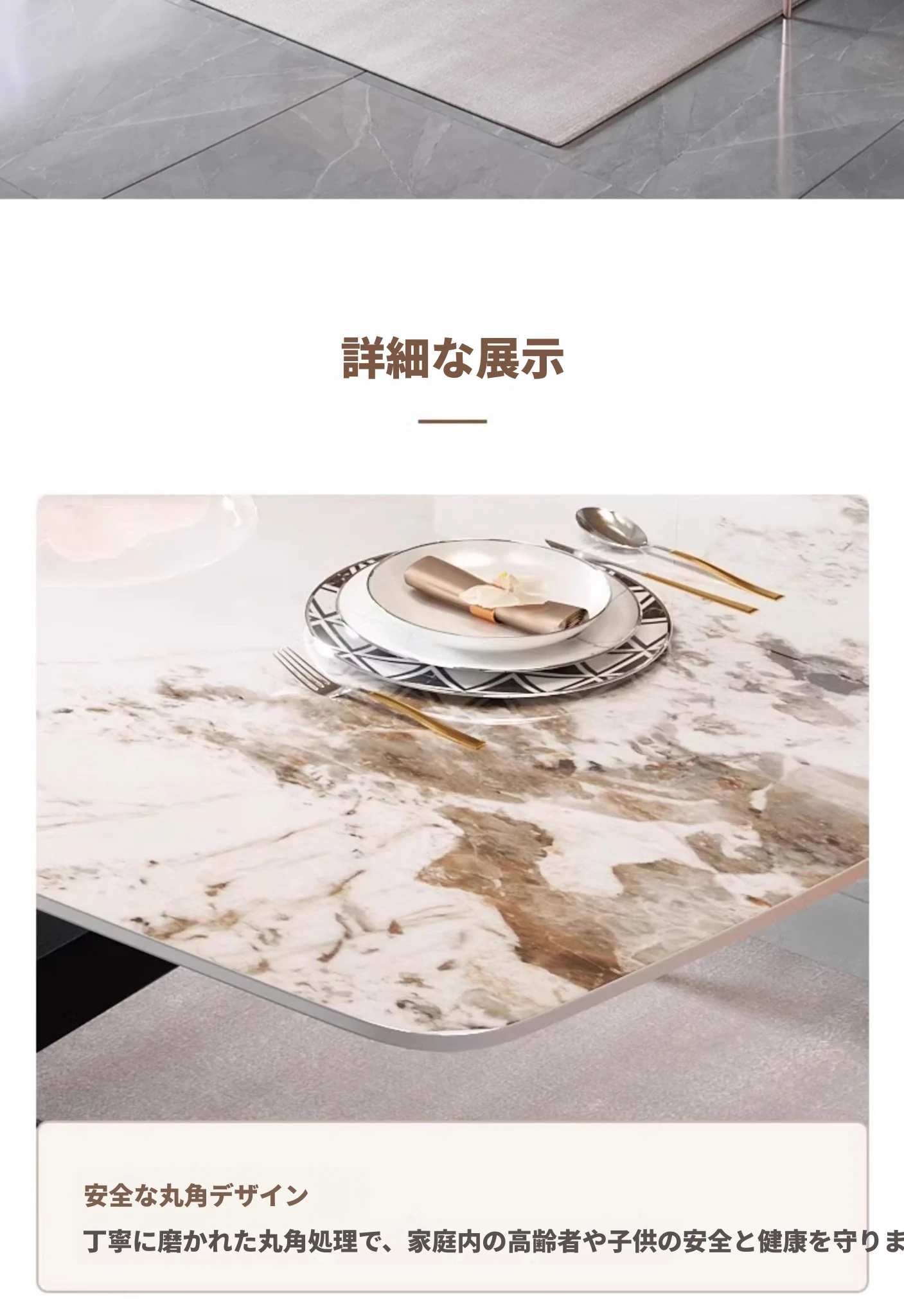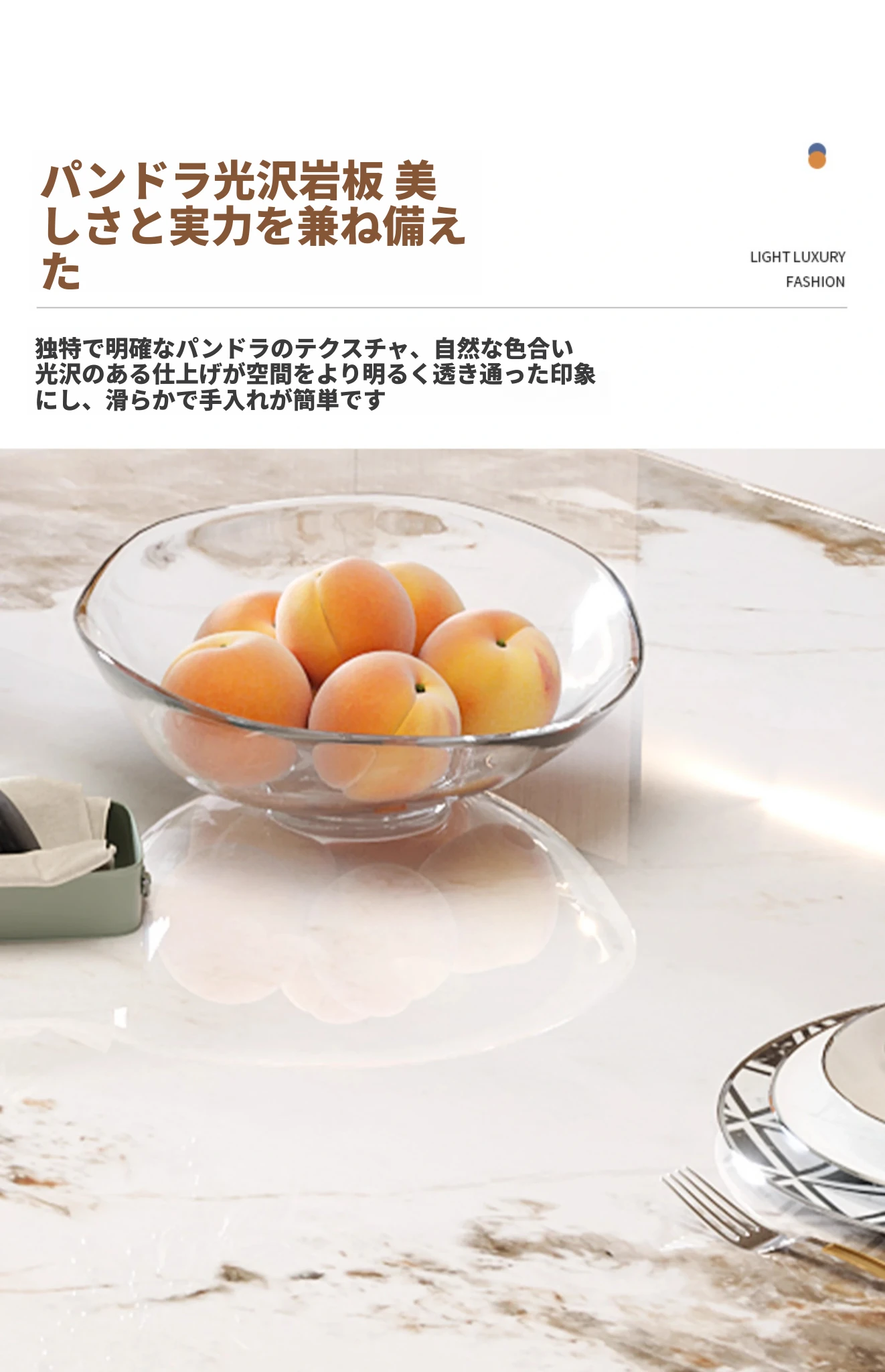 イタリアンライトラグジュアリー 光沢仕上げのロックボードダイニングテーブル&チェアセット - モダンでシンプル、小さな家にもぴったりなリビング用西洋スタイルの食卓。快適な食事体験をお楽しみください!