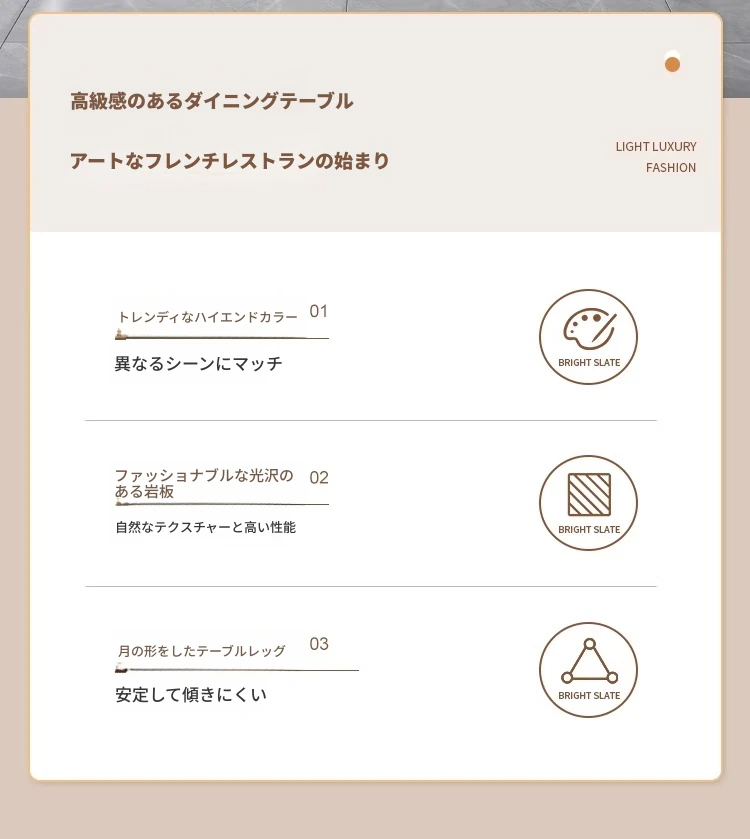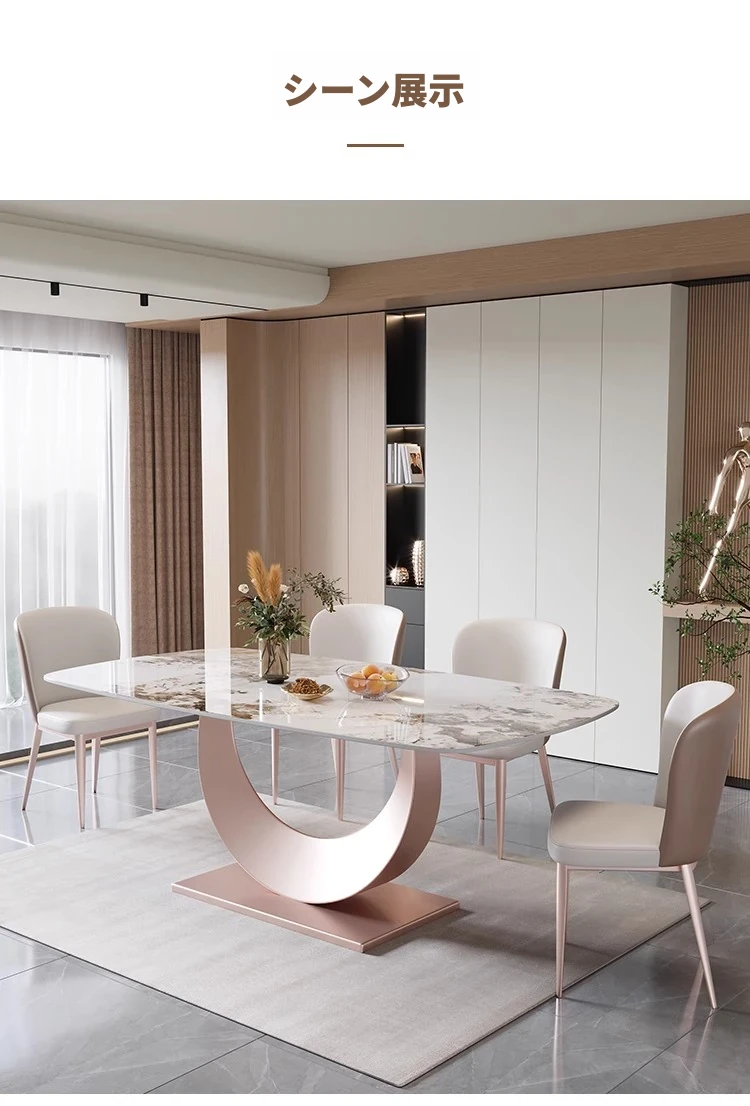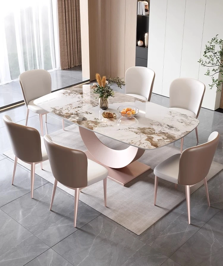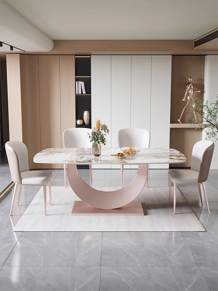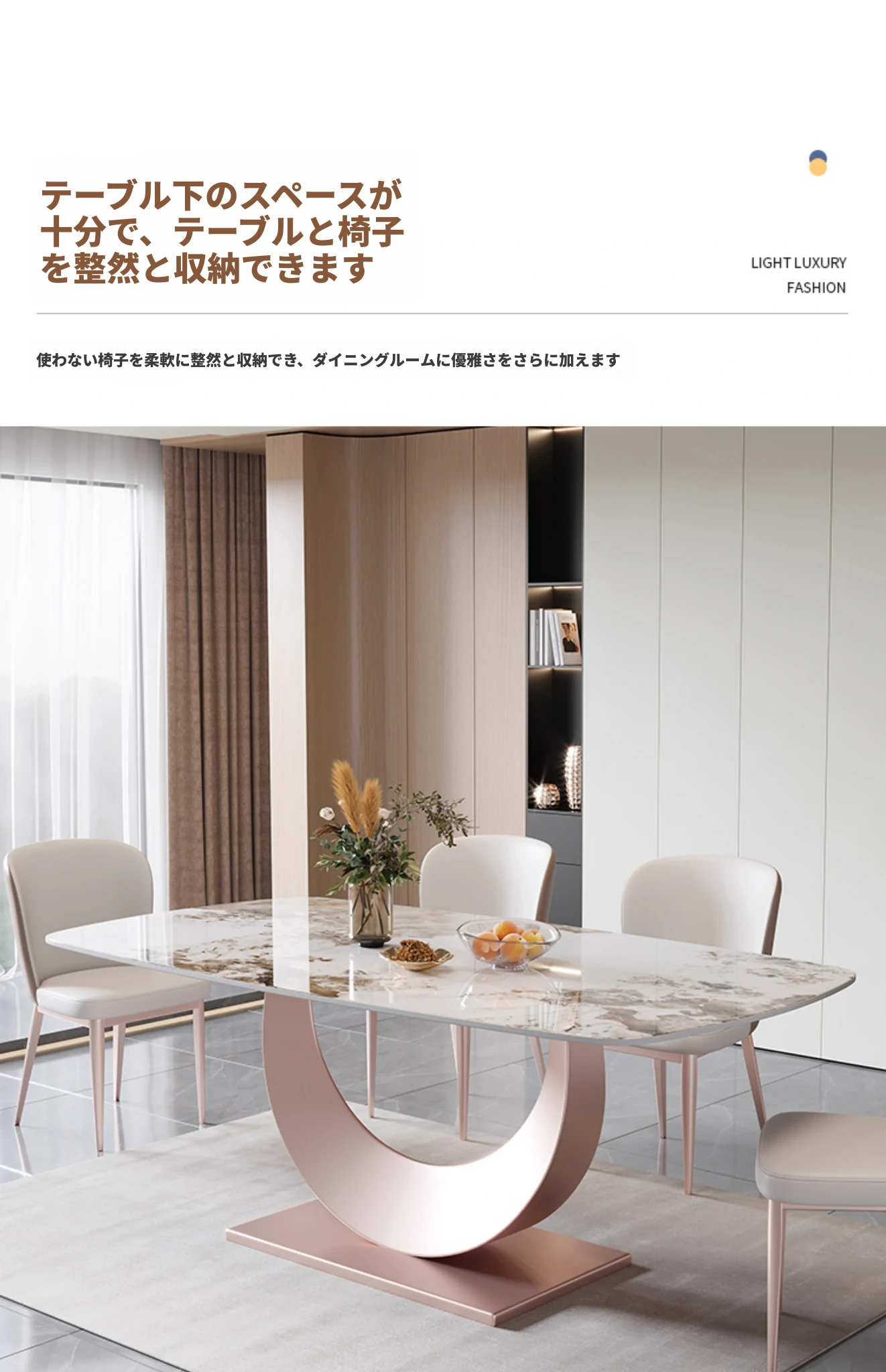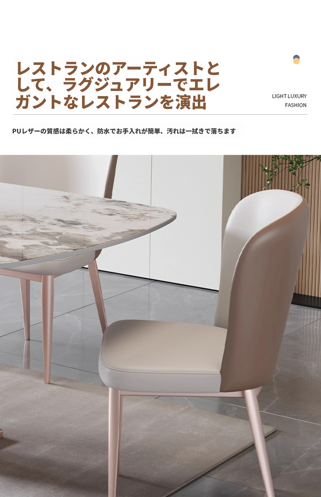 イタリアンライトラグジュアリー 光沢仕上げのロックボードダイニングテーブル&チェアセット - モダンでシンプル、小さな家にもぴったりなリビング用西洋スタイルの食卓。快適な食事体験をお楽しみください!