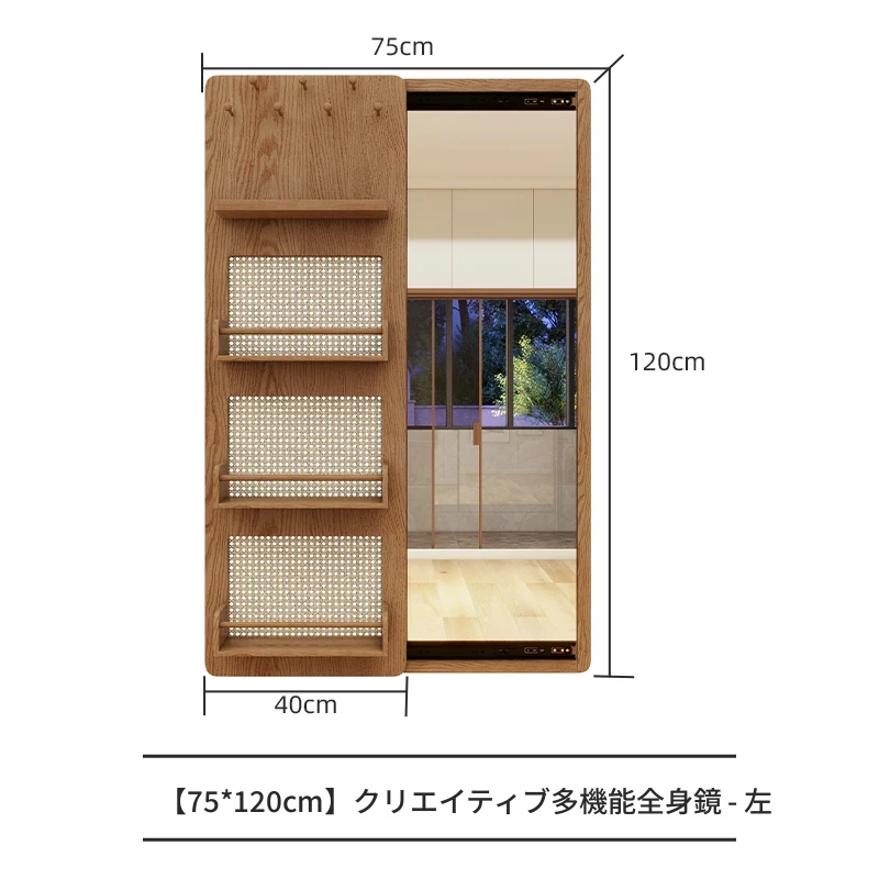 【75*120 cm】クリエイティブ マルチファンクション 全身鏡 - 左