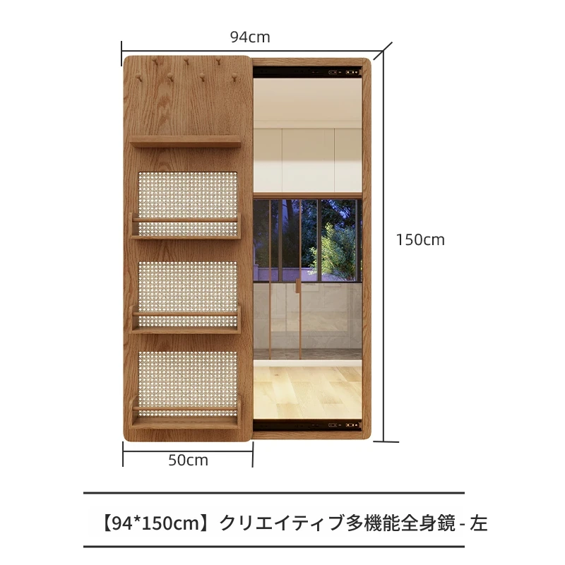 【94*150 cm】クリエイティブ マルチファンクション 全身鏡 (左スライド)