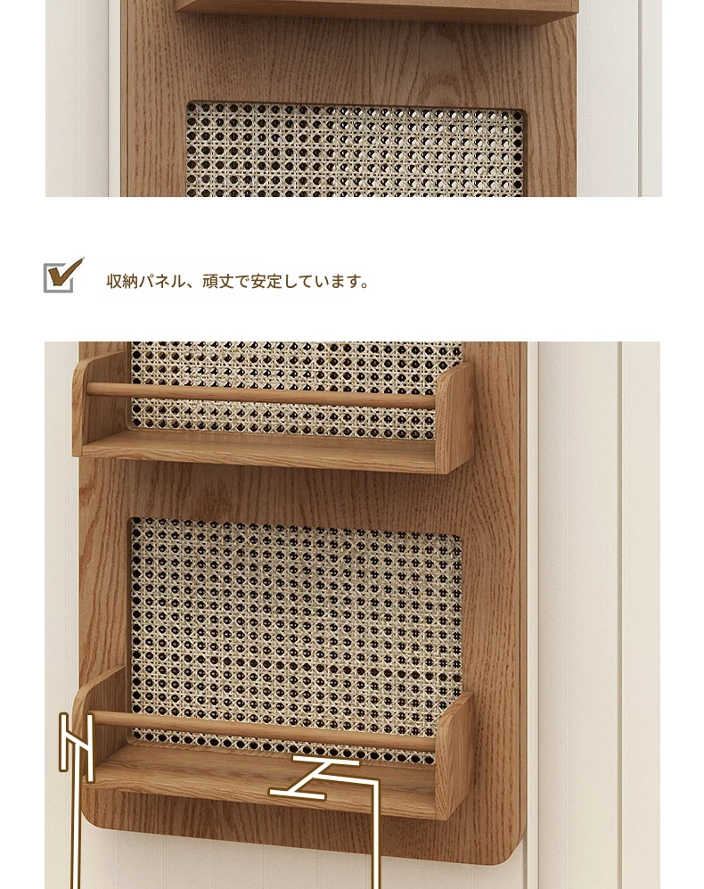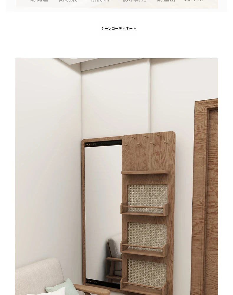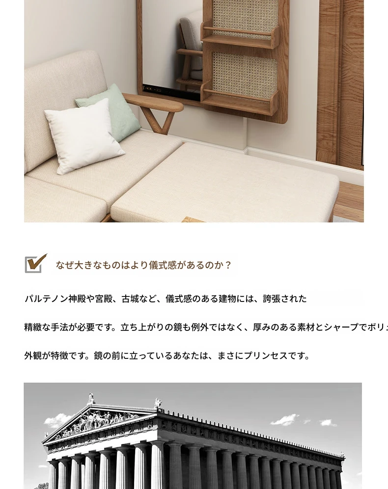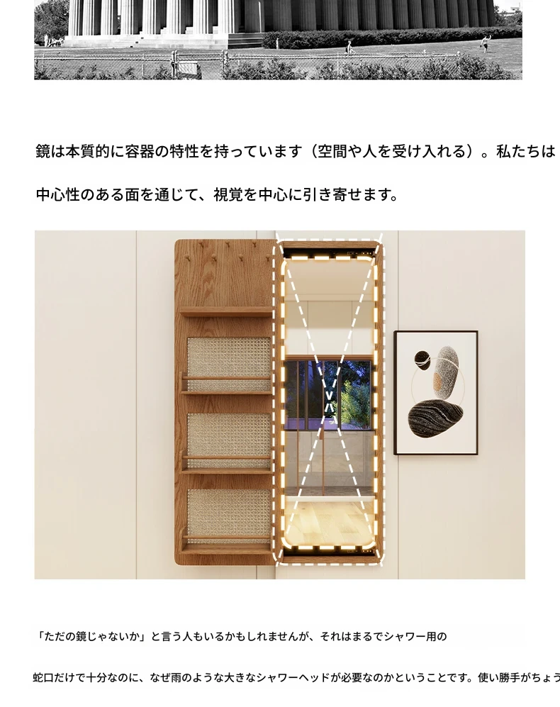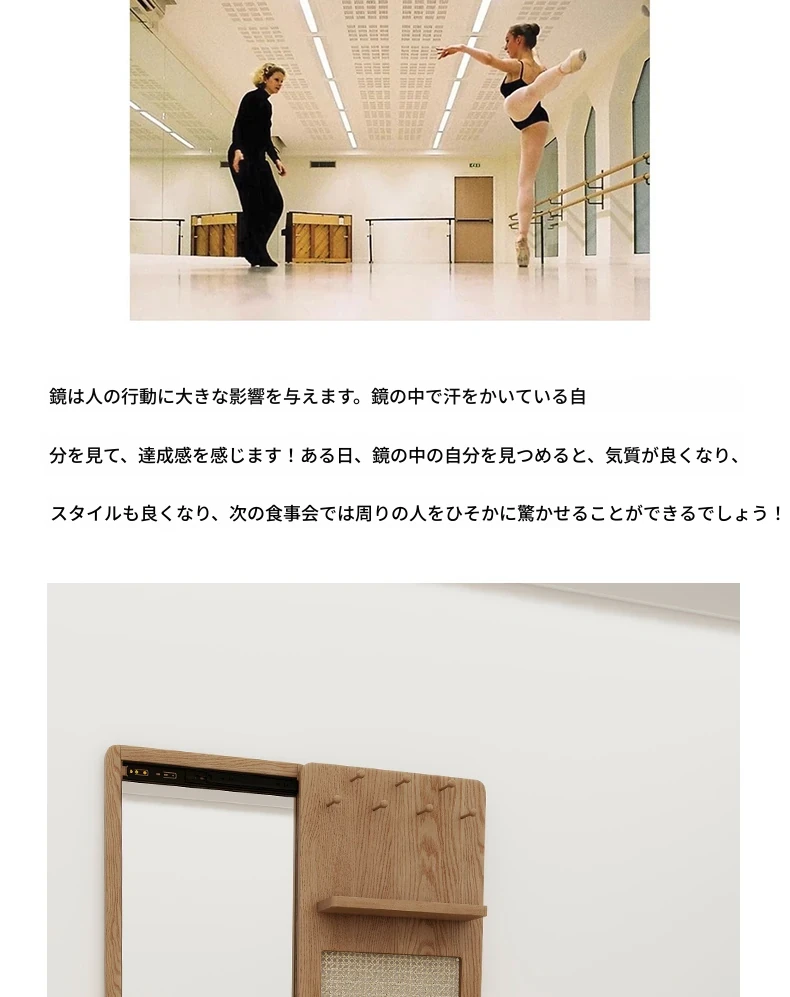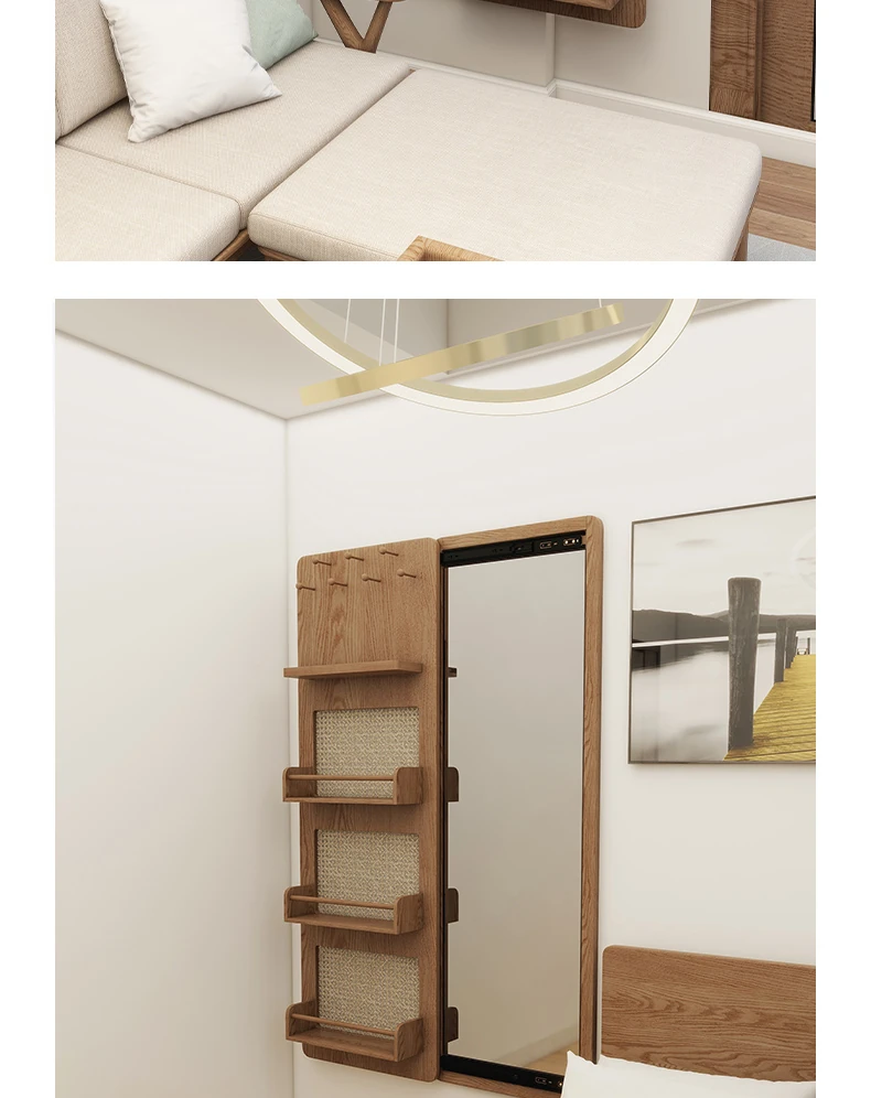 実木製のスライド式隠し全身鏡 - モダンでシンプルな日本風デザイン、寝室にぴったりな多機能壁掛けミラー!おしゃれな収納スペースで、空間を有効活用しながらスタイルアップを実現。