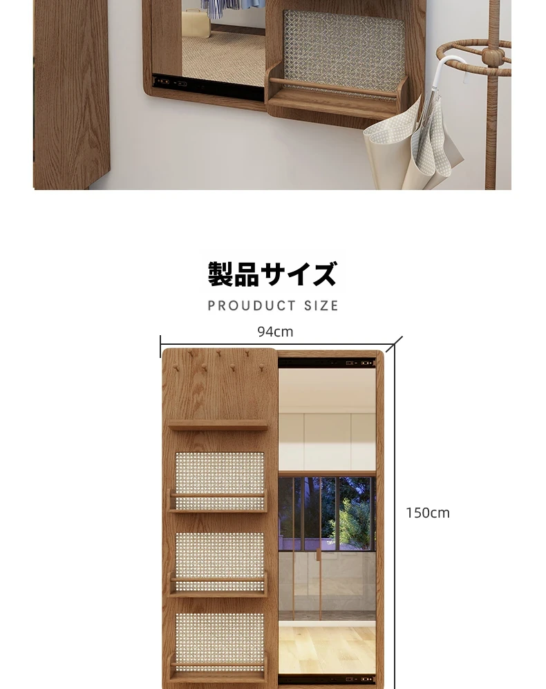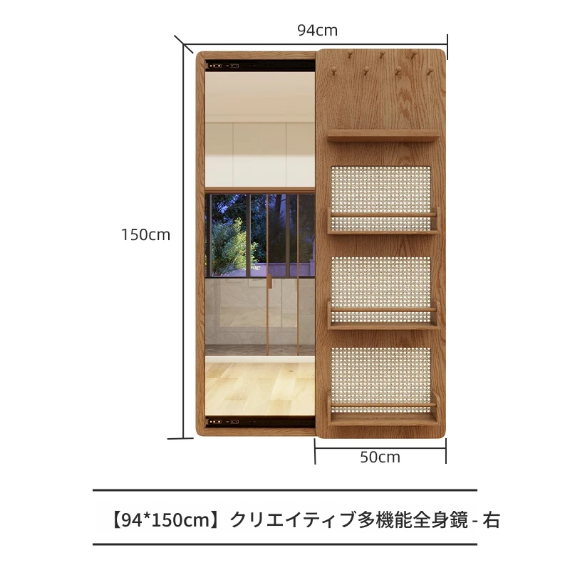 【94*150 cm】クリエイティブ マルチファンクション 全身鏡 (右スライド)