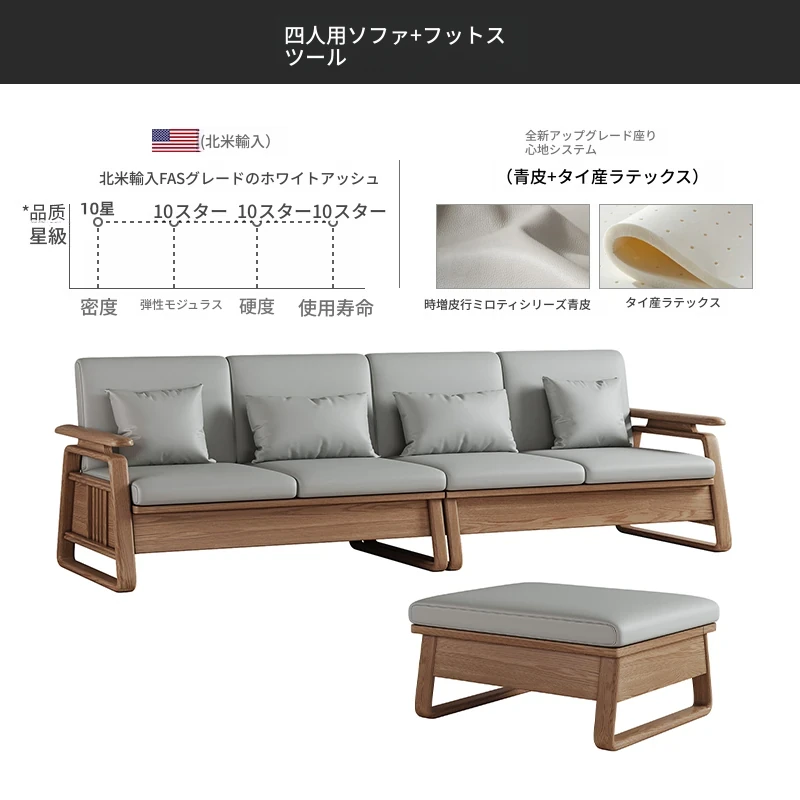 青皮+ラテックス|4人用ソファ+オットマン【時増皮行ミノ提シリーズ】