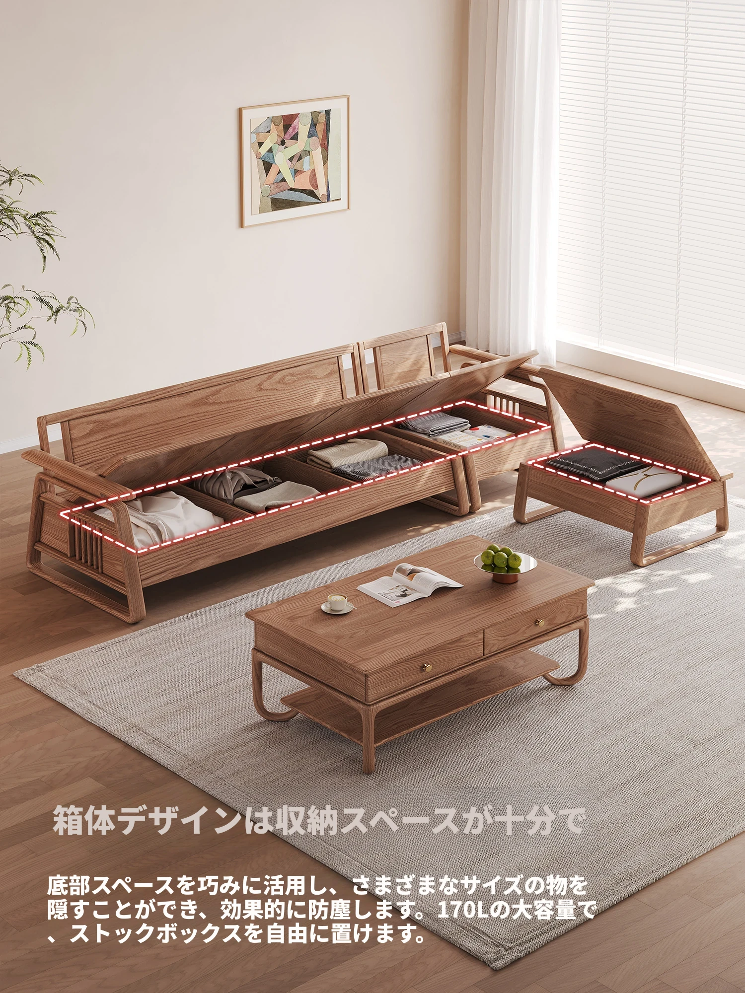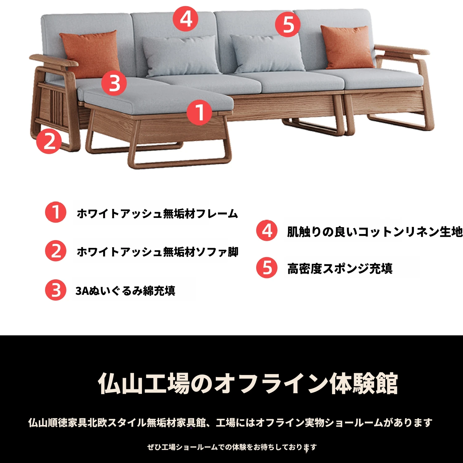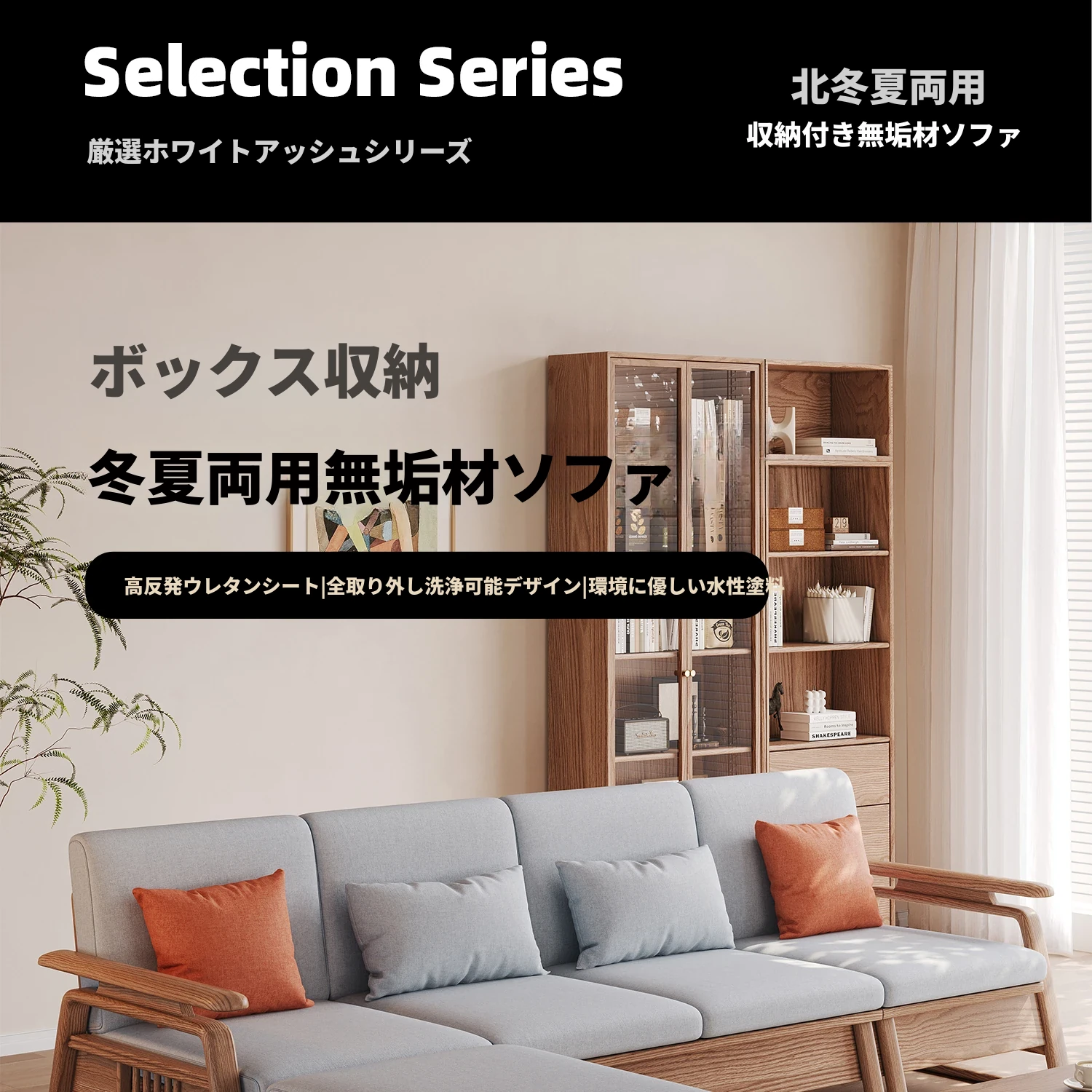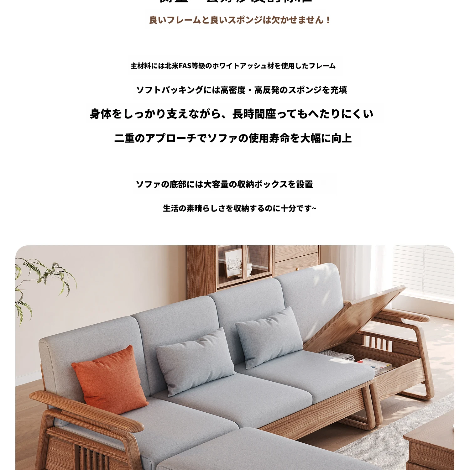 新中式スタイルのモダンでシンプルなホワイトアッシュ材の冬夏兼用コーナーソファ、収納付きで直立脚デザイン。スタイリッシュな空間を演出し、快適なリラックスタイムをお楽しみください!