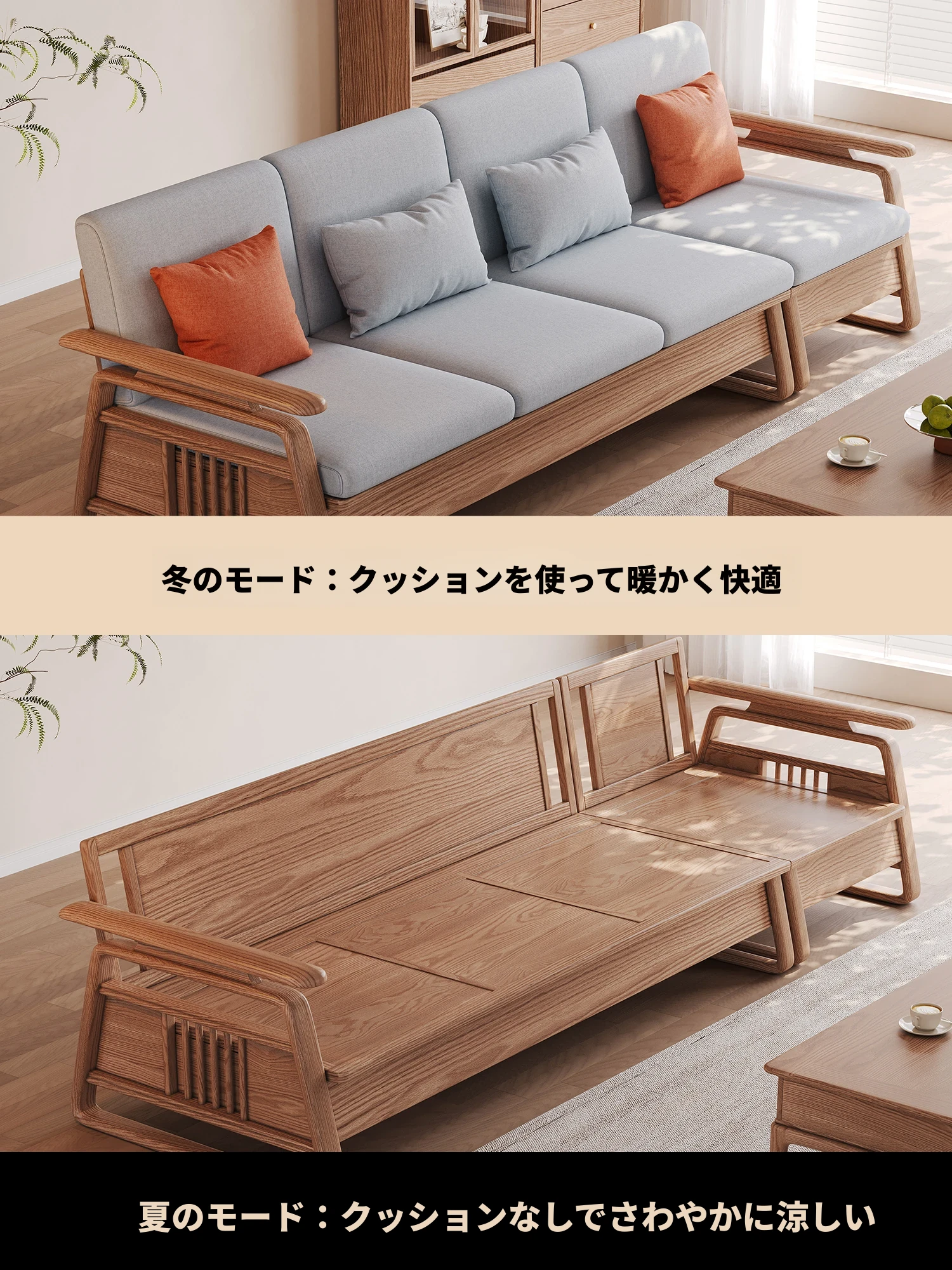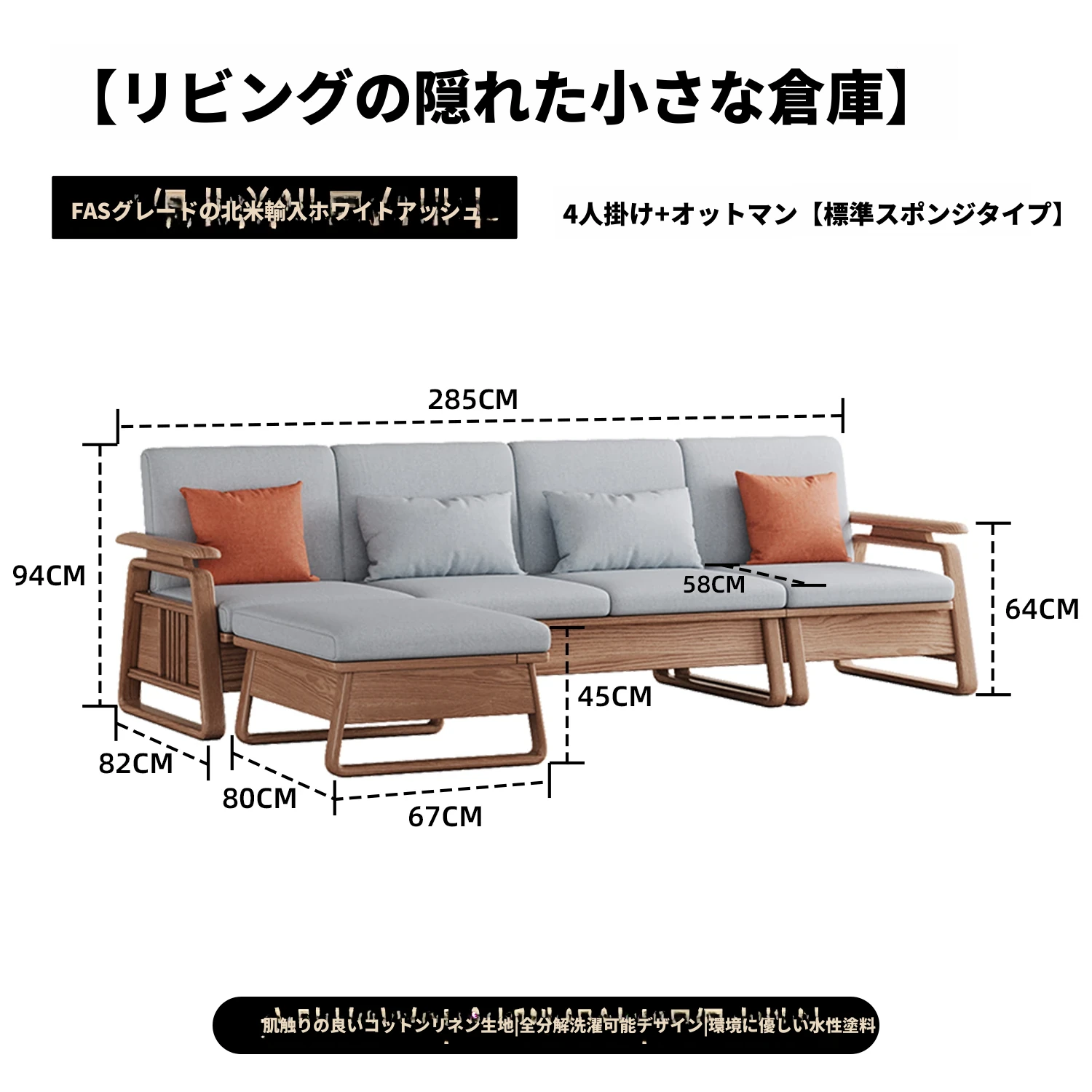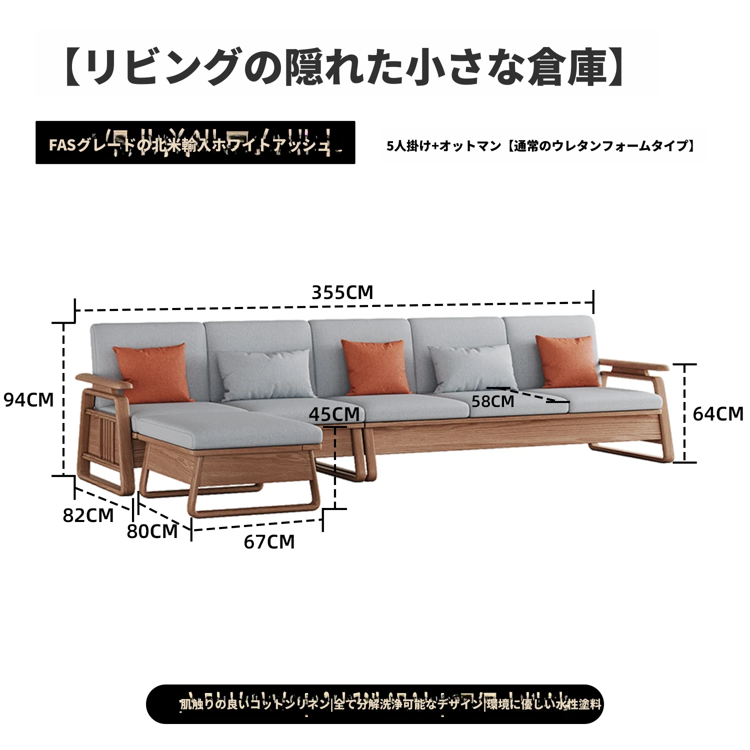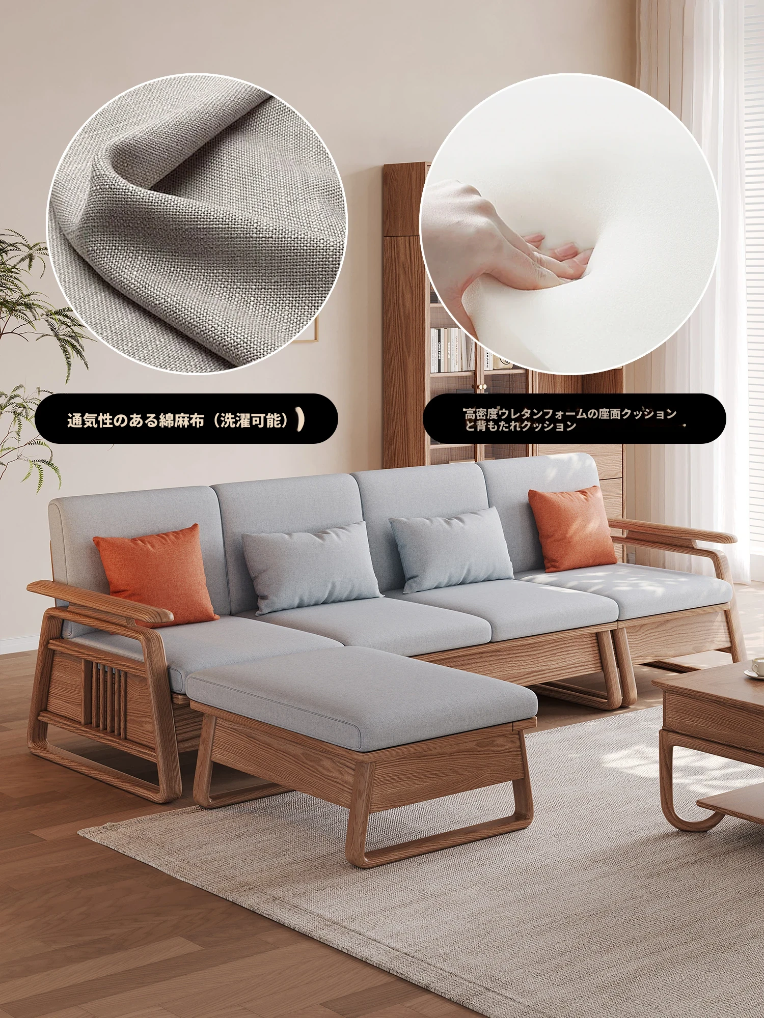 新中式スタイルのモダンでシンプルなホワイトアッシュ材の冬夏兼用コーナーソファ、収納付きで直立脚デザイン。スタイリッシュな空間を演出し、快適なリラックスタイムをお楽しみください!