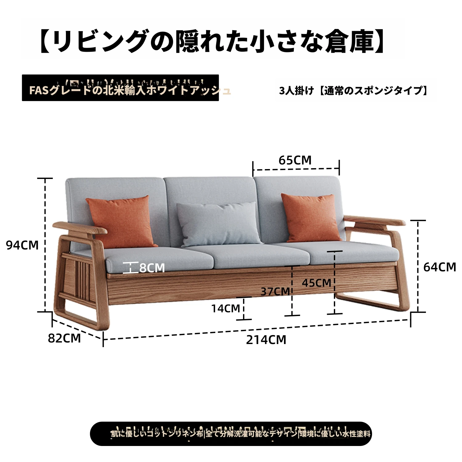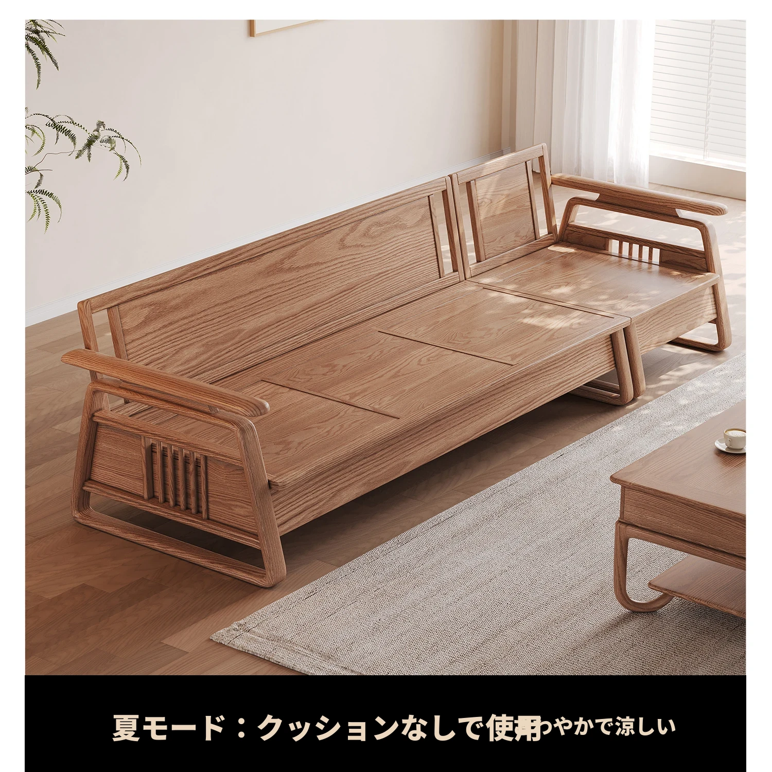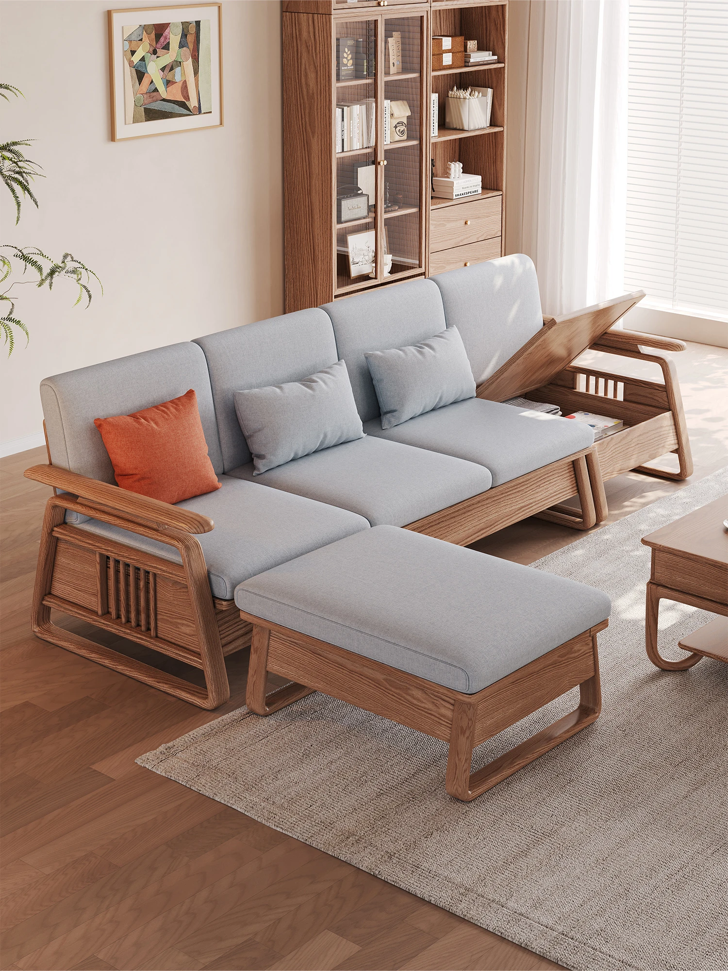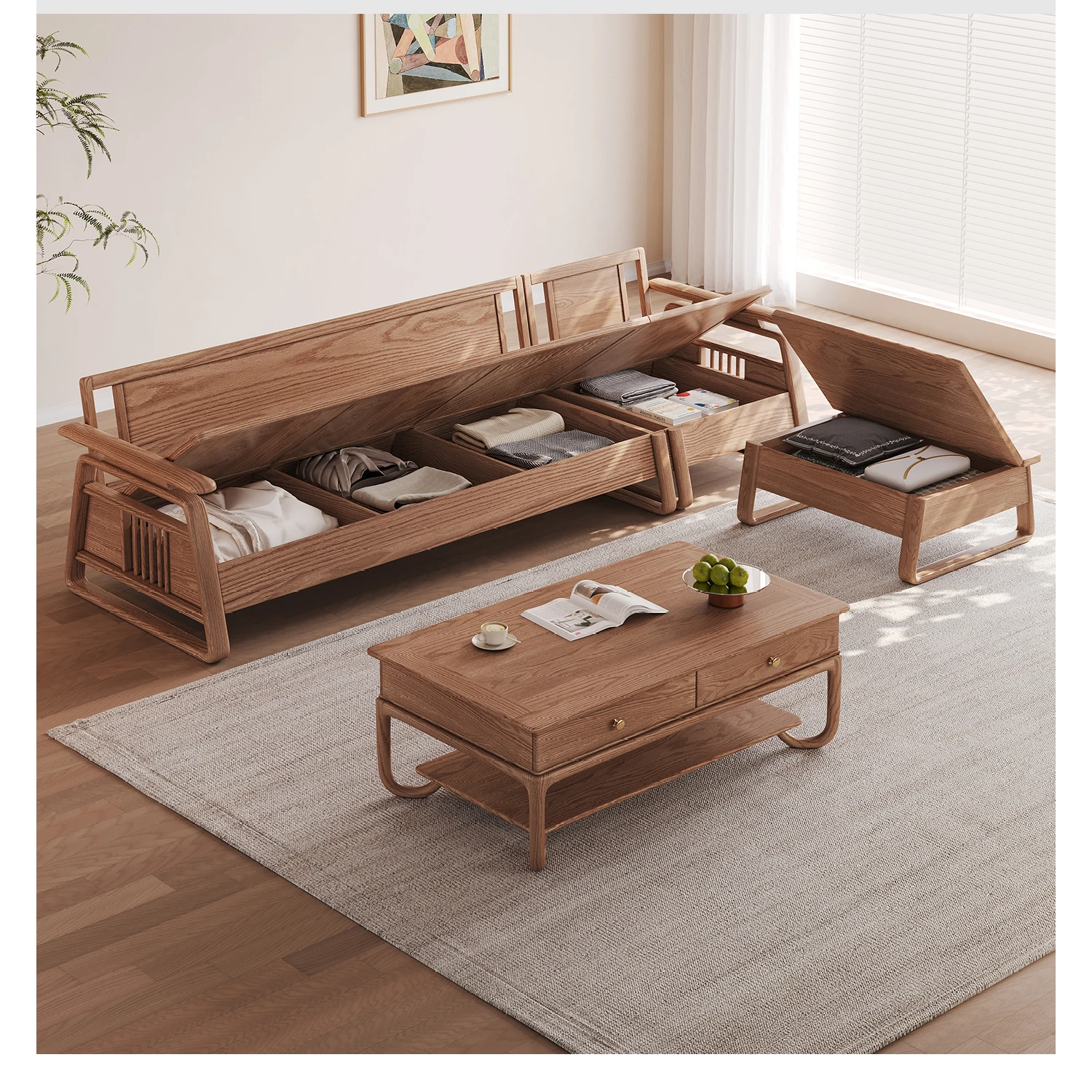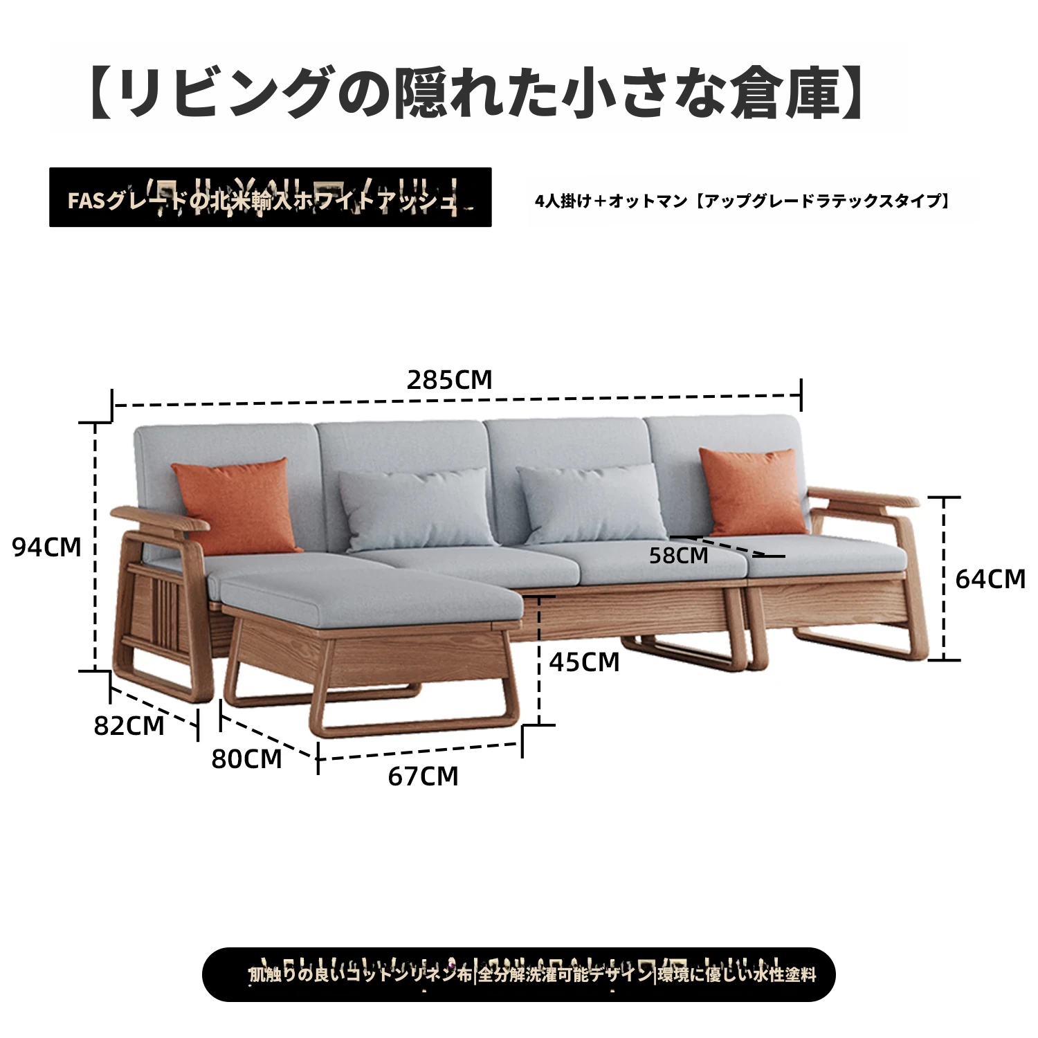 新中式スタイルのモダンでシンプルなホワイトアッシュ材の冬夏兼用コーナーソファ、収納付きで直立脚デザイン。スタイリッシュな空間を演出し、快適なリラックスタイムをお楽しみください!
