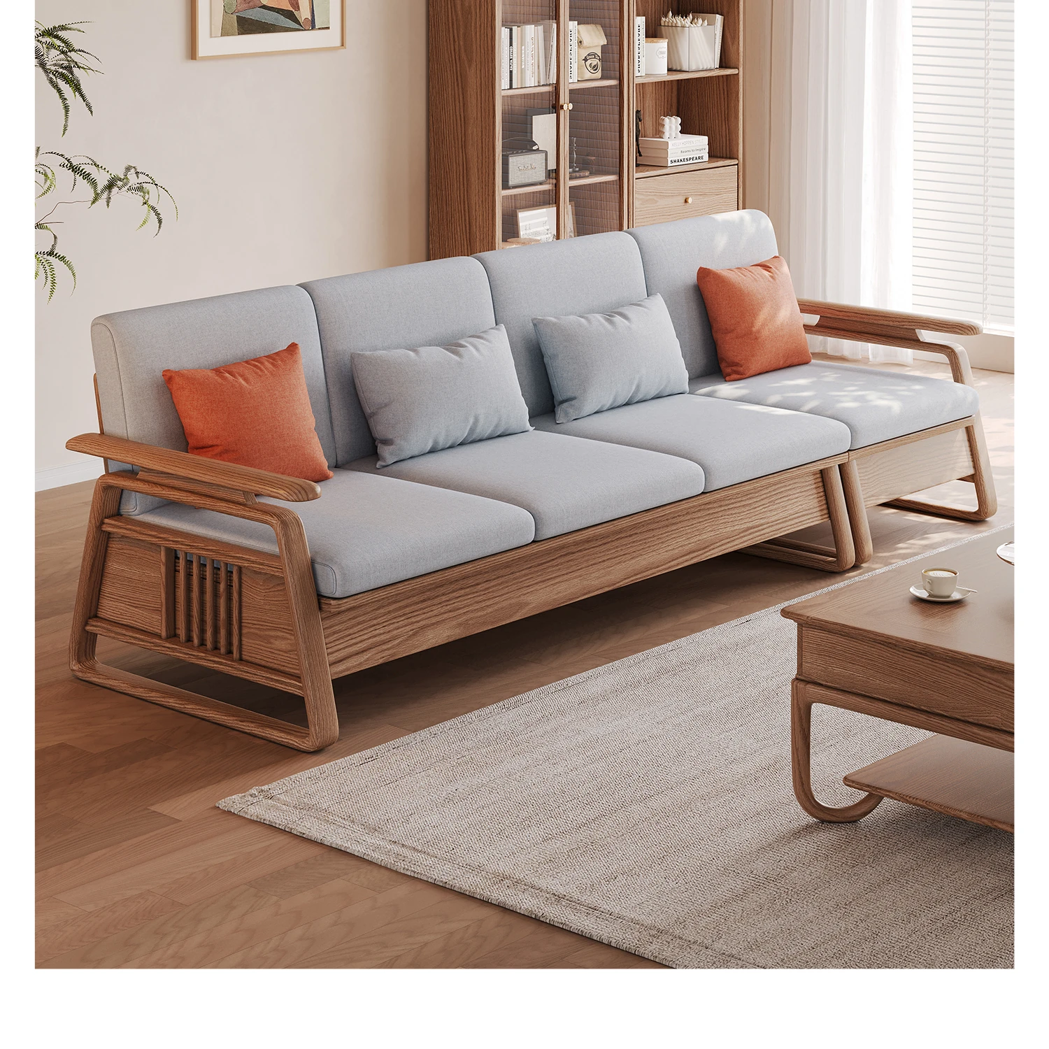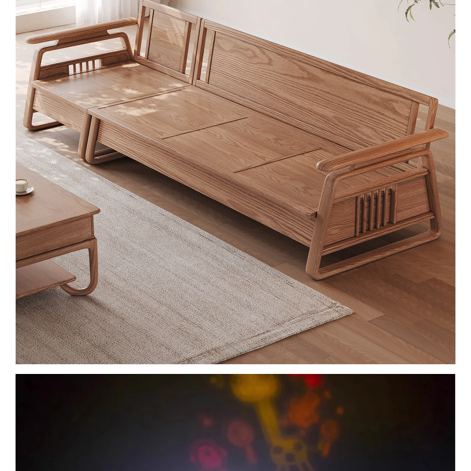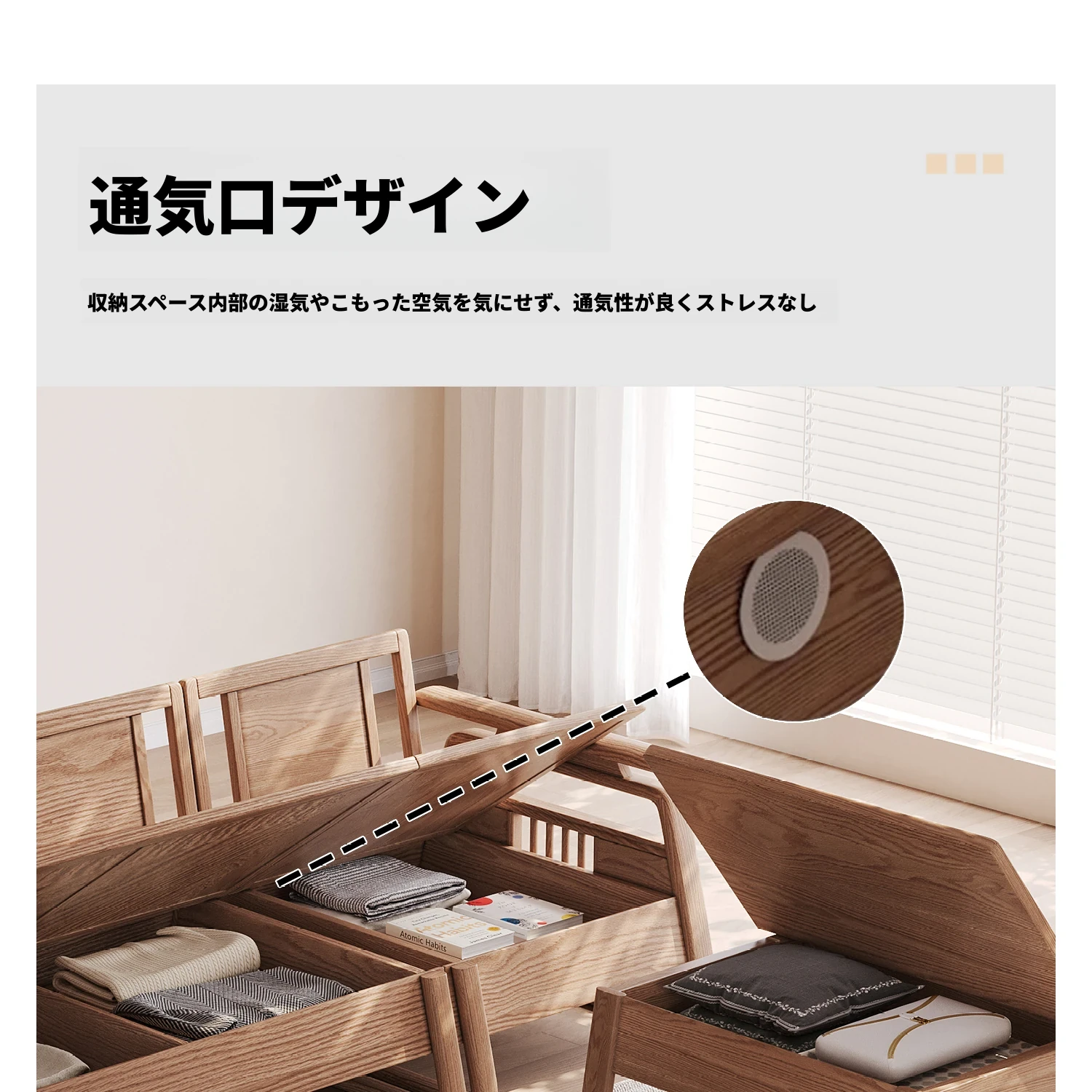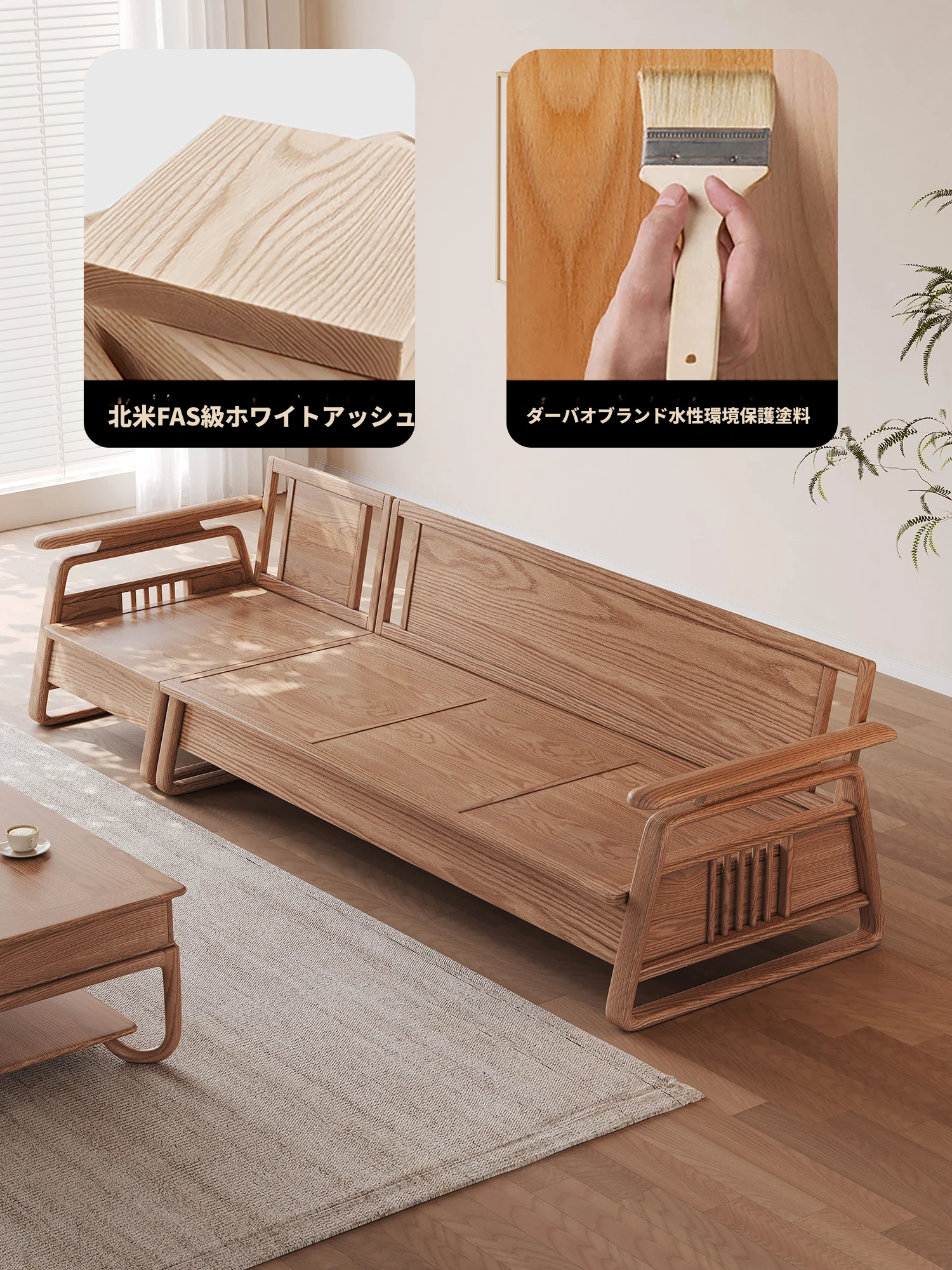 新中式スタイルのモダンでシンプルなホワイトアッシュ材の冬夏兼用コーナーソファ、収納付きで直立脚デザイン。スタイリッシュな空間を演出し、快適なリラックスタイムをお楽しみください!