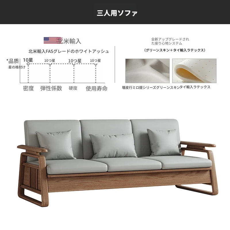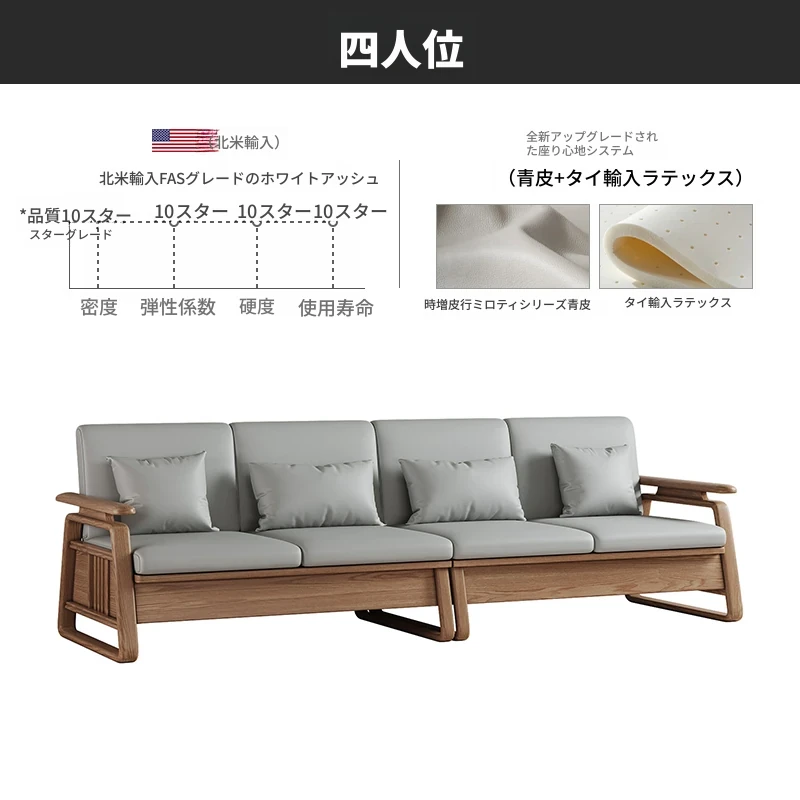 青皮+ラテックス|4人用ソファ【時増皮行ミノ提シリーズ】