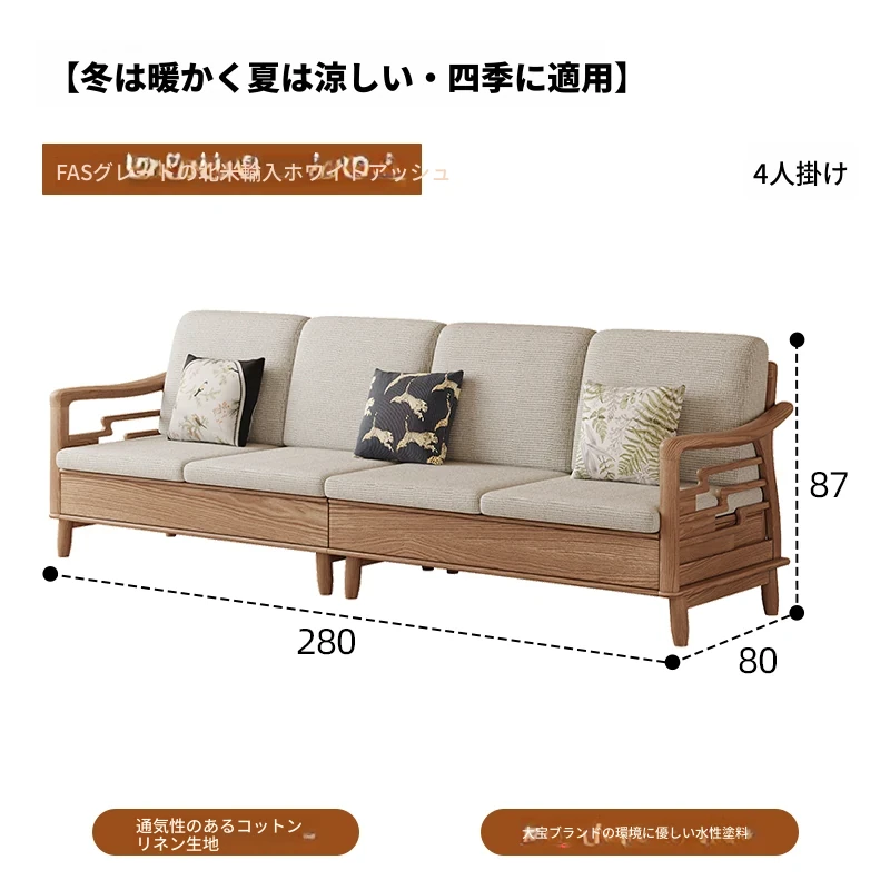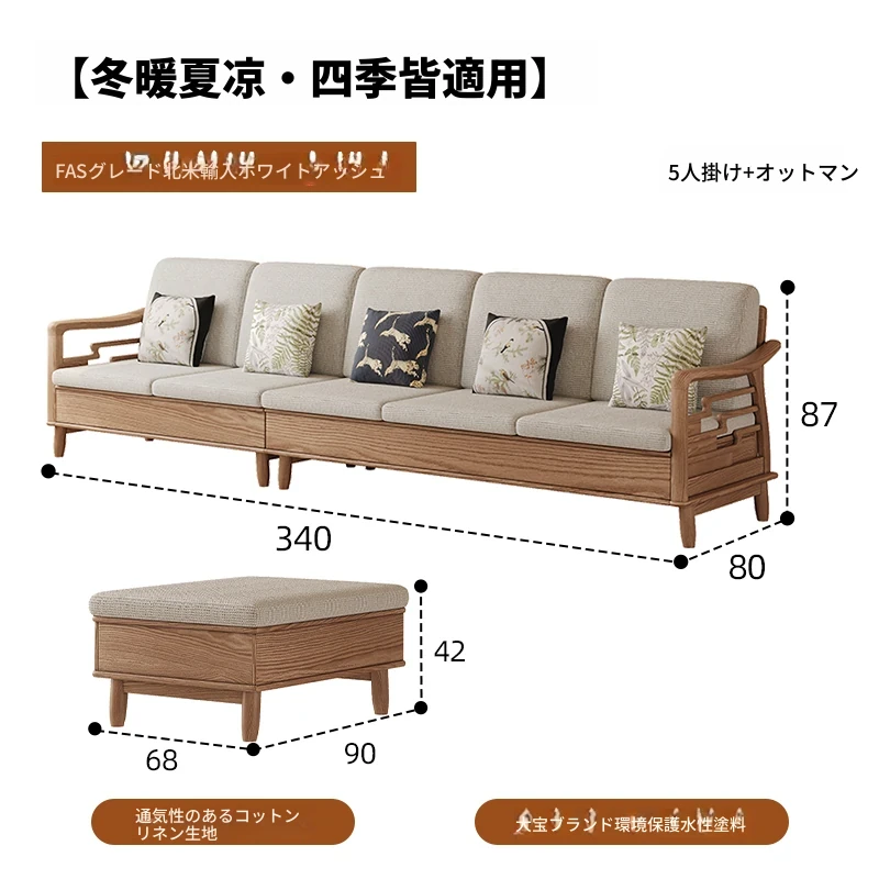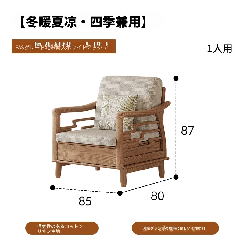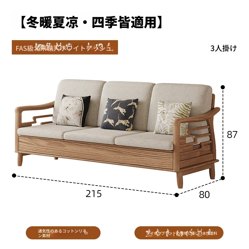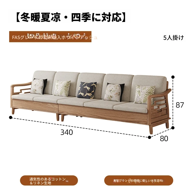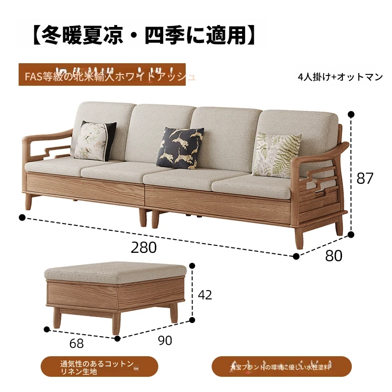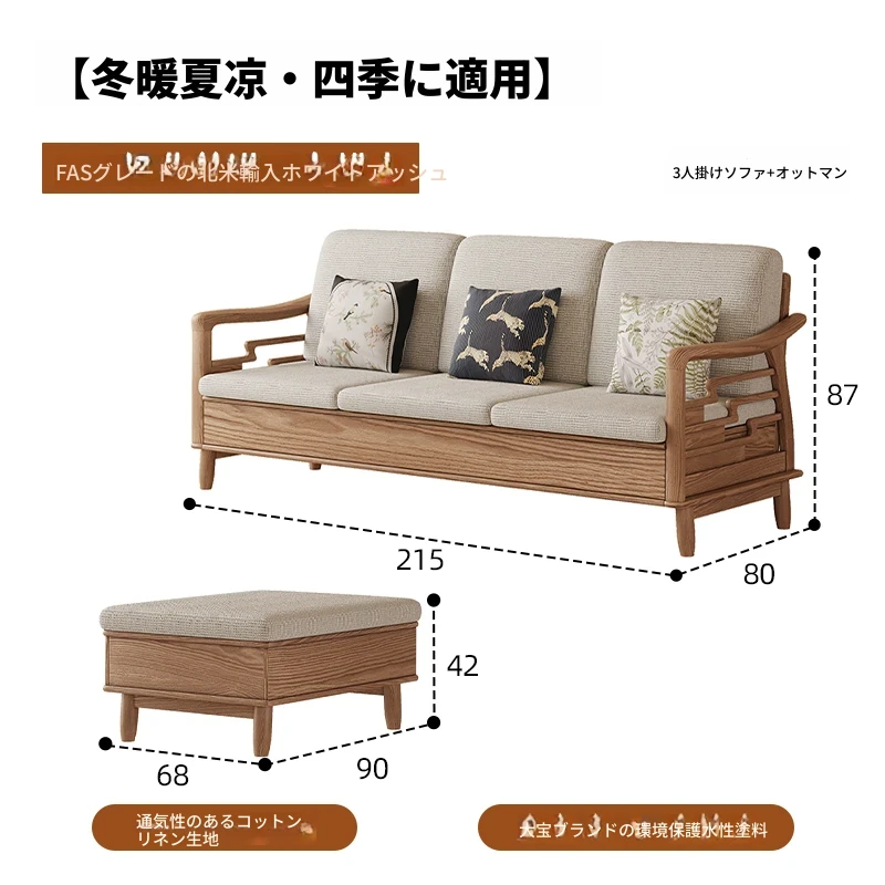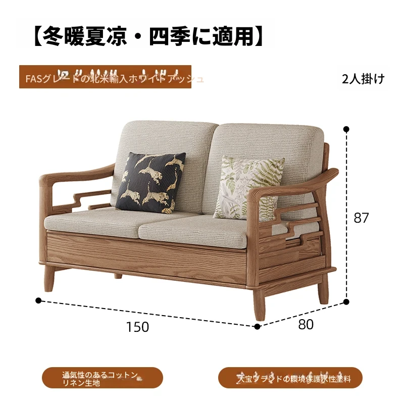 上進ホワイトアッシュ無垢材ソファセット|現代的シンプルデザイン|小型リビングに最適|冬夏兼用|高収納ボックス付き|機能的でスタイリッシュな家具