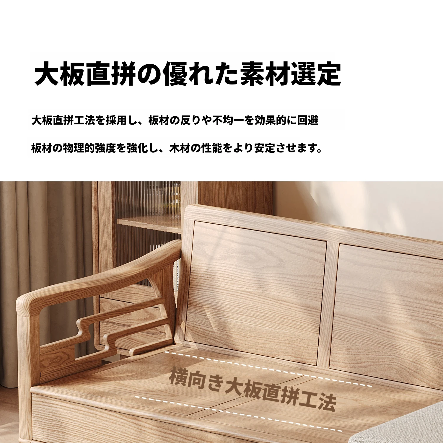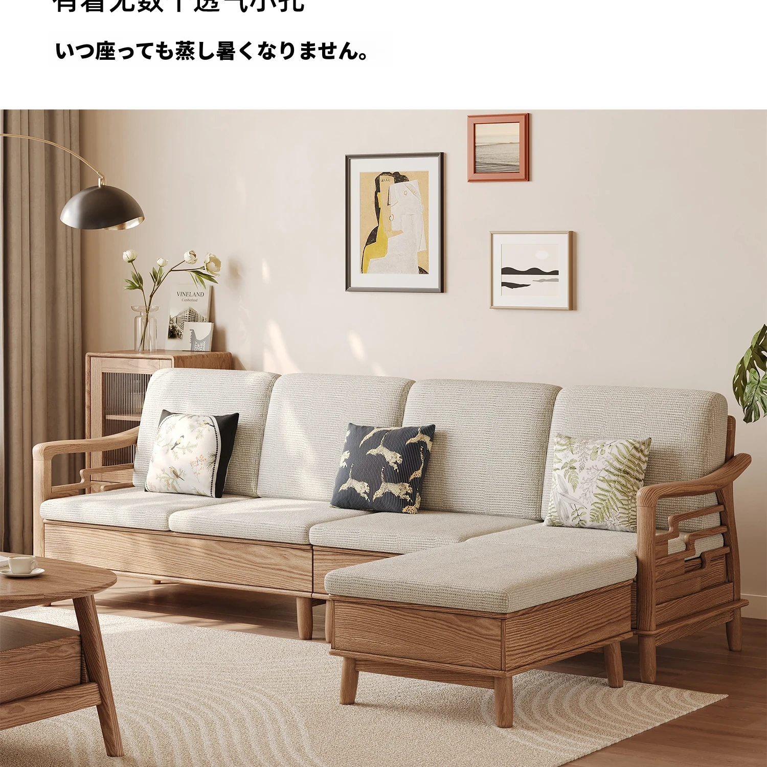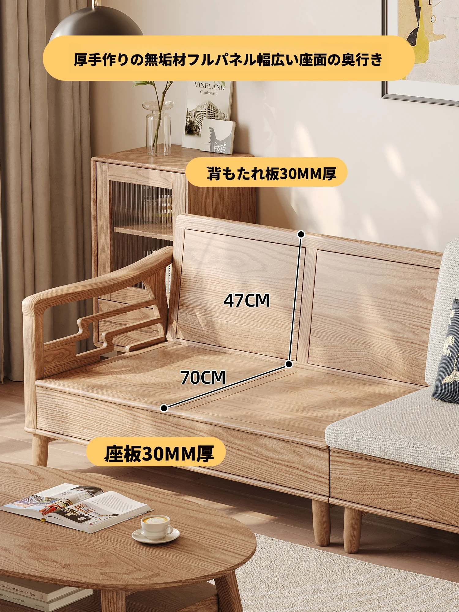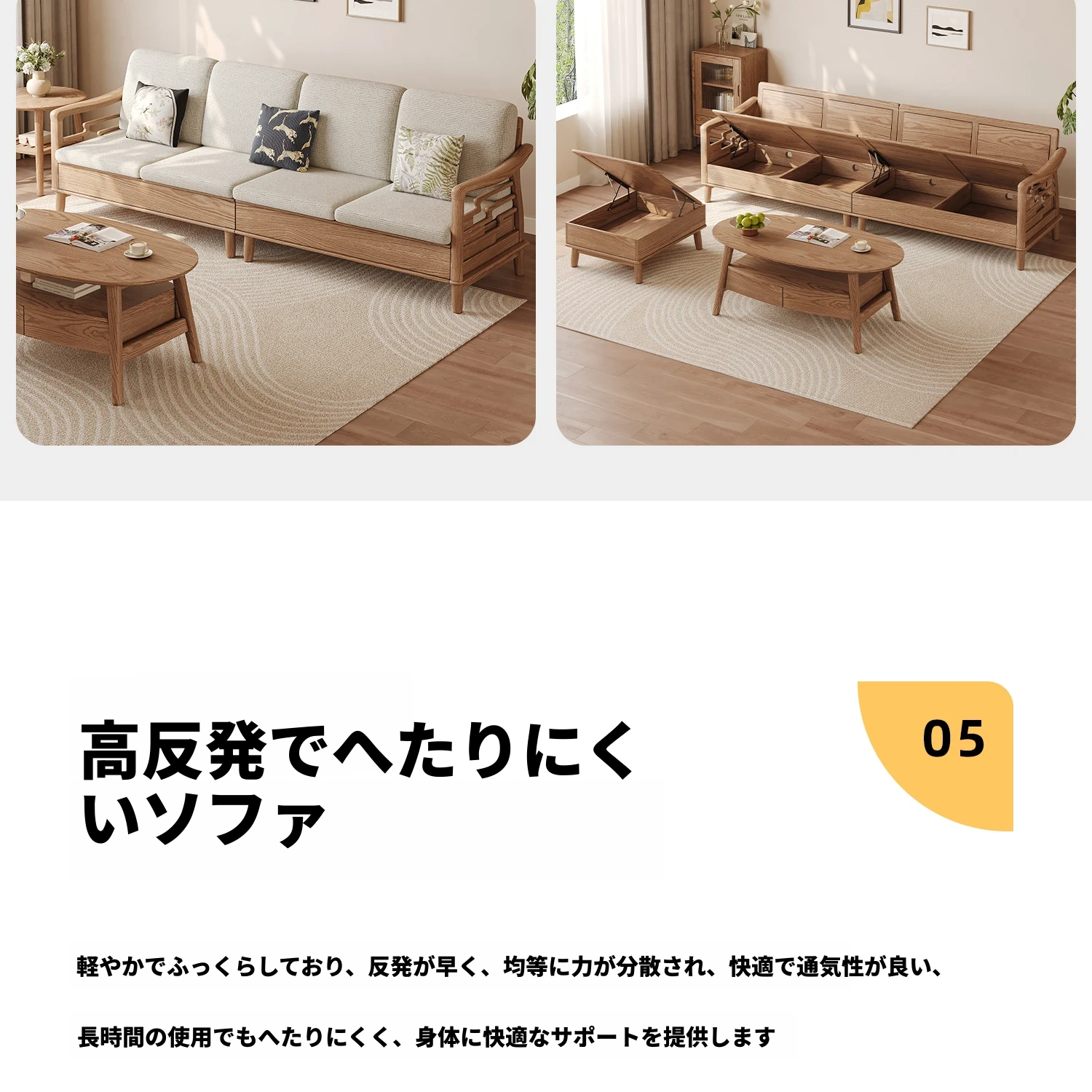 上進ホワイトアッシュ無垢材ソファセット|現代的シンプルデザイン|小型リビングに最適|冬夏兼用|高収納ボックス付き|機能的でスタイリッシュな家具