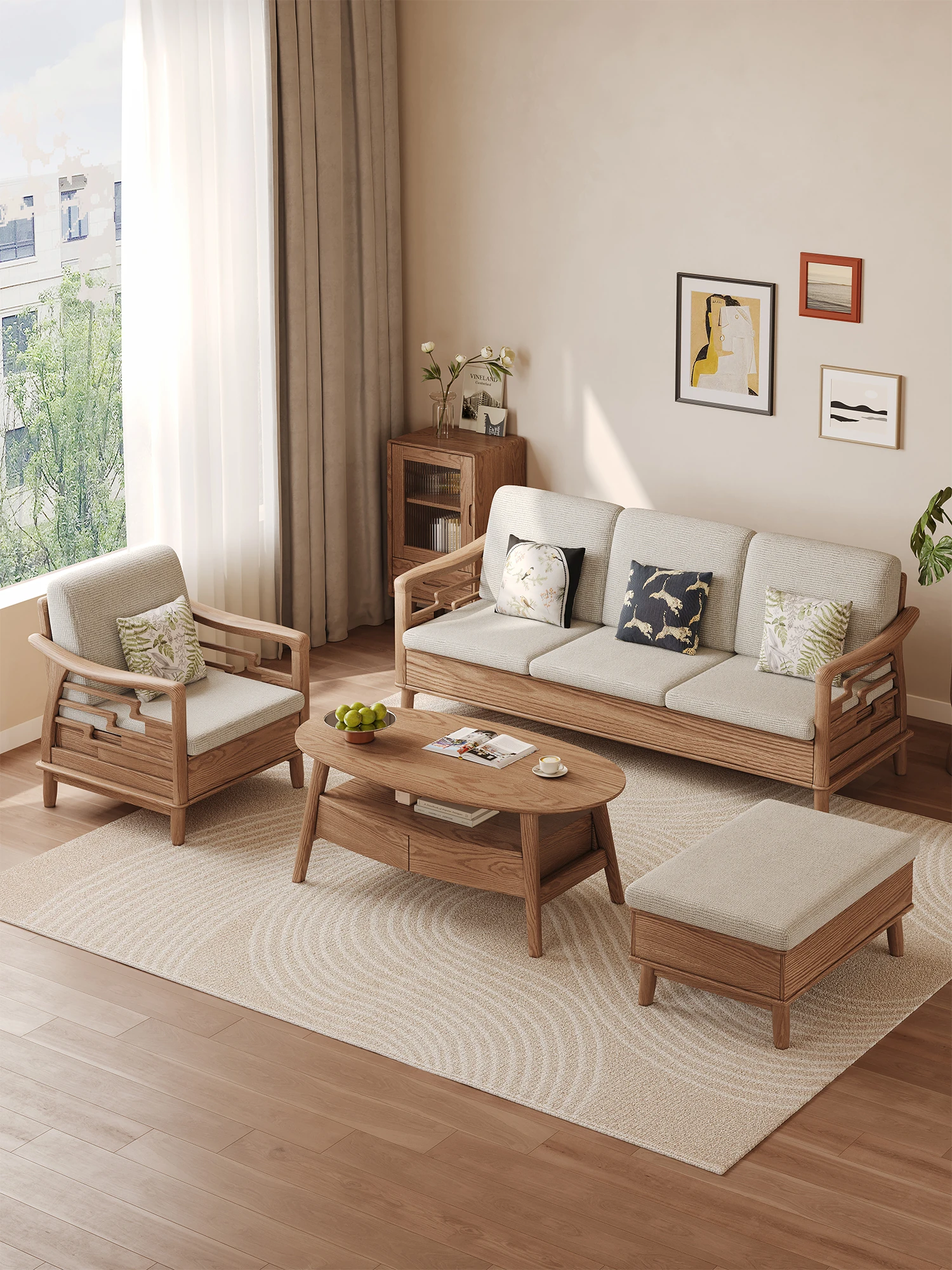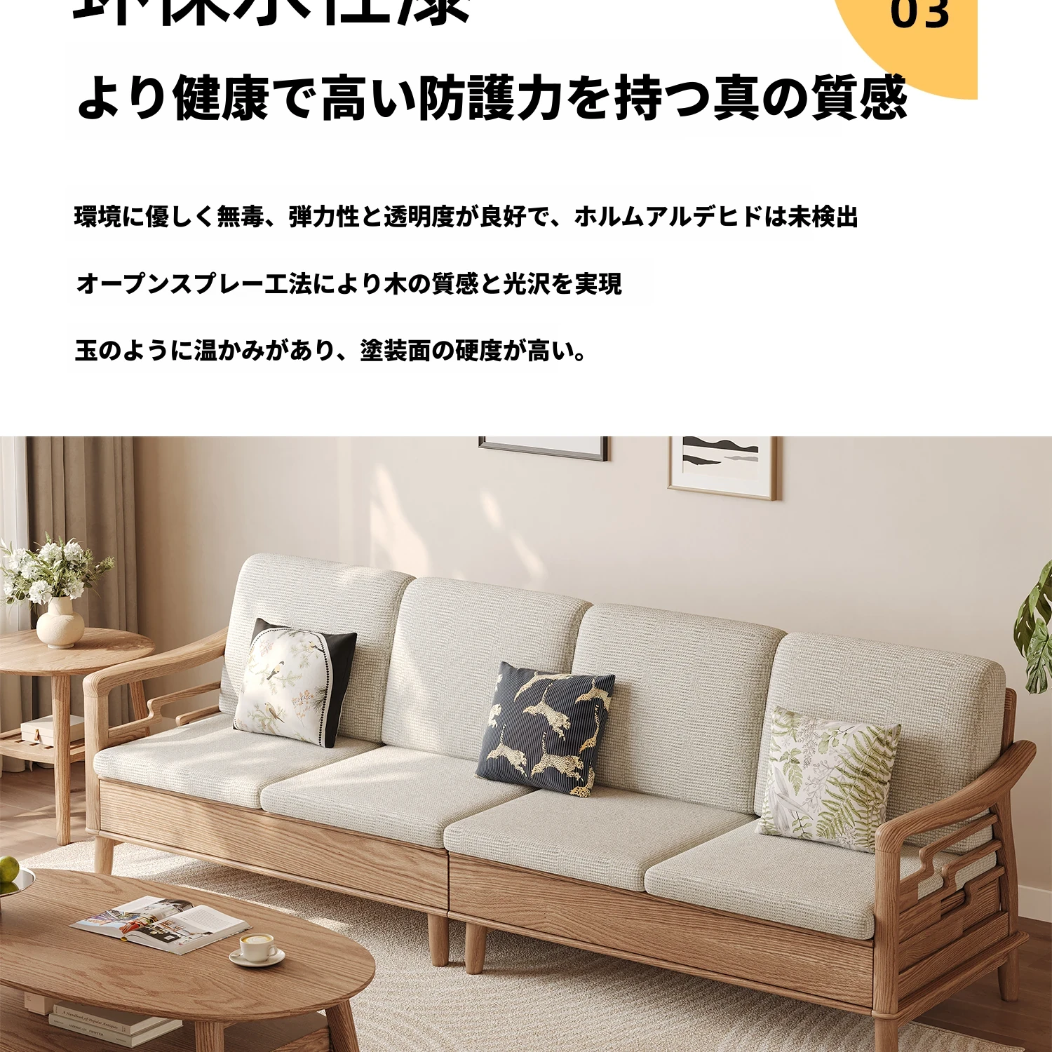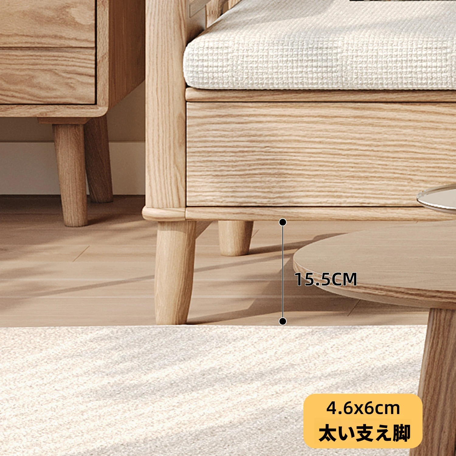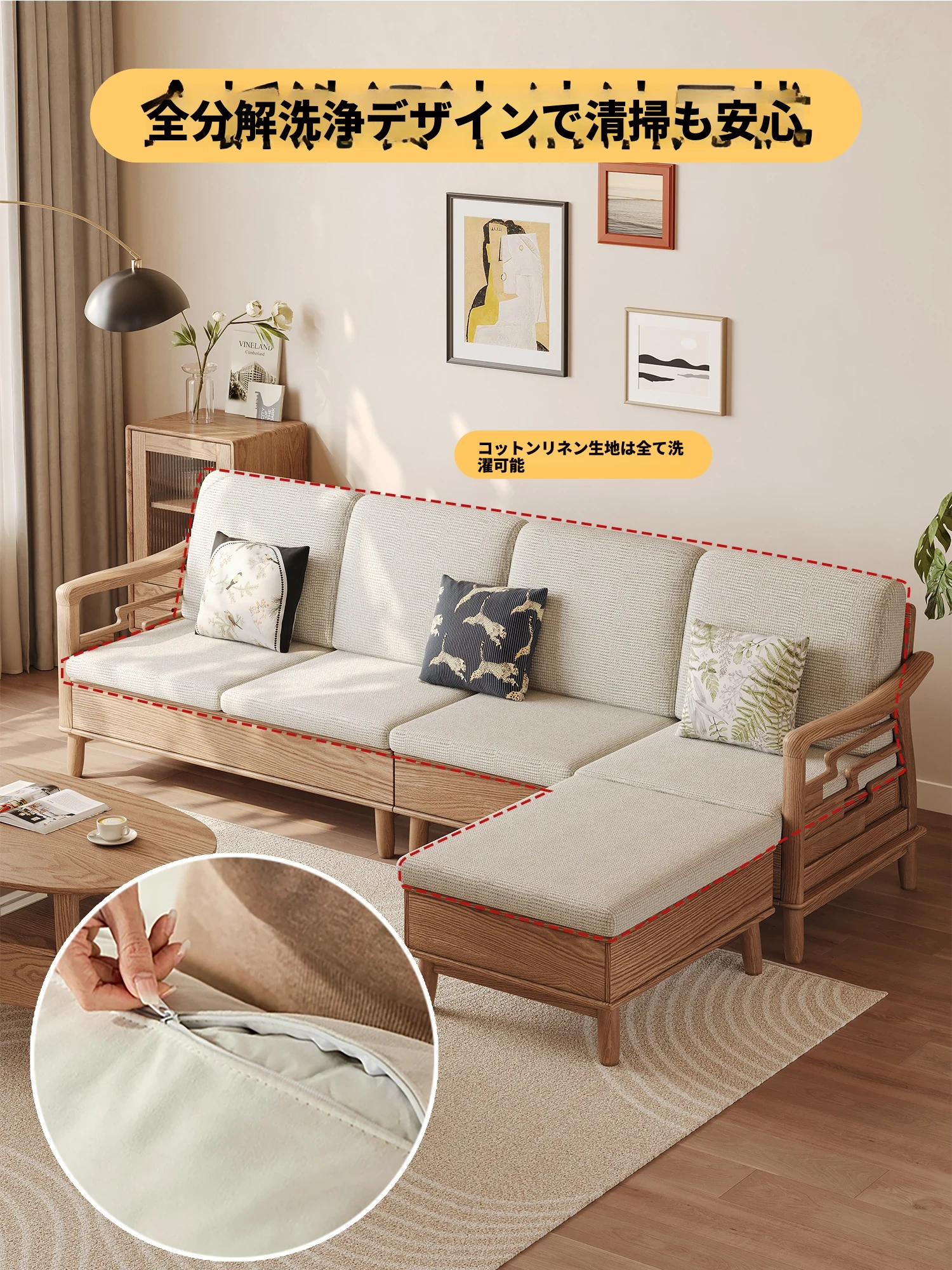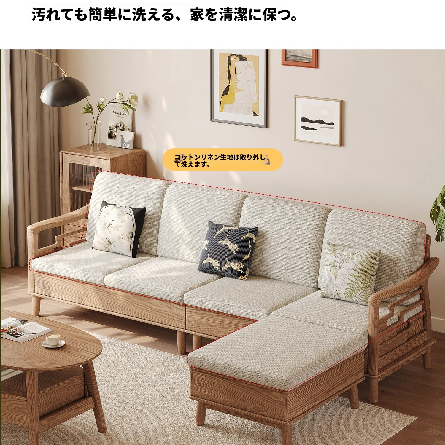 上進ホワイトアッシュ無垢材ソファセット|現代的シンプルデザイン|小型リビングに最適|冬夏兼用|高収納ボックス付き|機能的でスタイリッシュな家具