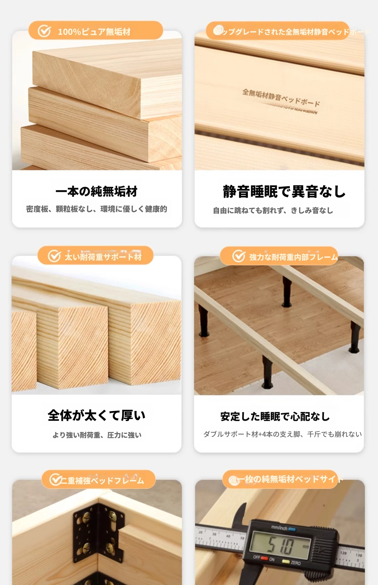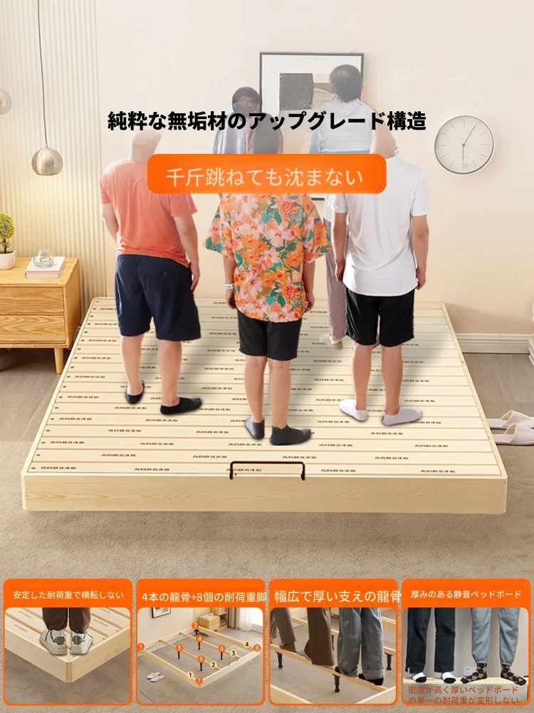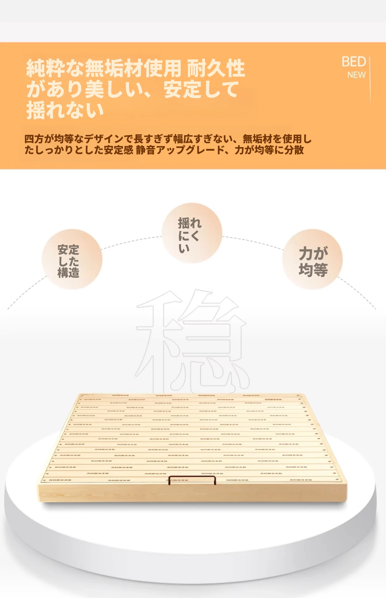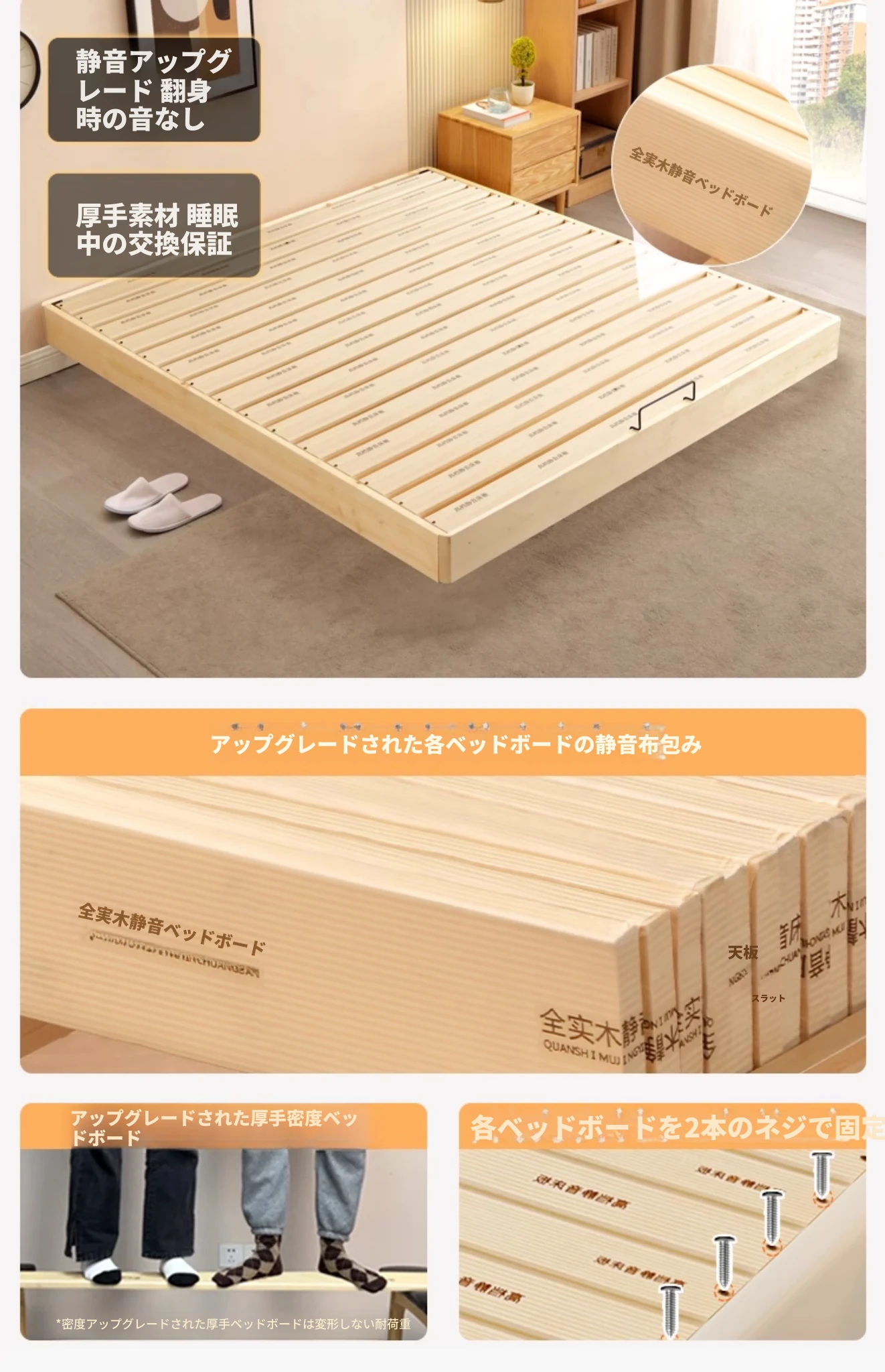 【加密版】無垢材浮遊静音ベッド (全体が無垢材 接合なし)