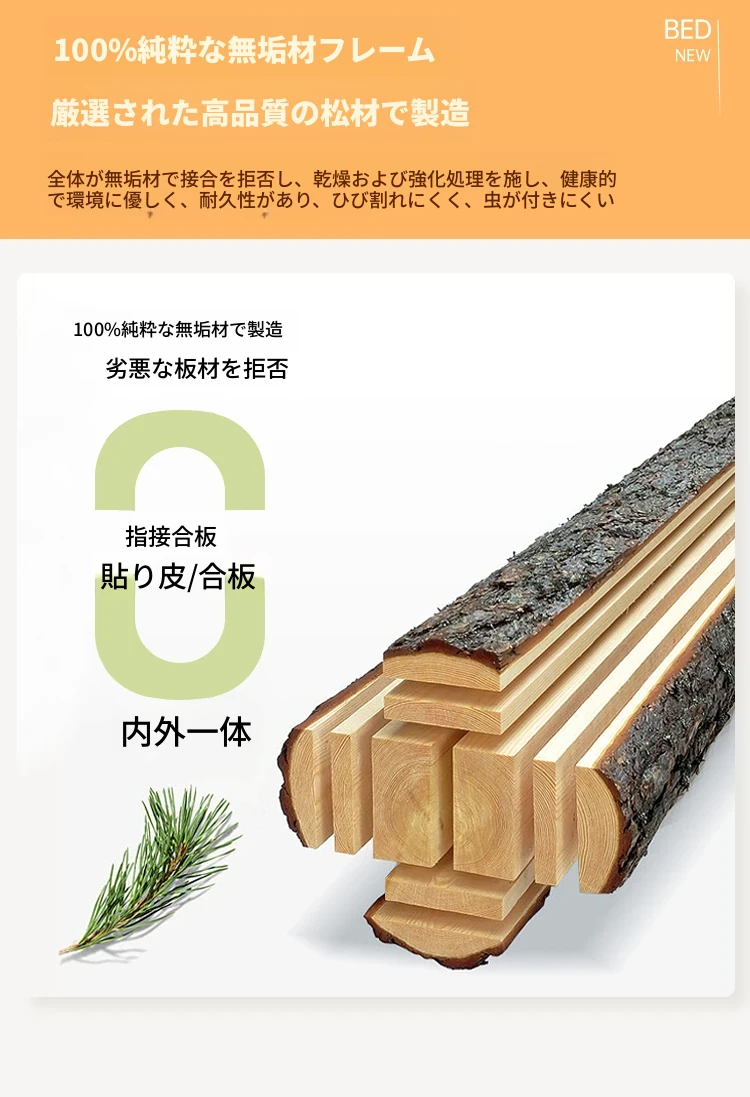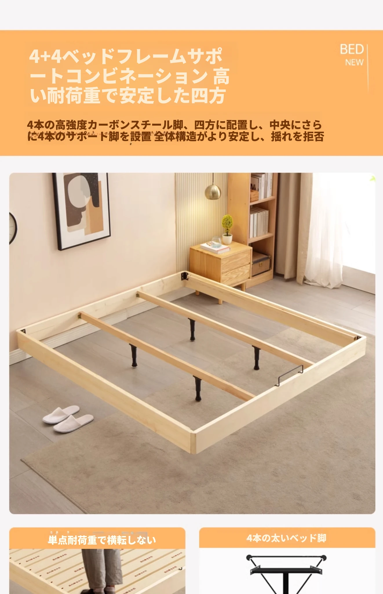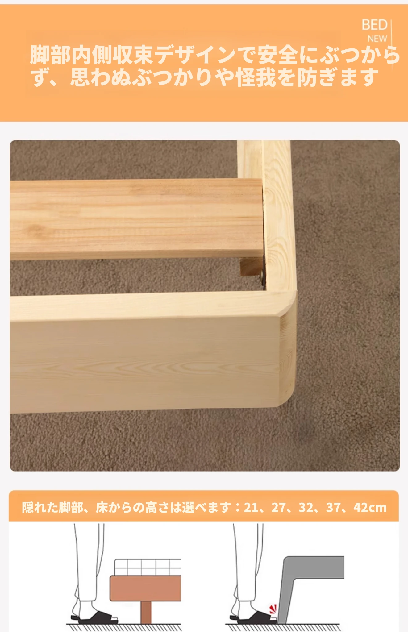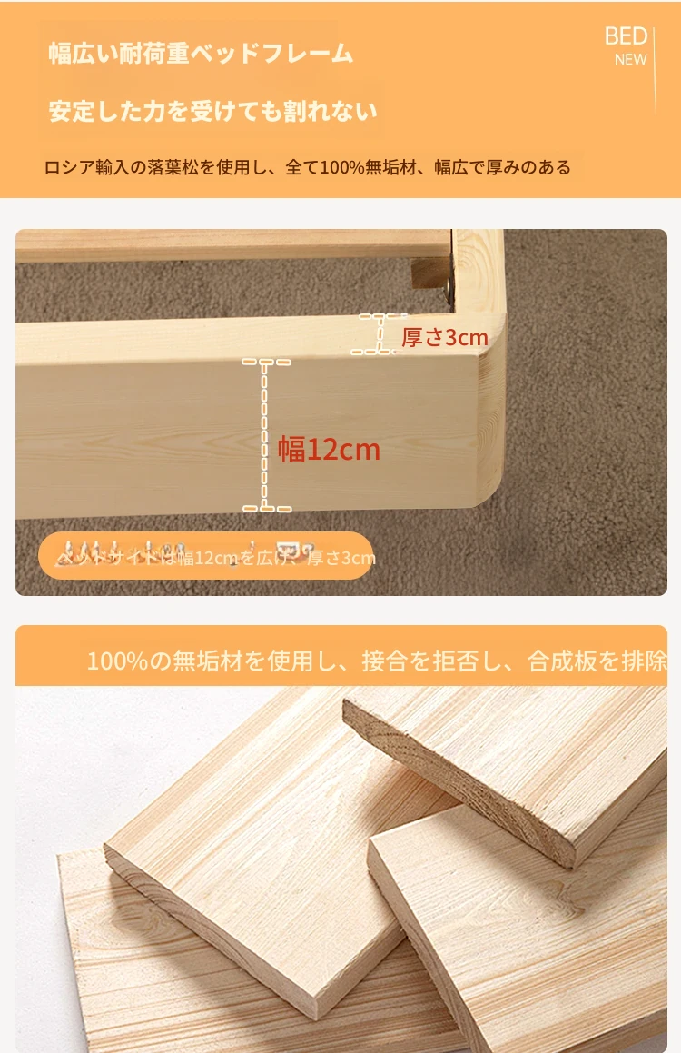 【加密版】無垢材浮遊静音ベッド (全体が無垢材 接合なし)