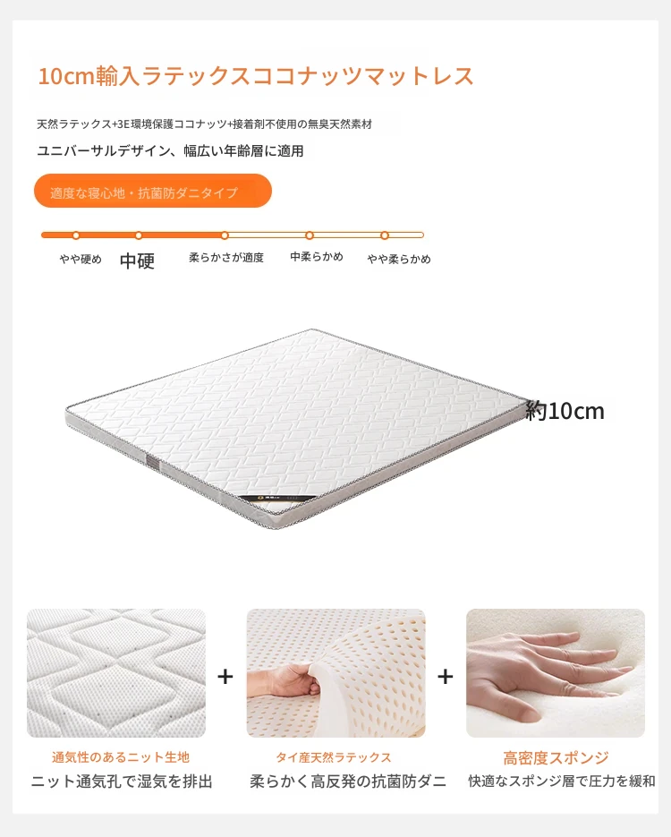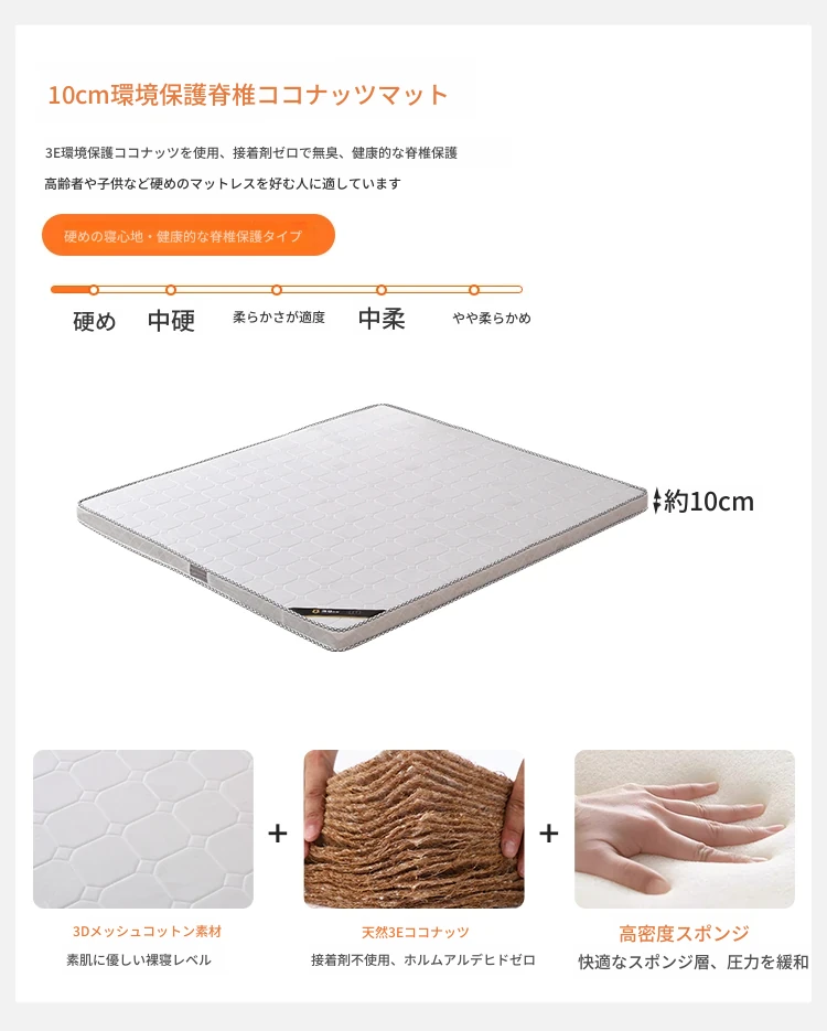 【加密版】無垢材浮遊静音ベッド+10cm環境保護脊椎ココナッツマットレス (高温熱圧接着剤なし)
