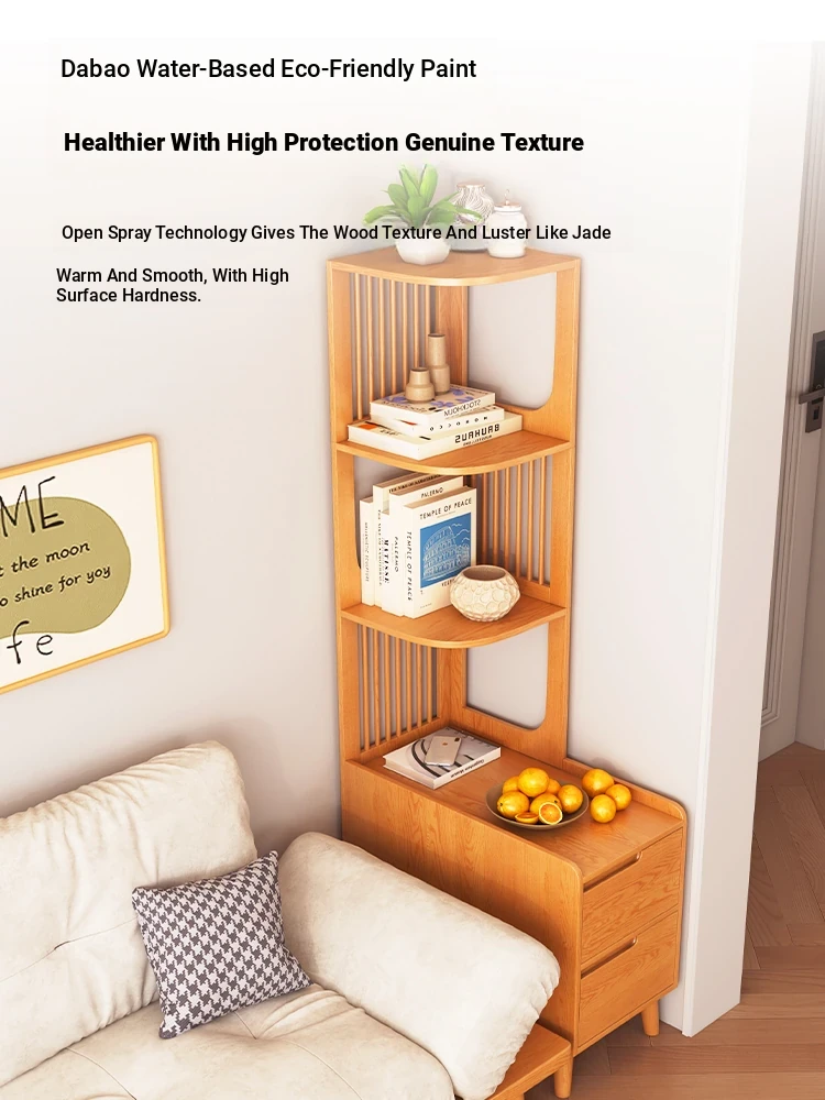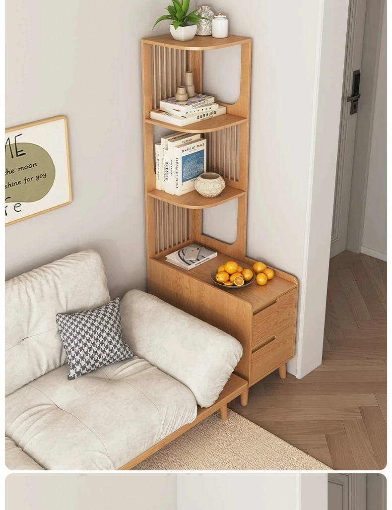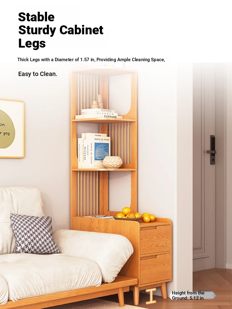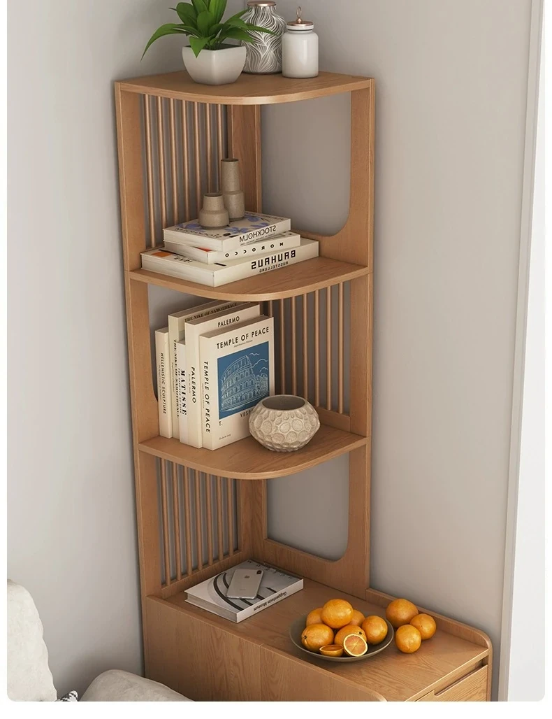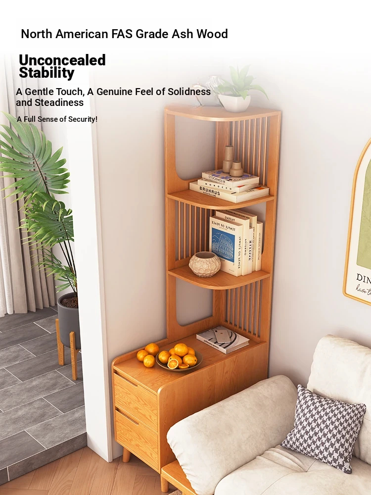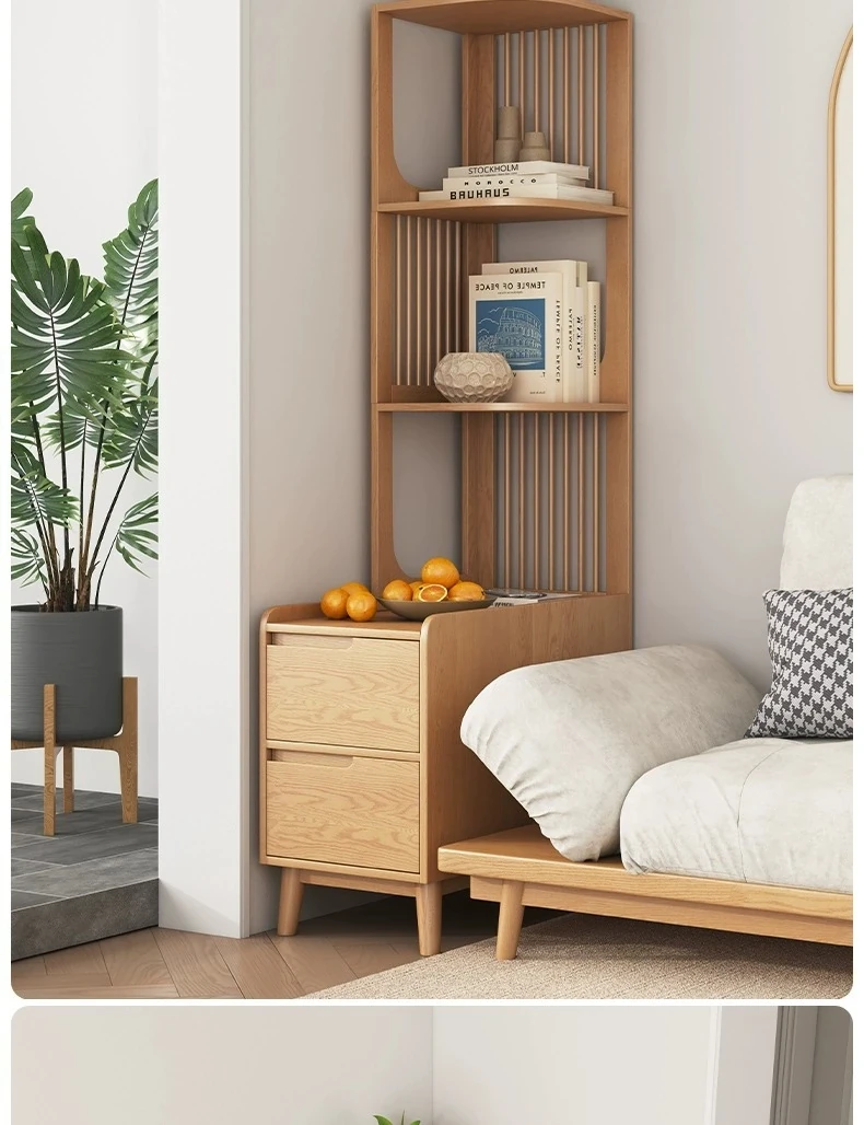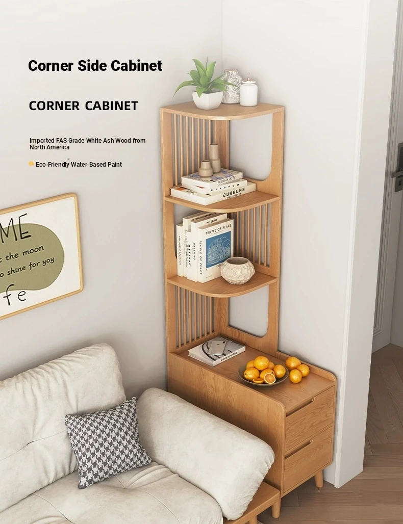 Modern Minimalist Solid Wood Side Cabinet - Cream Finish, Ash Wood Bookcase, Multi-functional Storage Unit for Living Room, Perfect for Corners and Side Tables