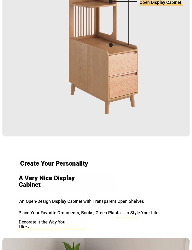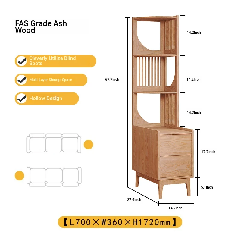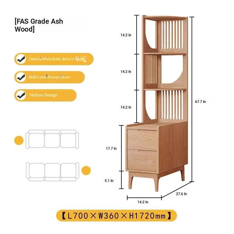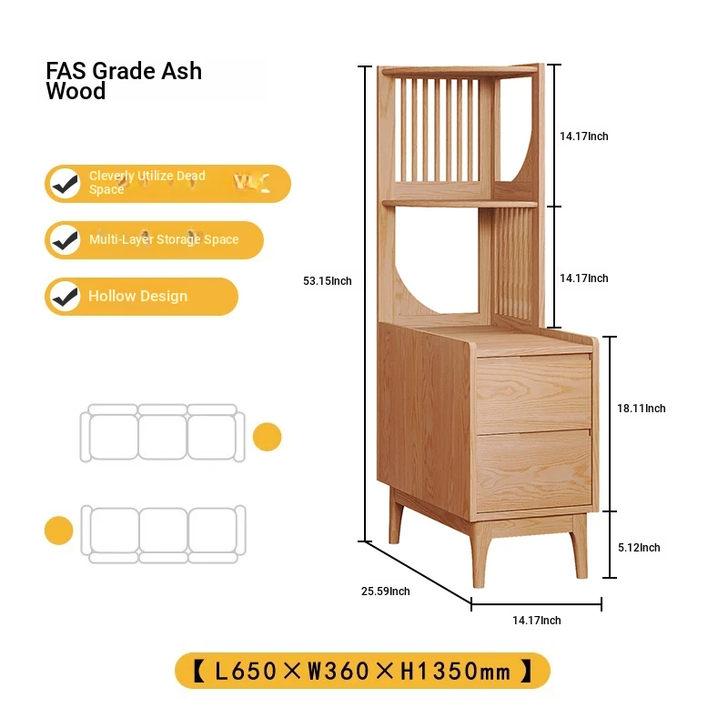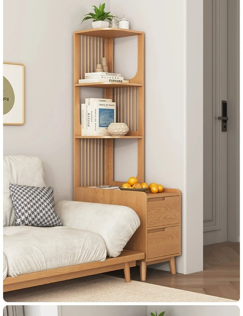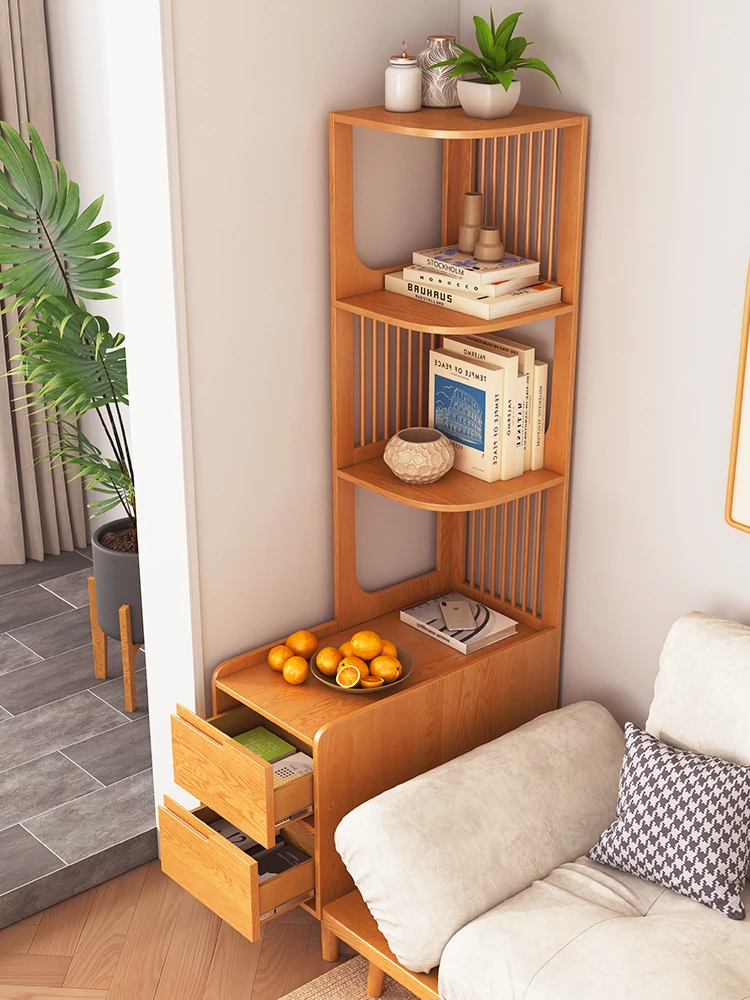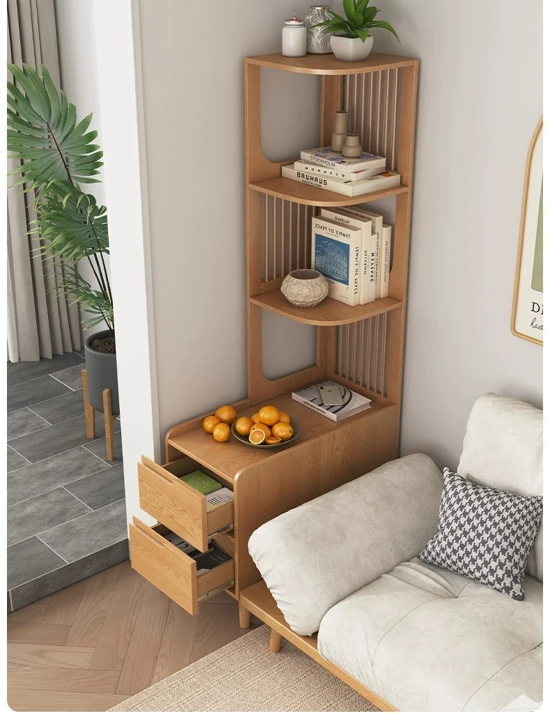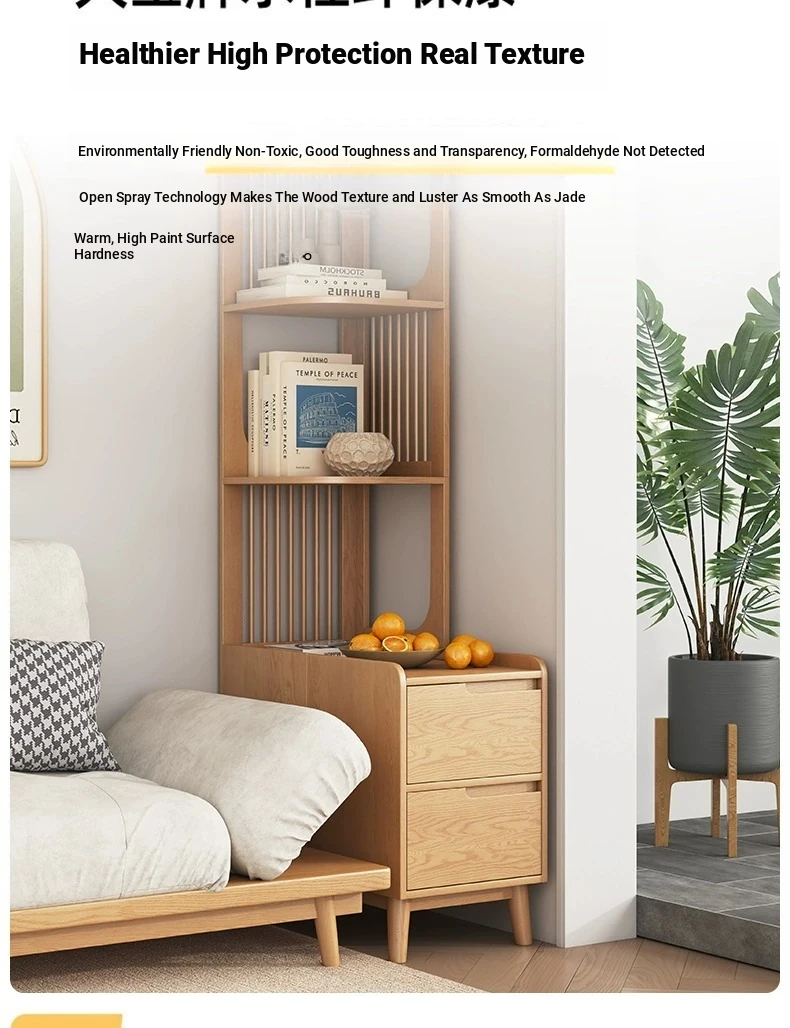 Modern Minimalist Solid Wood Side Cabinet - Cream Finish, Ash Wood Bookcase, Multi-functional Storage Unit for Living Room, Perfect for Corners and Side Tables