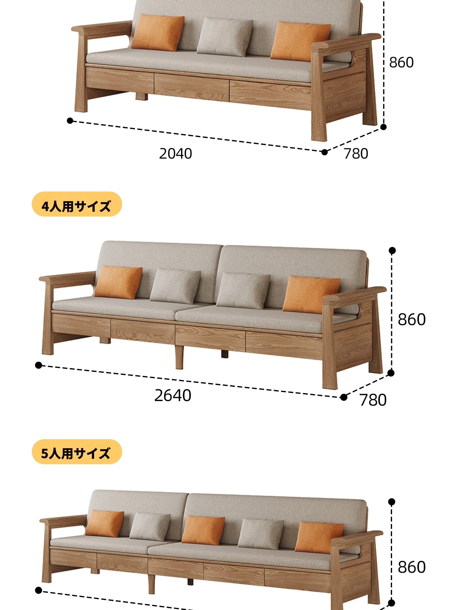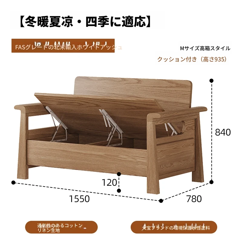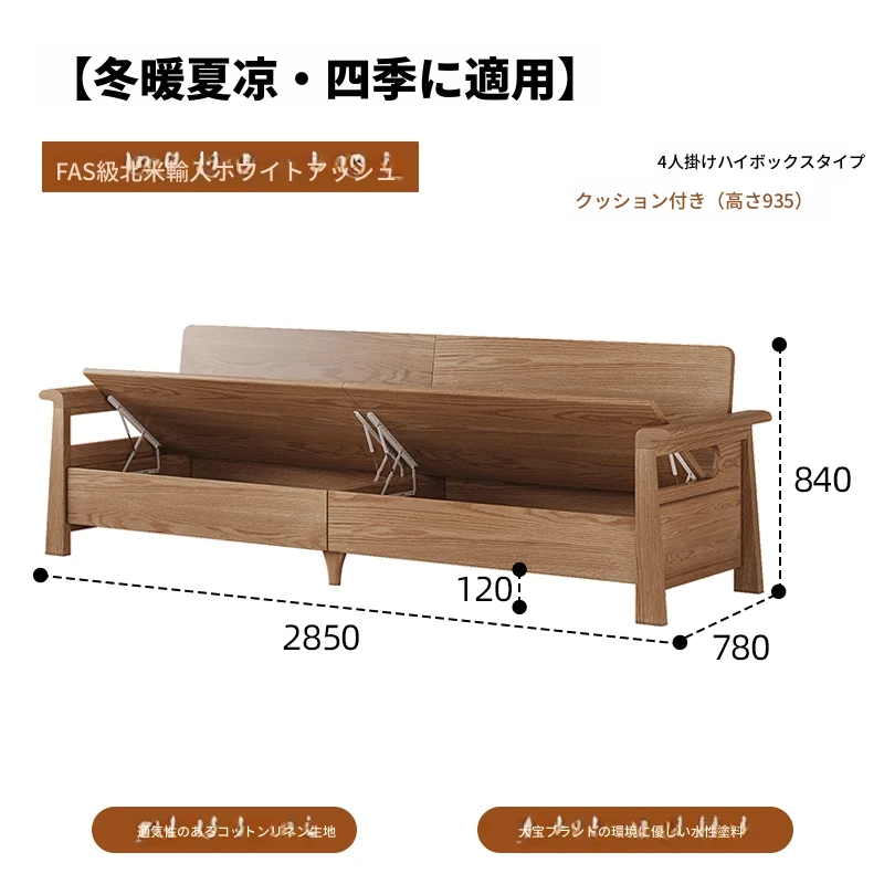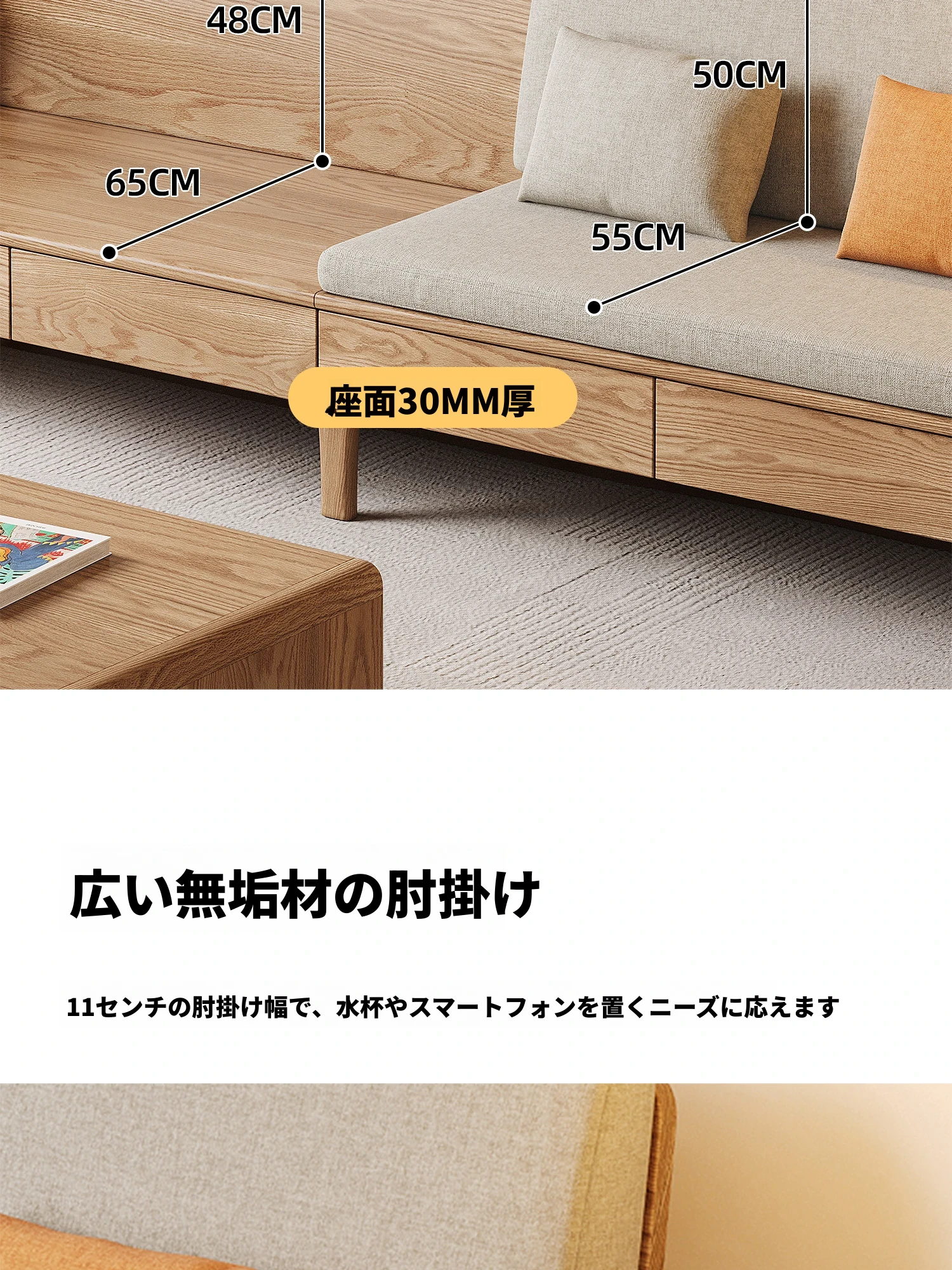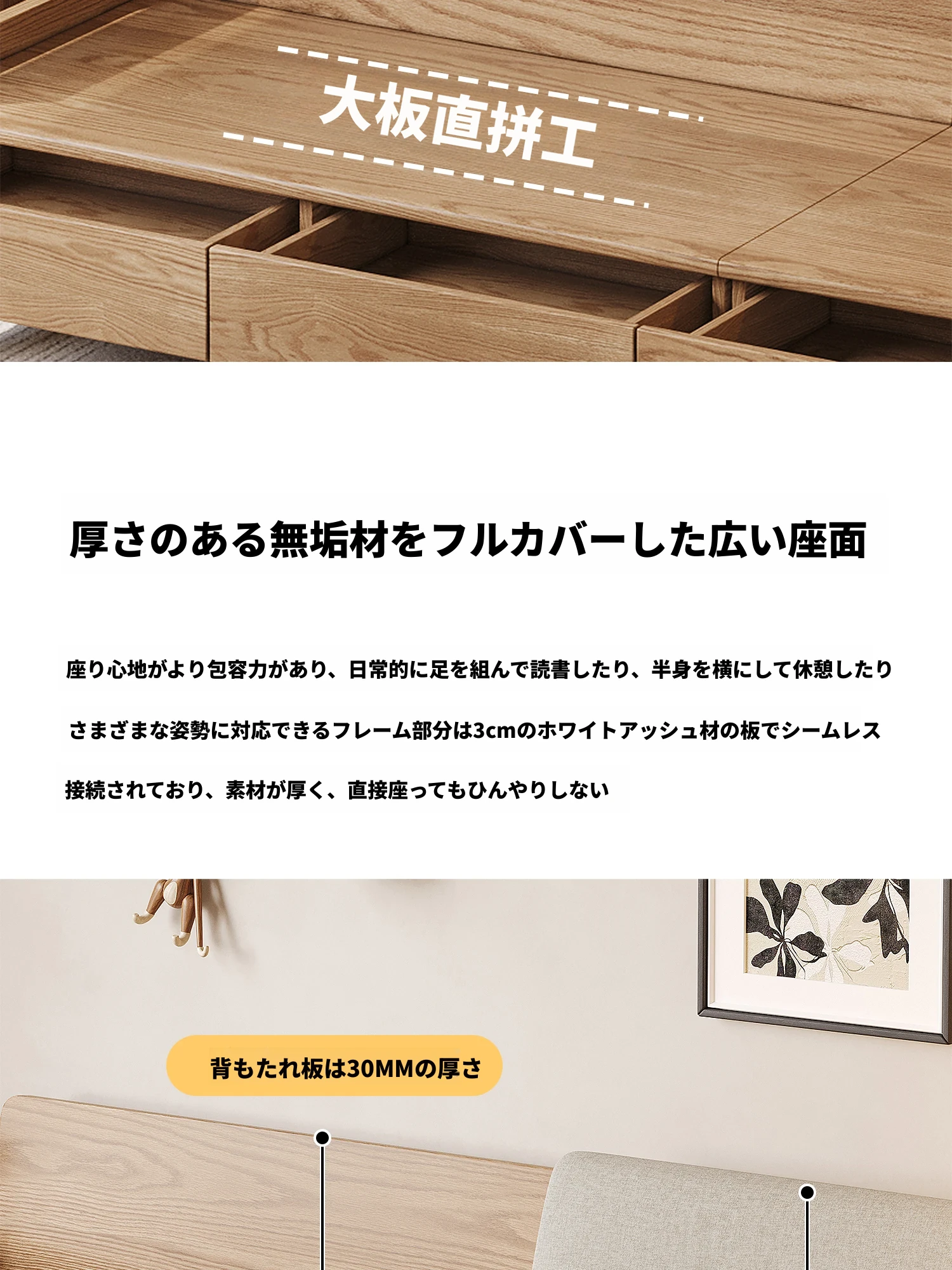 北欧スタイルの全木製ソファセット|モダンでシンプルなデザイン|冬夏兼用|ホワイトアッシュの引き出し収納付き|小型から大型のリビングに最適!